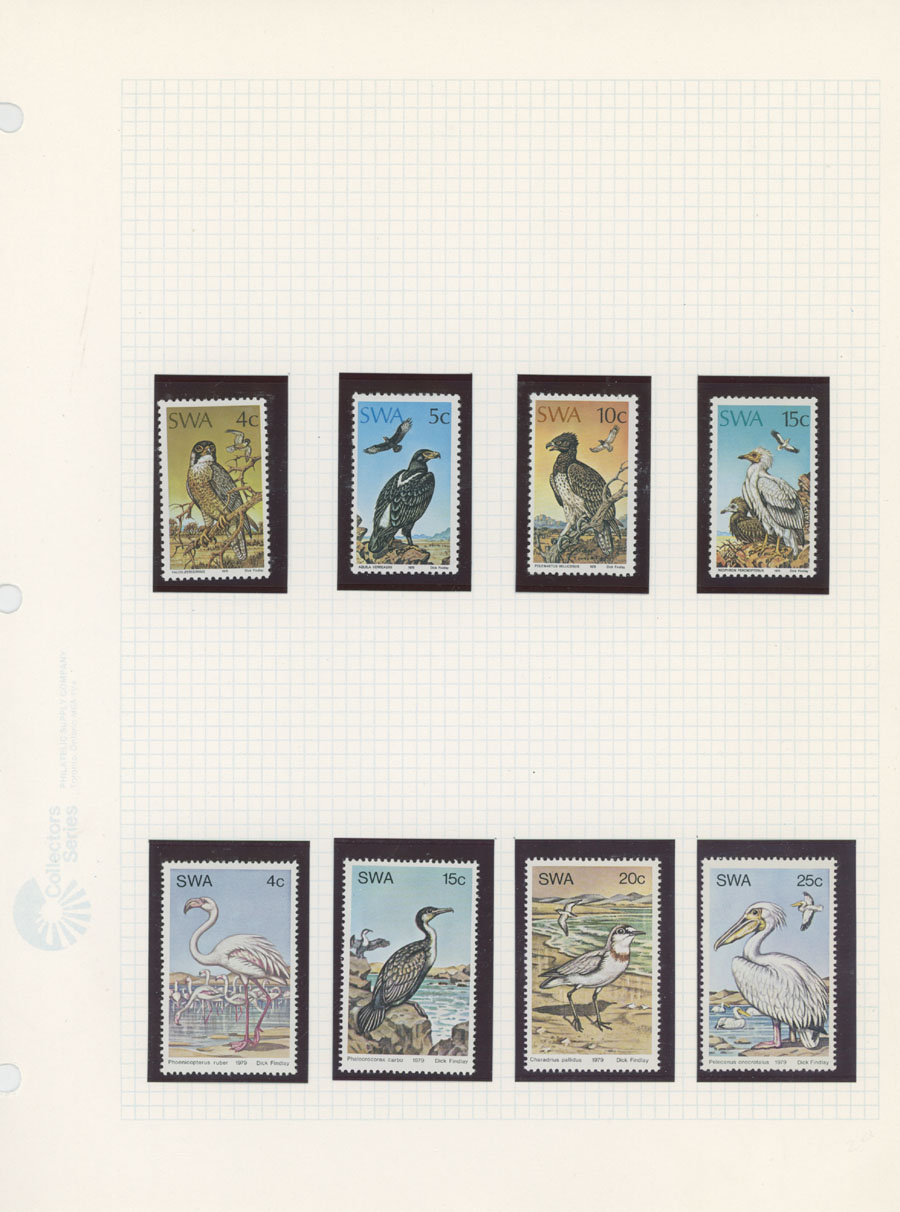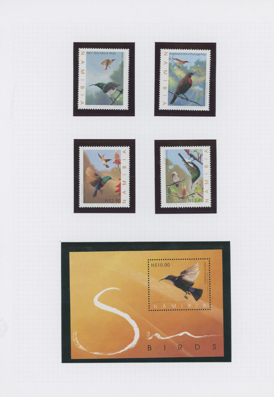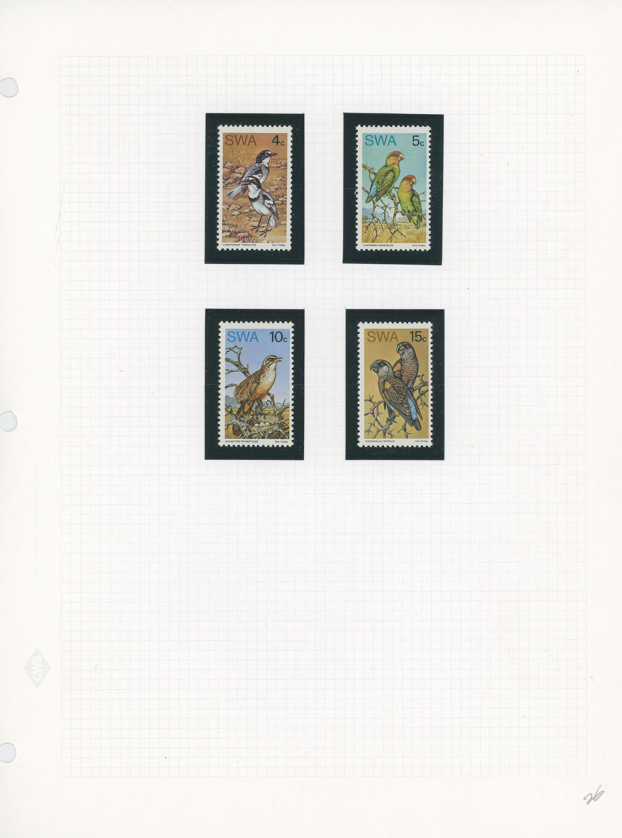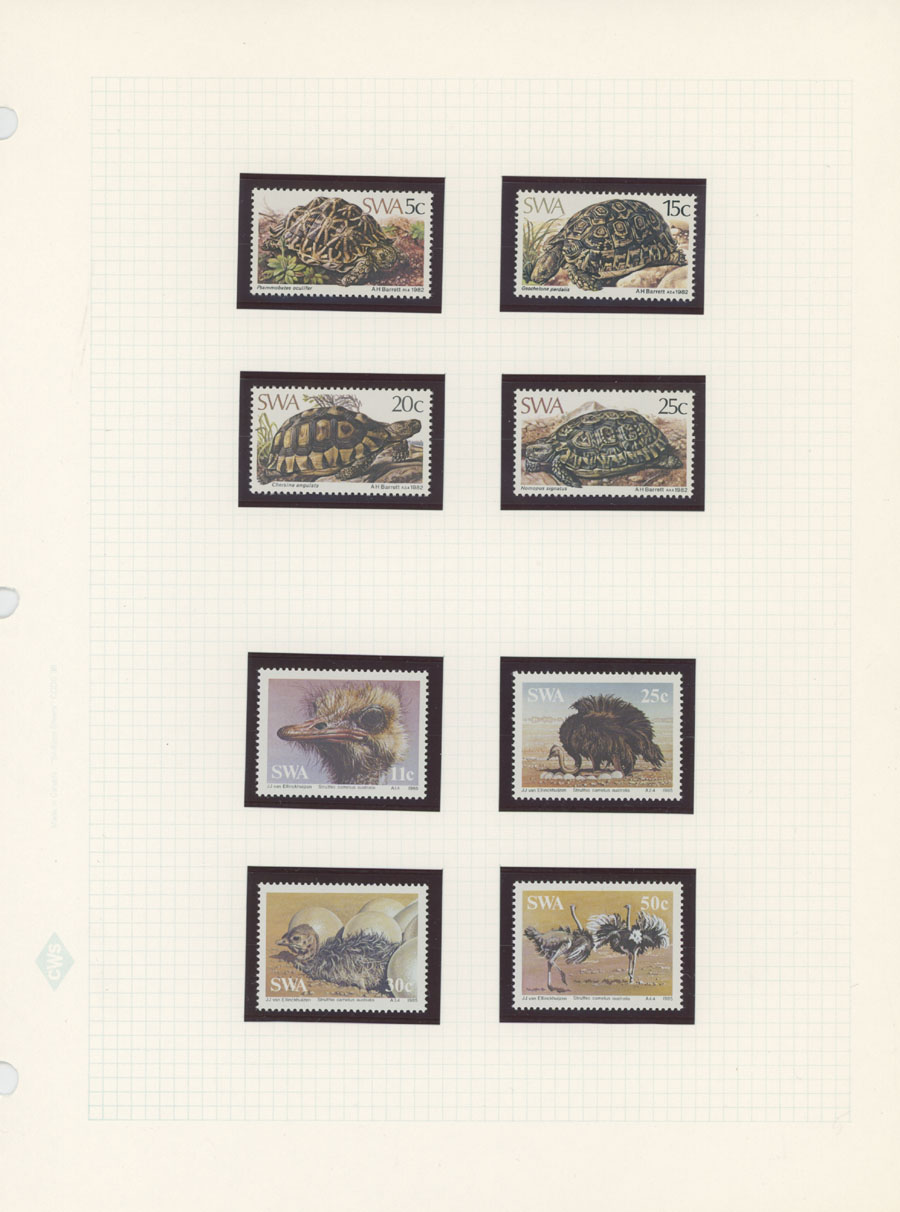 COLLECTION ON PAGES: 1935-2019, about 300 mint stamps and 15 miniature or souvenir sheets, starting with Silver Jubilee and King George VI Coronation sets and including various Animals and Birds sets until 1985, then continues with Namibia issues (Sc. #1060/392), beautiful quality material, full OG, NH, mainly VF, C.v. is over $700, Est. $200-$300, Scott #131/539