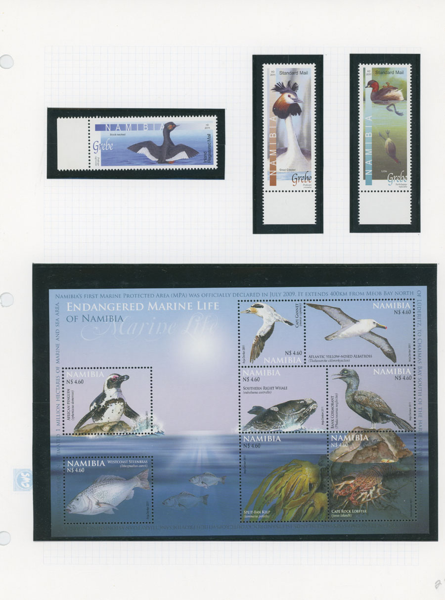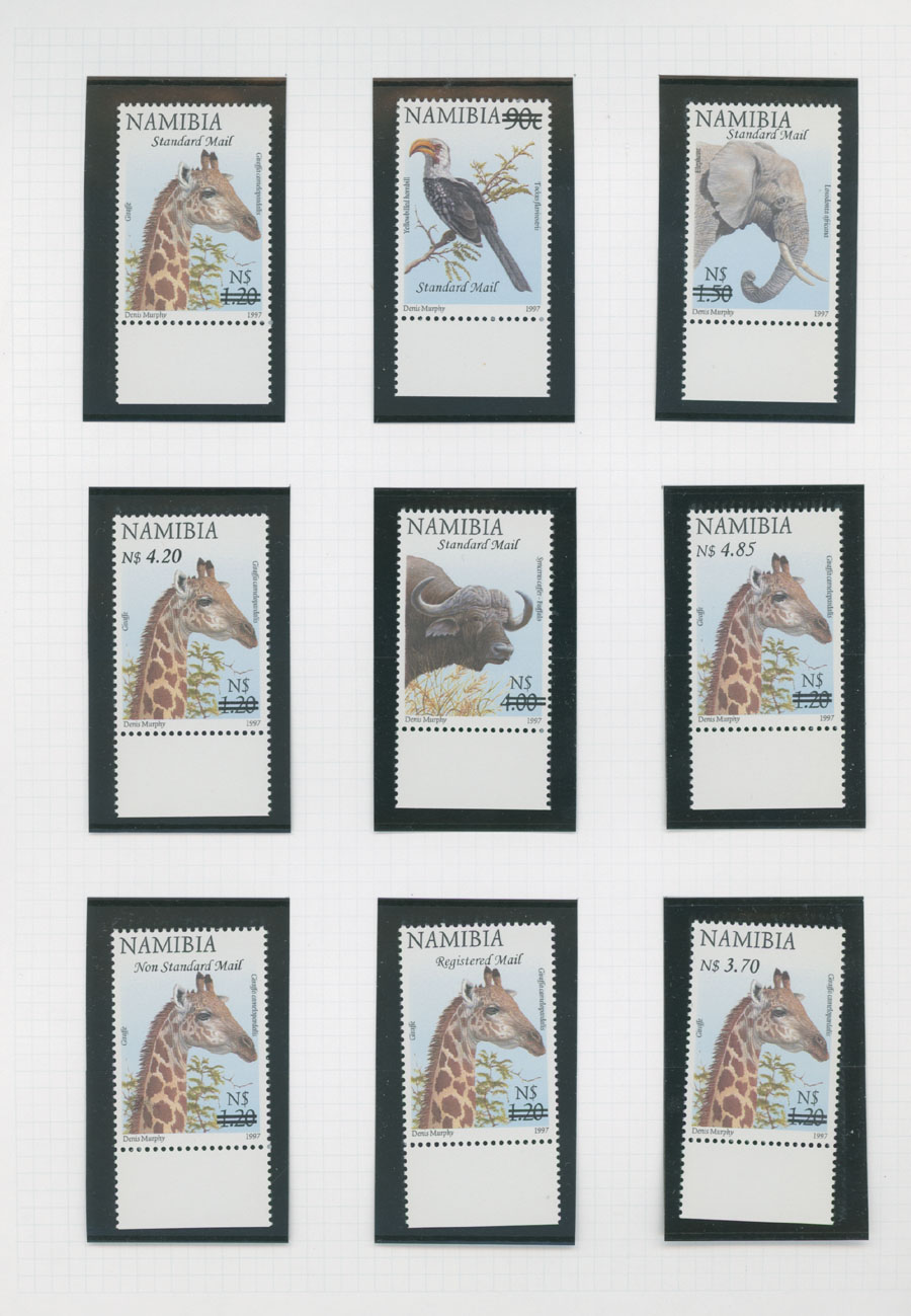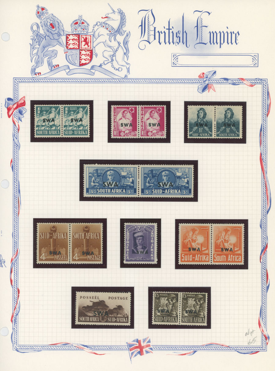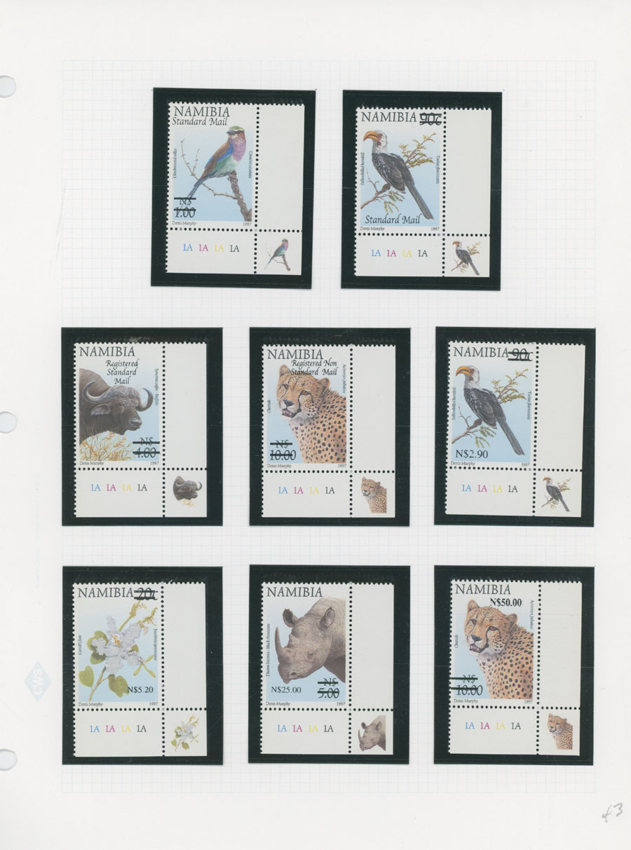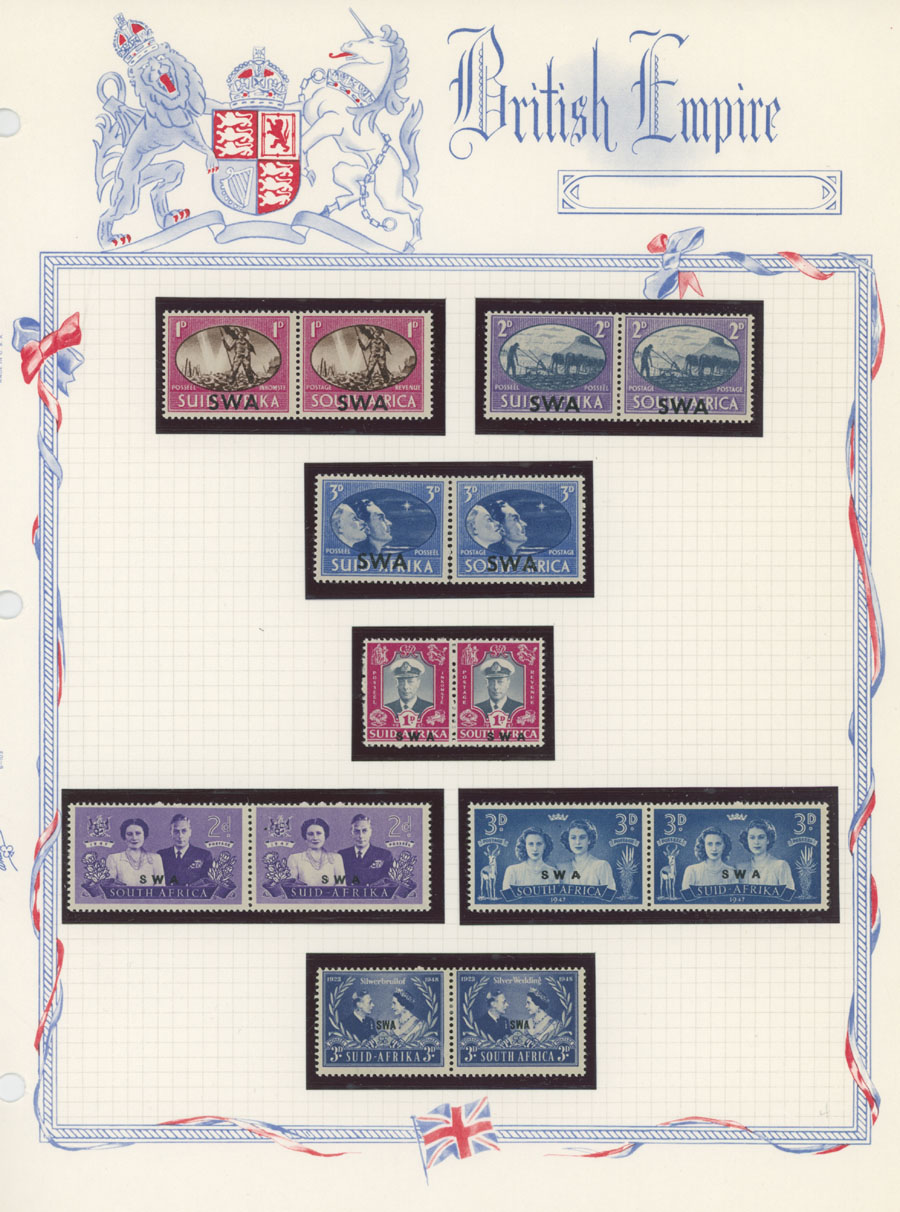 COLLECTION ON PAGES: 1935-2019, about 300 mint stamps and 15 miniature or souvenir sheets, starting with Silver Jubilee and King George VI Coronation sets and including various Animals and Birds sets until 1985, then continues with Namibia issues (Sc. #1060/392), beautiful quality material, full OG, NH, mainly VF, C.v. is over $700, Est. $200-$300, Scott #131/539