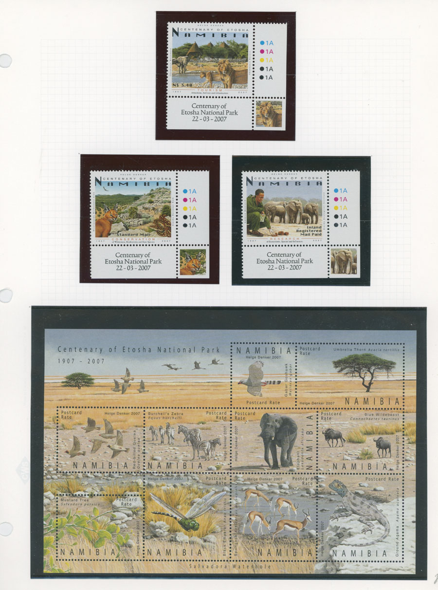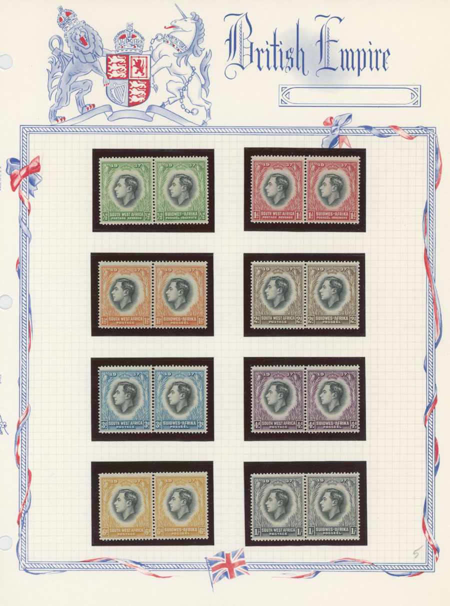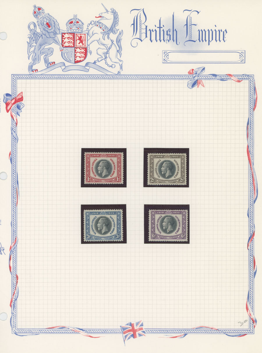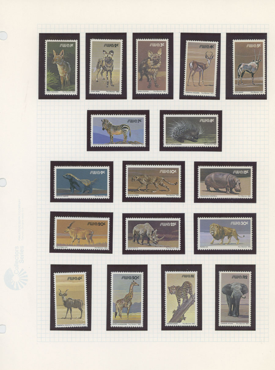 COLLECTION ON PAGES: 1935-2019, about 300 mint stamps and 15 miniature or souvenir sheets, starting with Silver Jubilee and King George VI Coronation sets and including various Animals and Birds sets until 1985, then continues with Namibia issues (Sc. #1060/392), beautiful quality material, full OG, NH, mainly VF, C.v. is over $700, Est. $200-$300, Scott #131/539