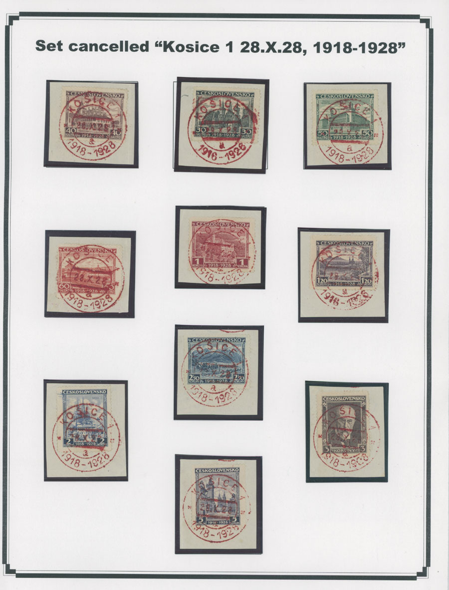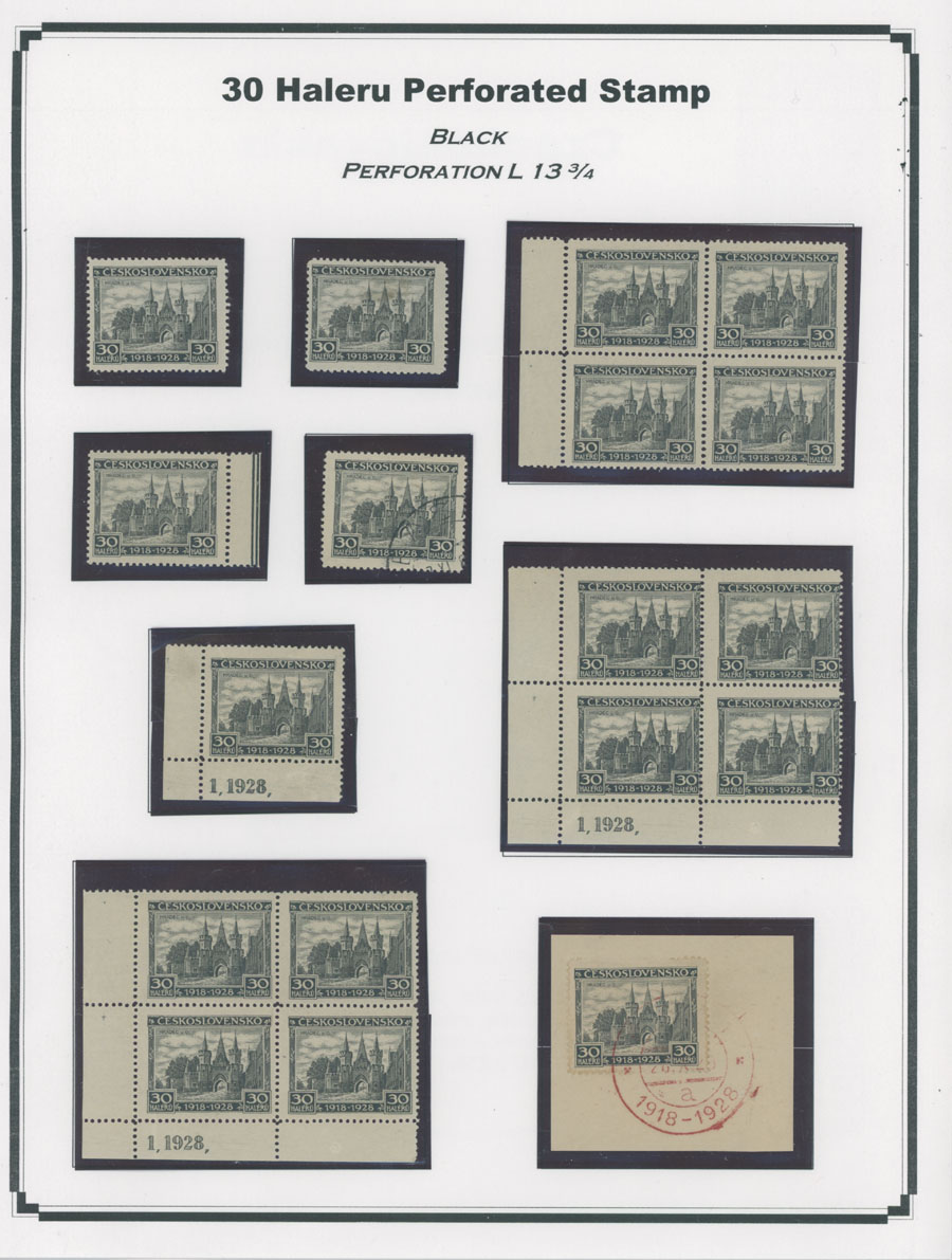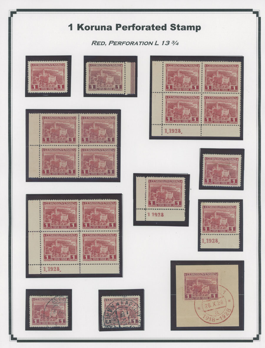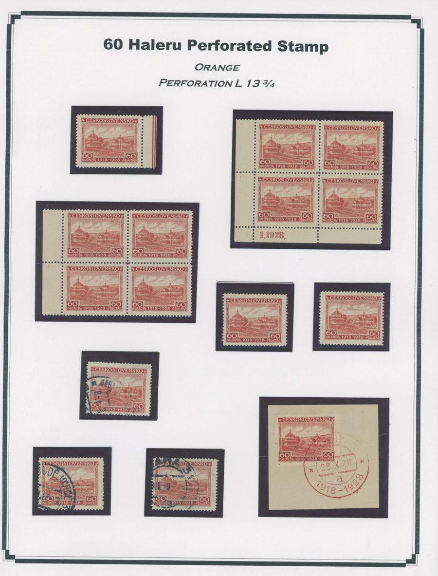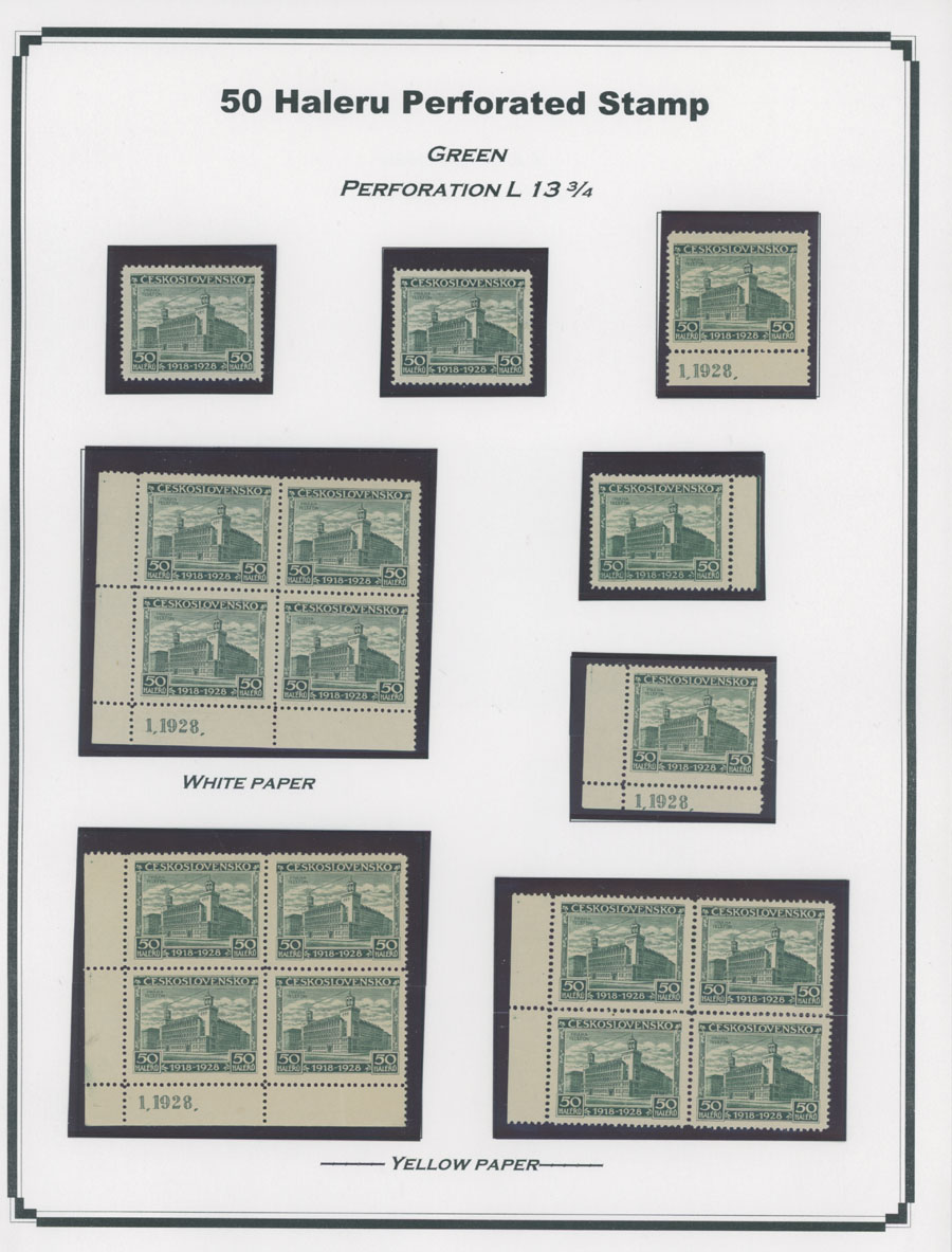 COLLECTION OF THE 10TH ANNIVERSARY OF INDEPENDENCE ISSUE: 1928, 170 mostly mint stamps (47 – used), including 40 positional singles or blocks, 22 of which with control numbers, two blocks of 50h on yellowish paper, two Jubilee cancelled sets in Prague and Košice on individual pieces, in addition 11 postal history items franked by these stamps with total retail value of about $200, nice quality unit, full/part of OG or used, F/VF, Est. $300-$350, Scott #141-51, var