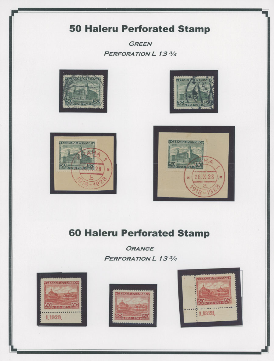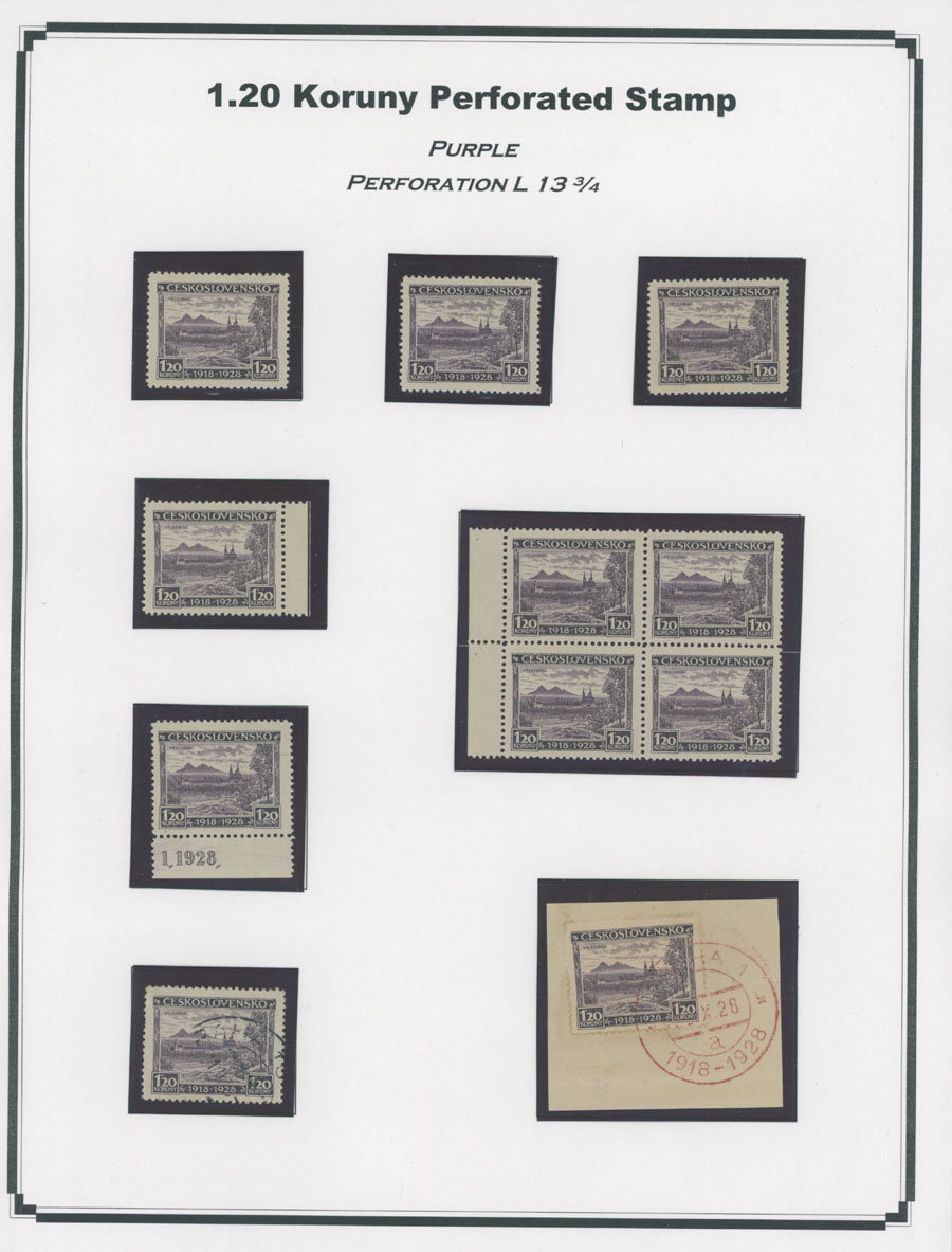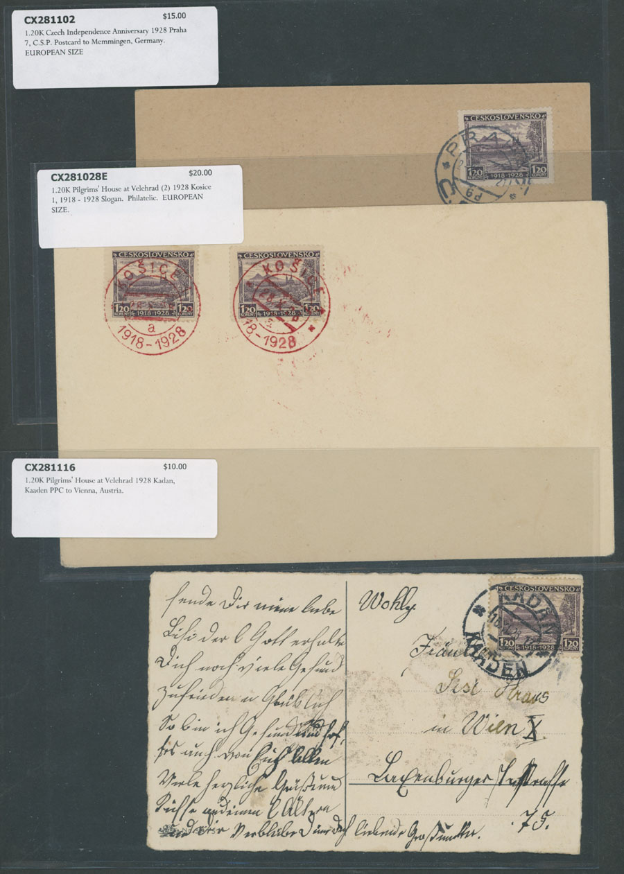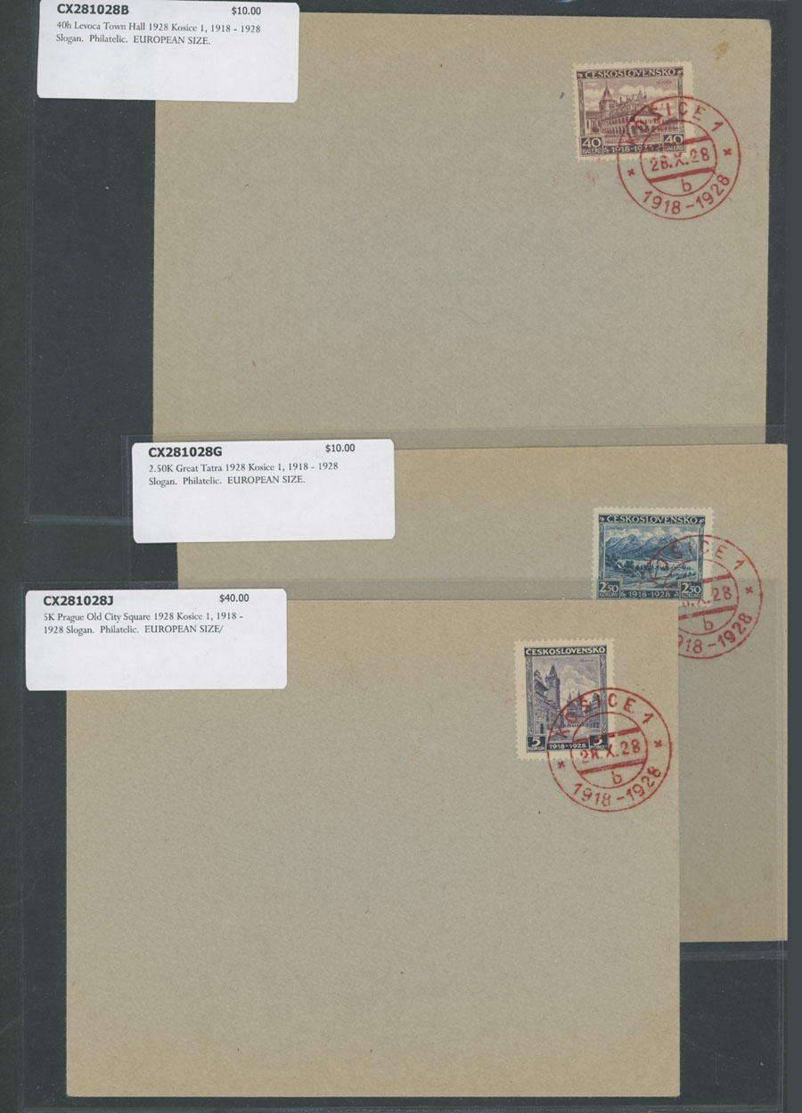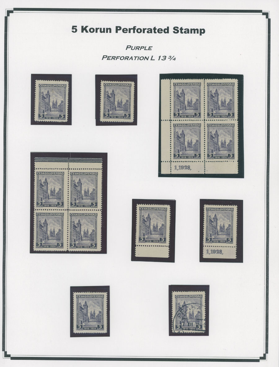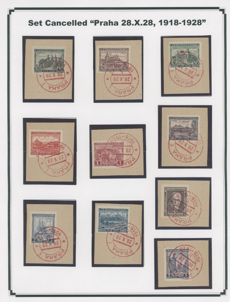 COLLECTION OF THE 10TH ANNIVERSARY OF INDEPENDENCE ISSUE: 1928, 170 mostly mint stamps (47 – used), including 40 positional singles or blocks, 22 of which with control numbers, two blocks of 50h on yellowish paper, two Jubilee cancelled sets in Prague and Košice on individual pieces, in addition 11 postal history items franked by these stamps with total retail value of about $200, nice quality unit, full/part of OG or used, F/VF, Est. $300-$350, Scott #141-51, var