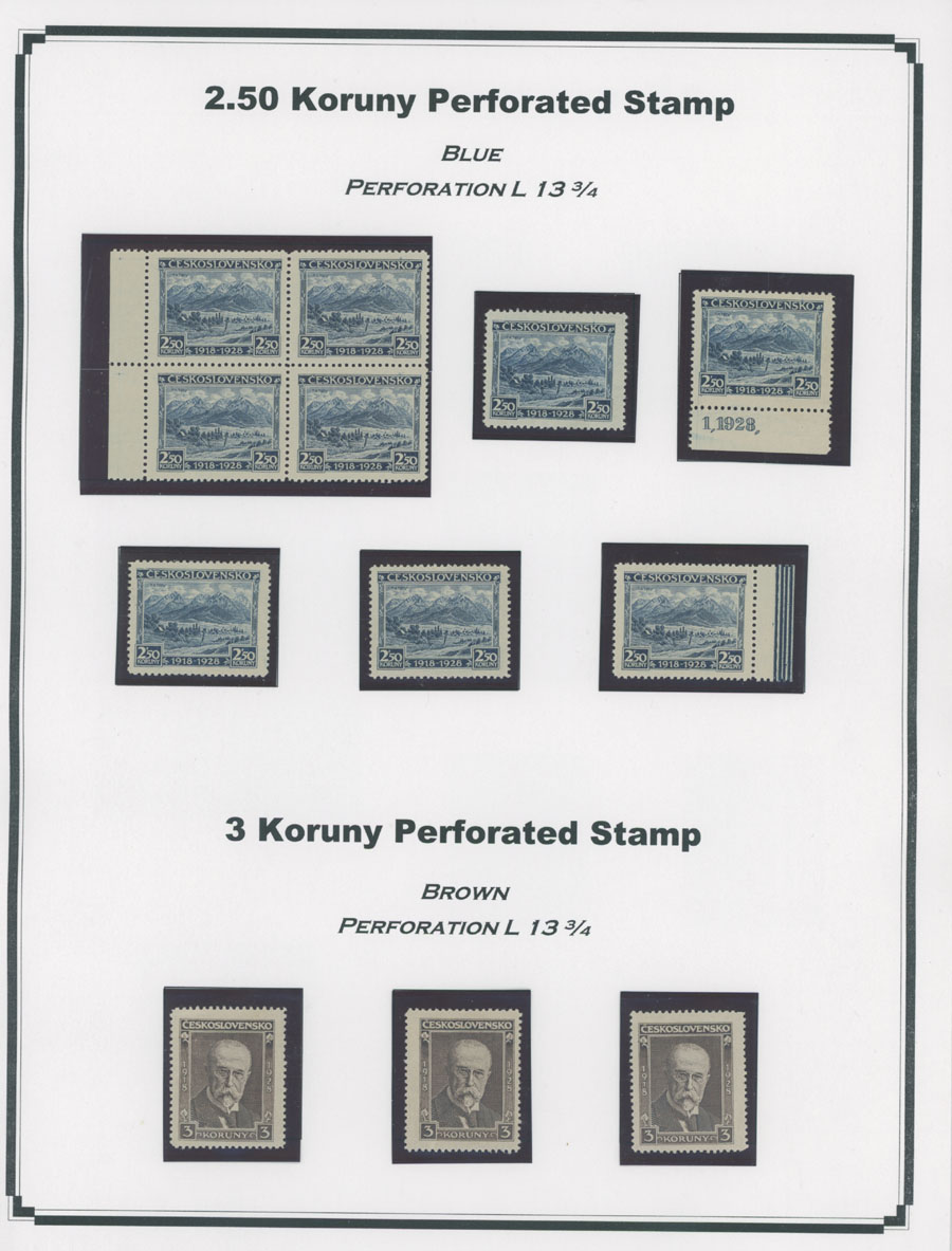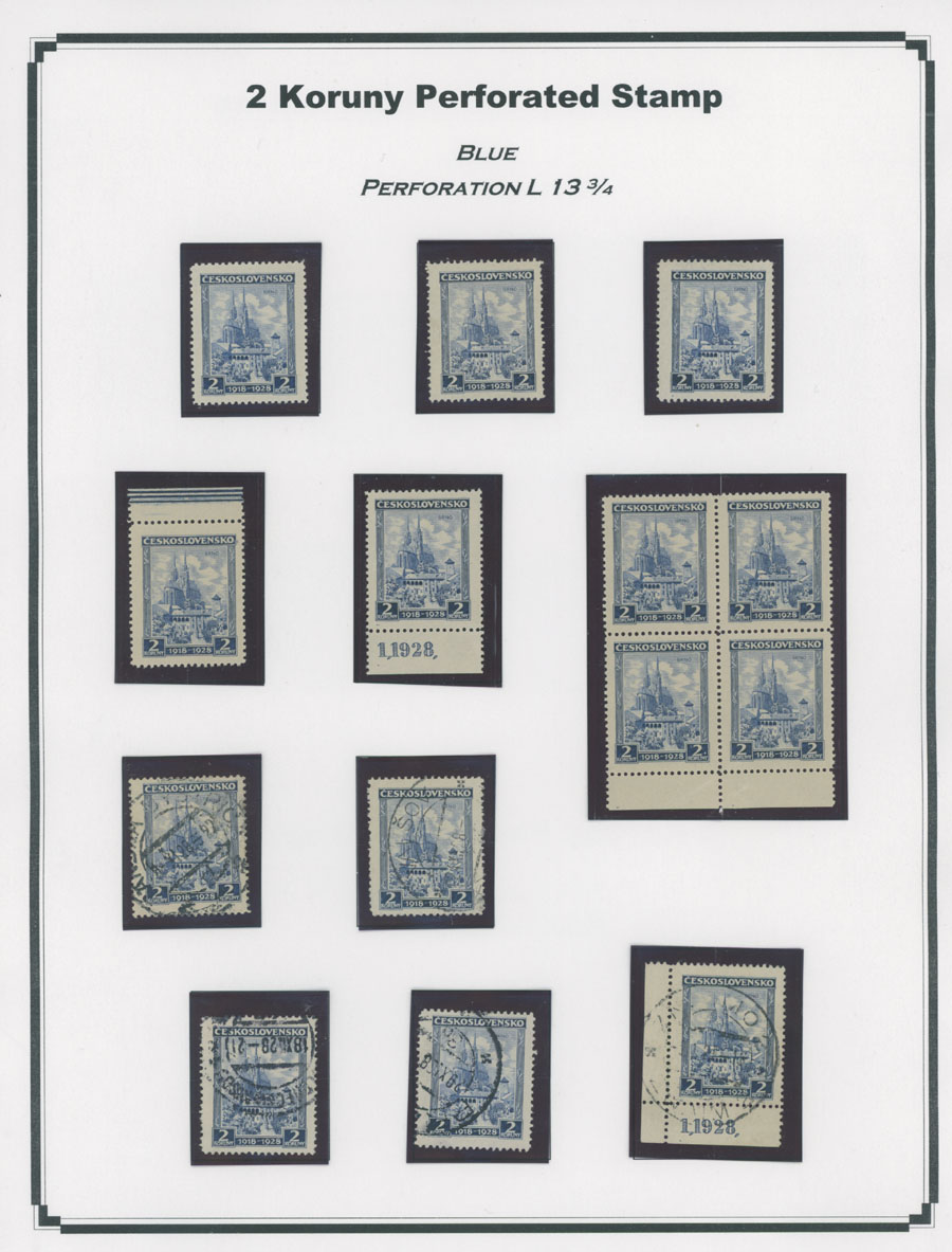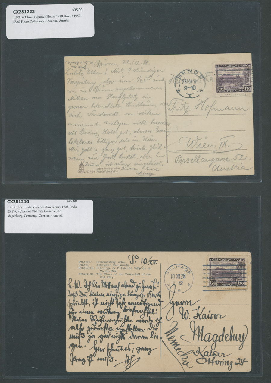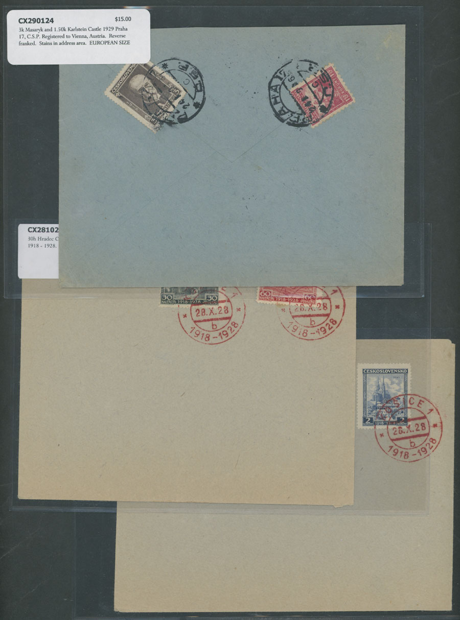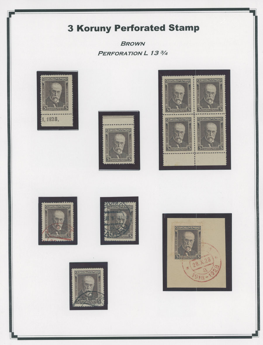 COLLECTION OF THE 10TH ANNIVERSARY OF INDEPENDENCE ISSUE: 1928, 170 mostly mint stamps (47 – used), including 40 positional singles or blocks, 22 of which with control numbers, two blocks of 50h on yellowish paper, two Jubilee cancelled sets in Prague and Košice on individual pieces, in addition 11 postal history items franked by these stamps with total retail value of about $200, nice quality unit, full/part of OG or used, F/VF, Est. $300-$350, Scott #141-51, var