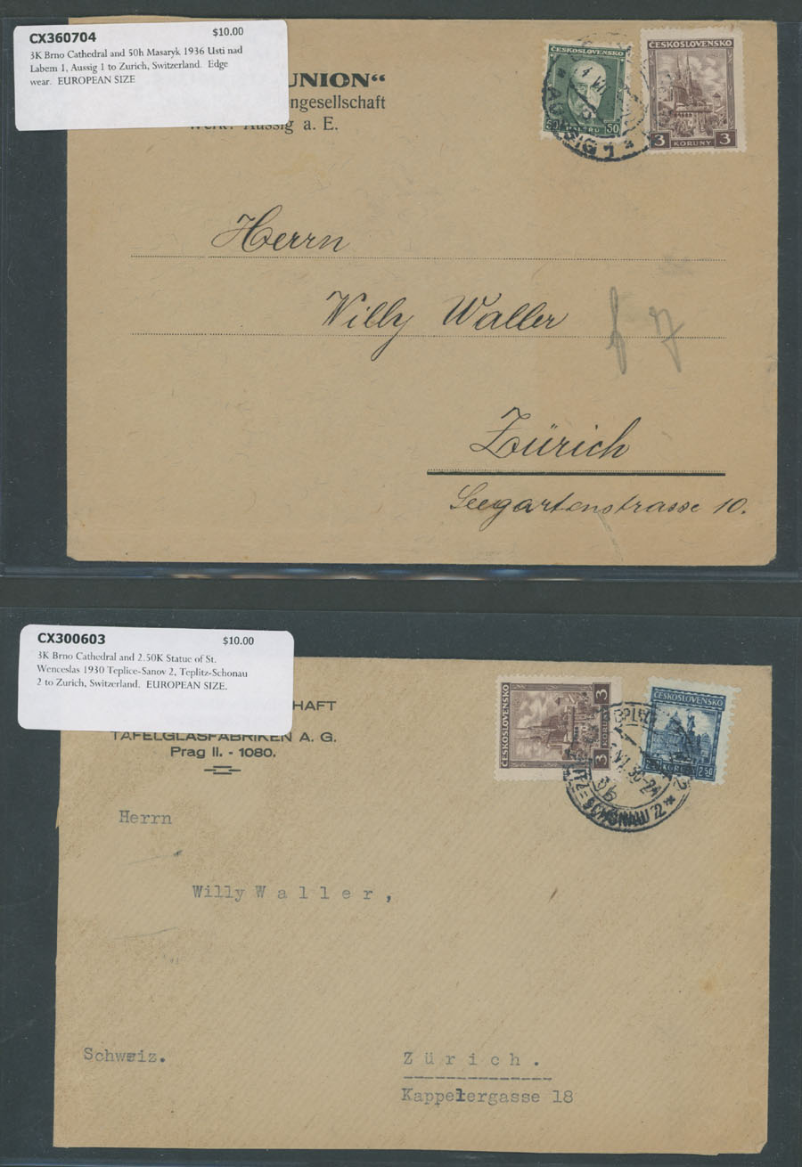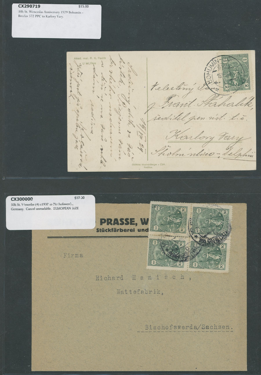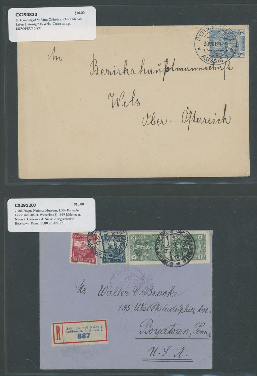 COLLECTION OF 1929 ISSUES: St. Wencenslas and Views of Prague, Brno and Tatra Mountain, over 100 stamps all together, approximately 60% are bearing various cancellations, control No. blocks of the first set and 12proofs (two blocks of four and four singles) of the second set, seven postal history items, nice looking unit, occasional flaws possible on used stamps, F/VF, Est. $300-$400, Scott #159-63, 165-67, var
