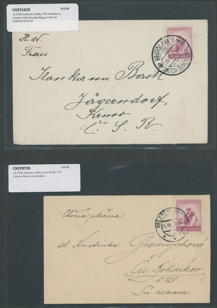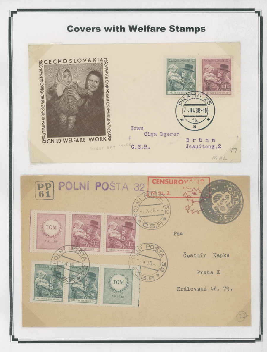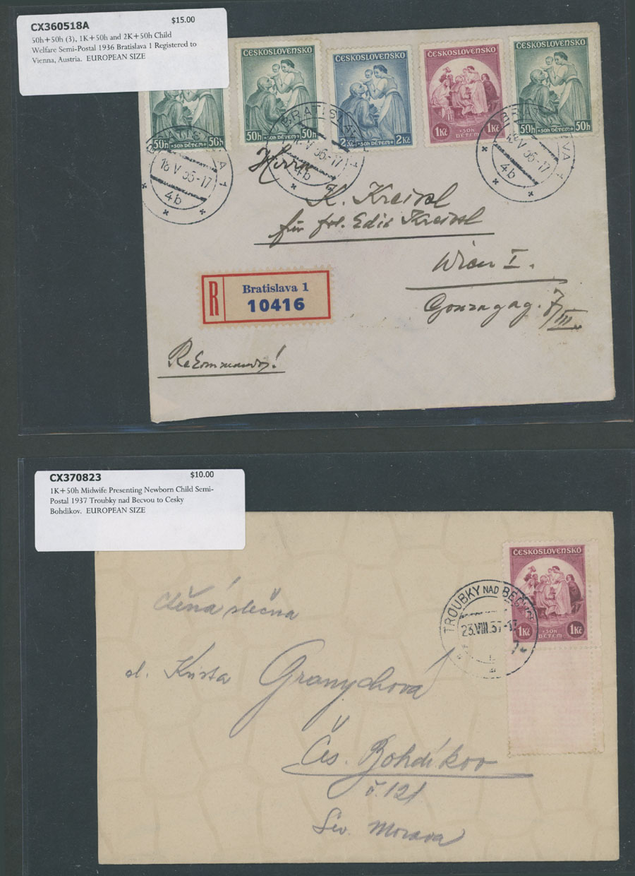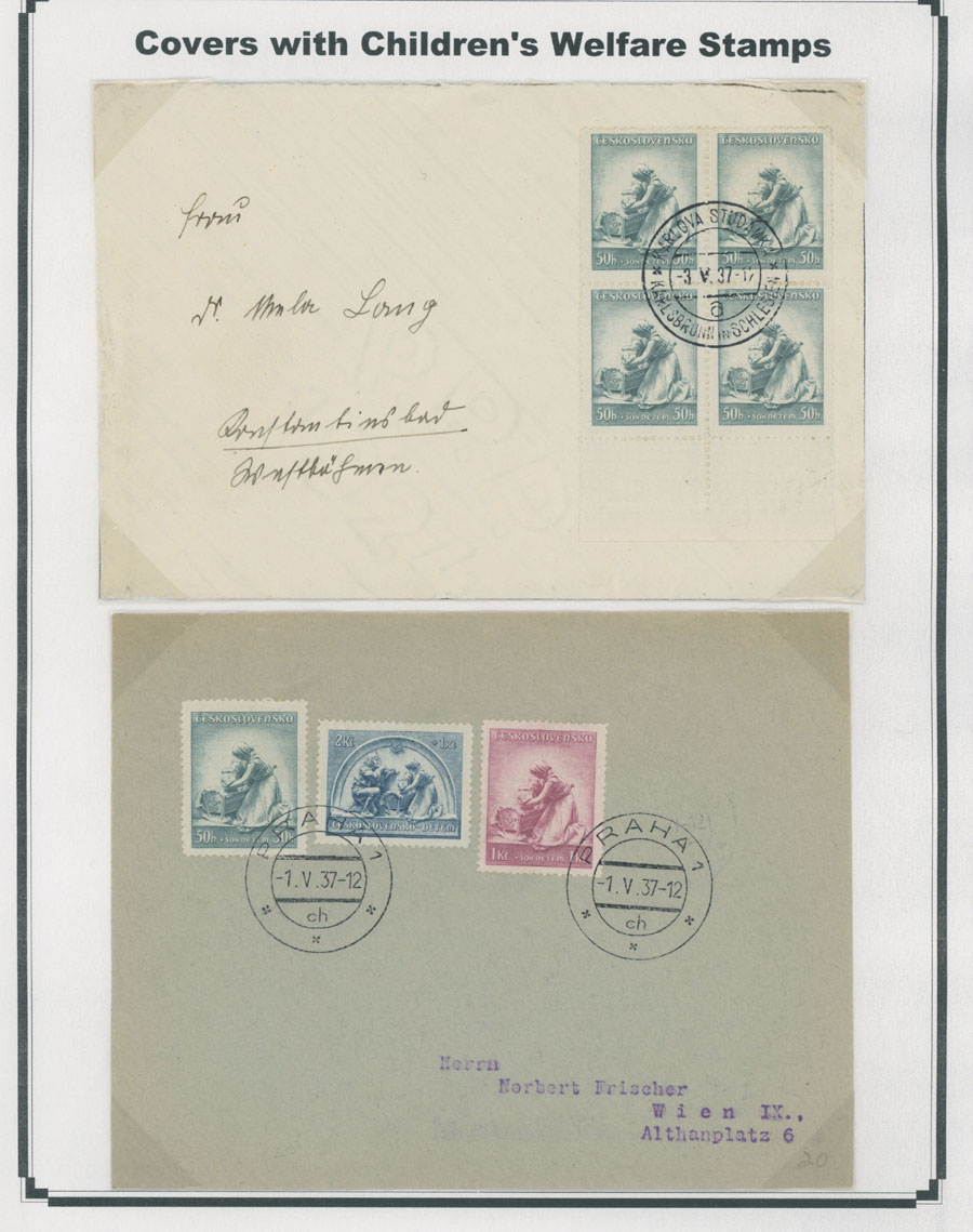 COLLECTION OF THE CHILD WELFARE ISSUES: 1936-38, over 80 mostly mint stamps (just a few used), 2 souvenir sheets and 14 postal history items, in addition 3 souvenir folders, the collection includes 37 singles with labels or blocks of three with labels, nice quality unit, full/large part of OG, VF, Est. $200-$250, Scott #B144-52, var