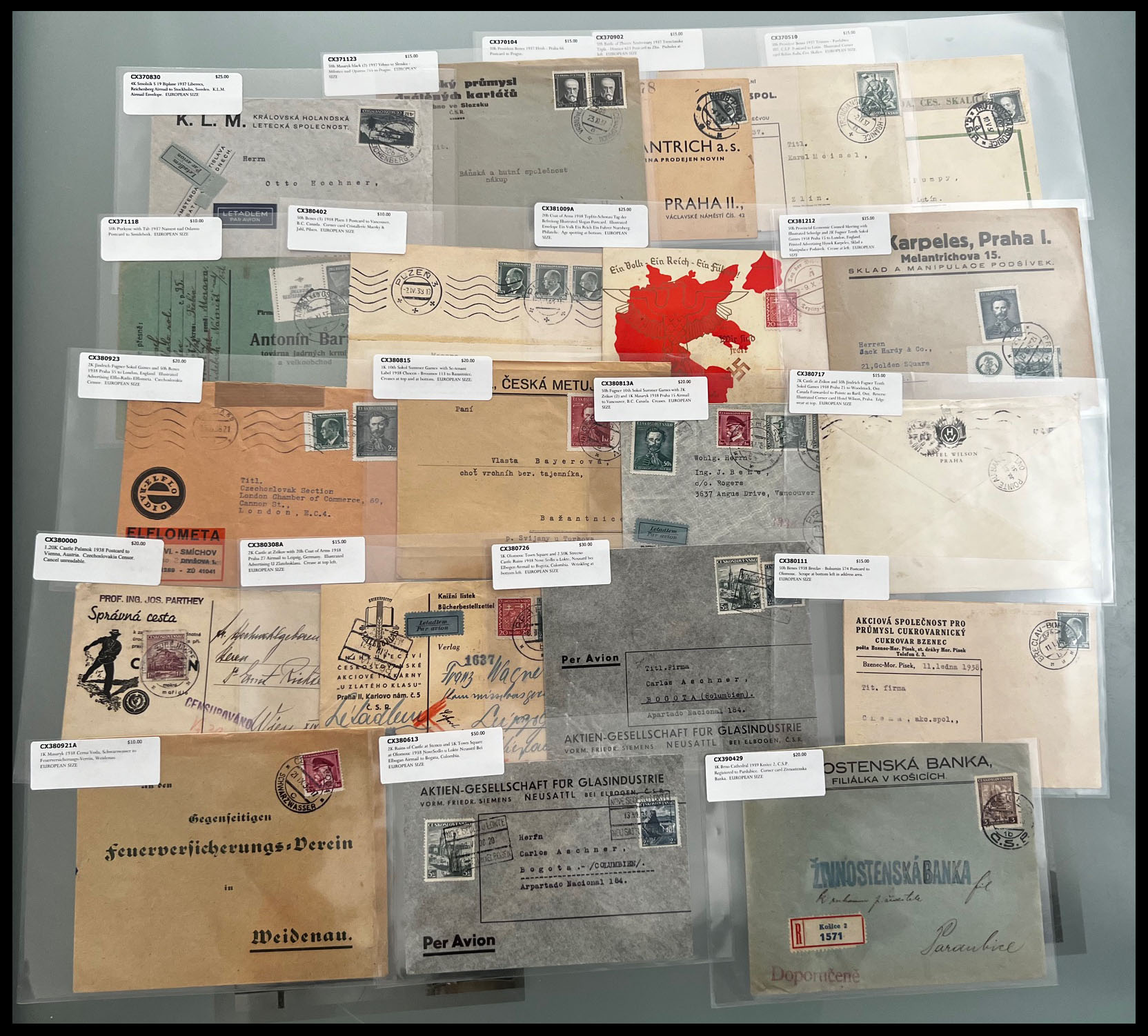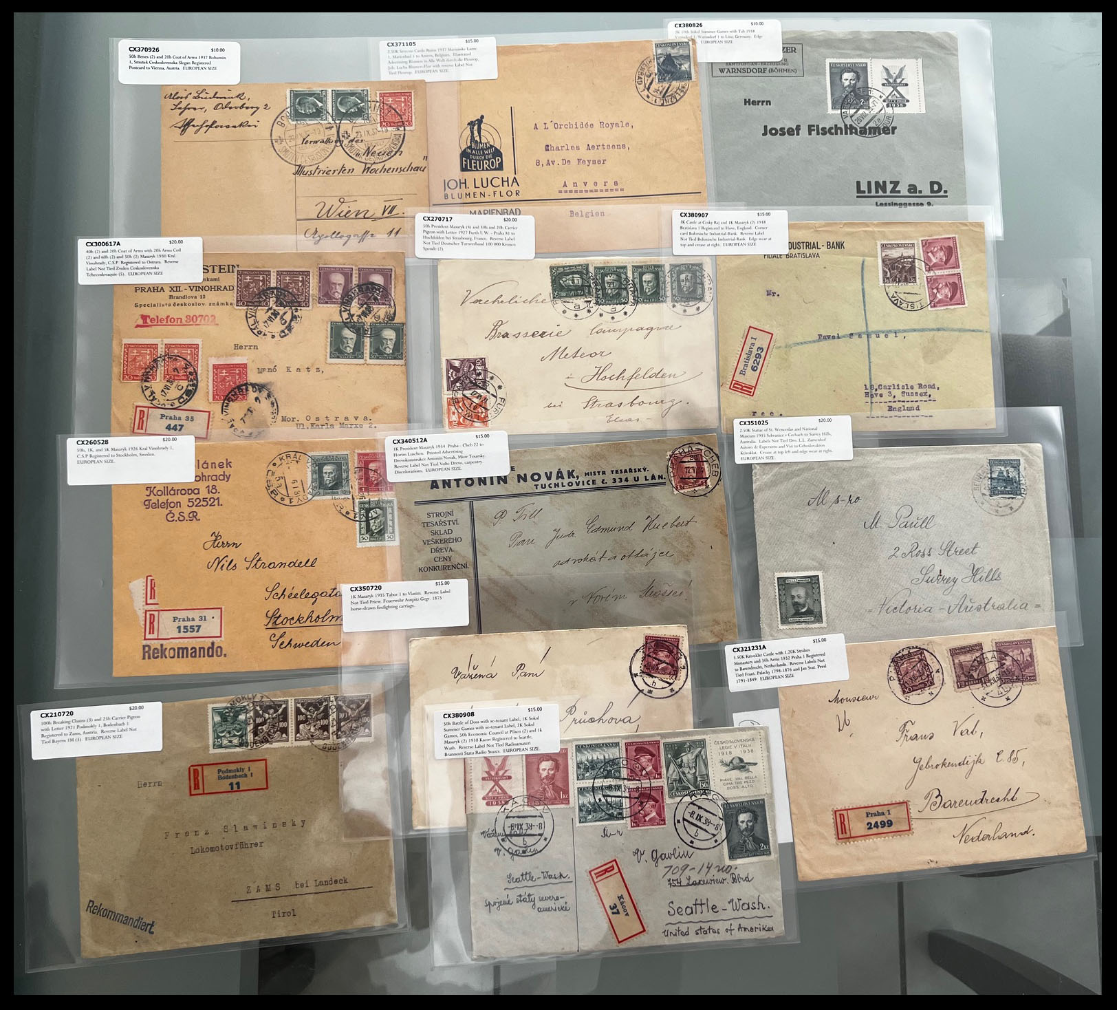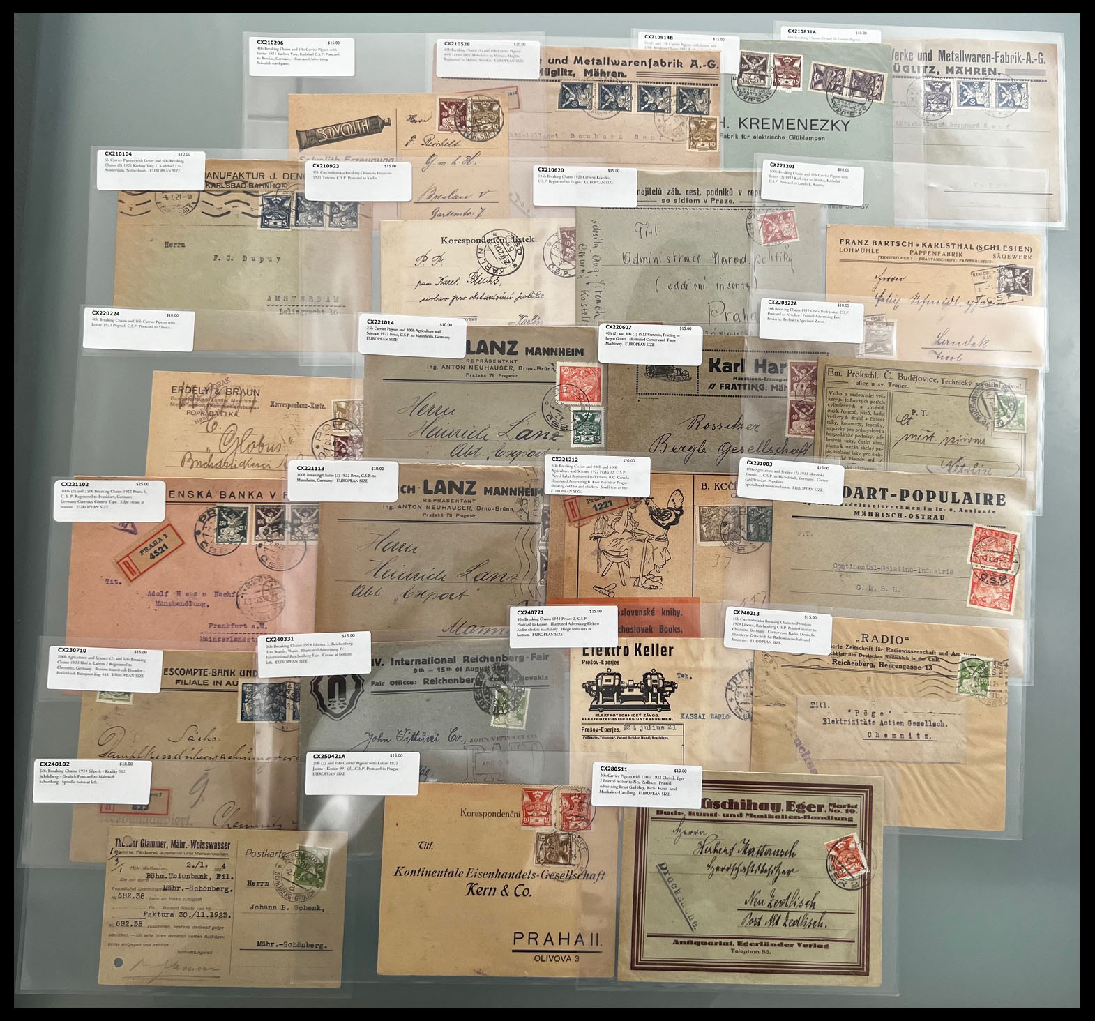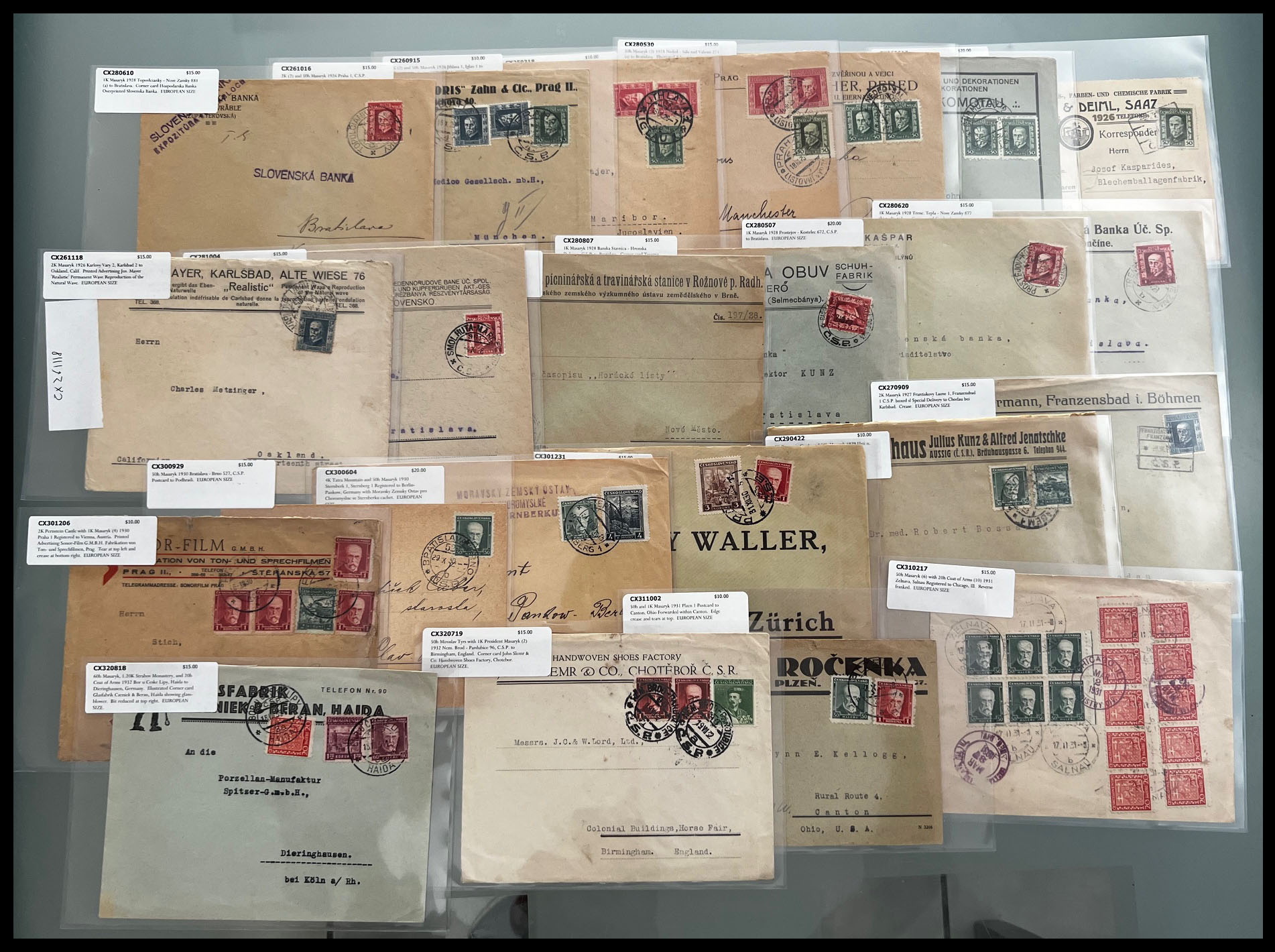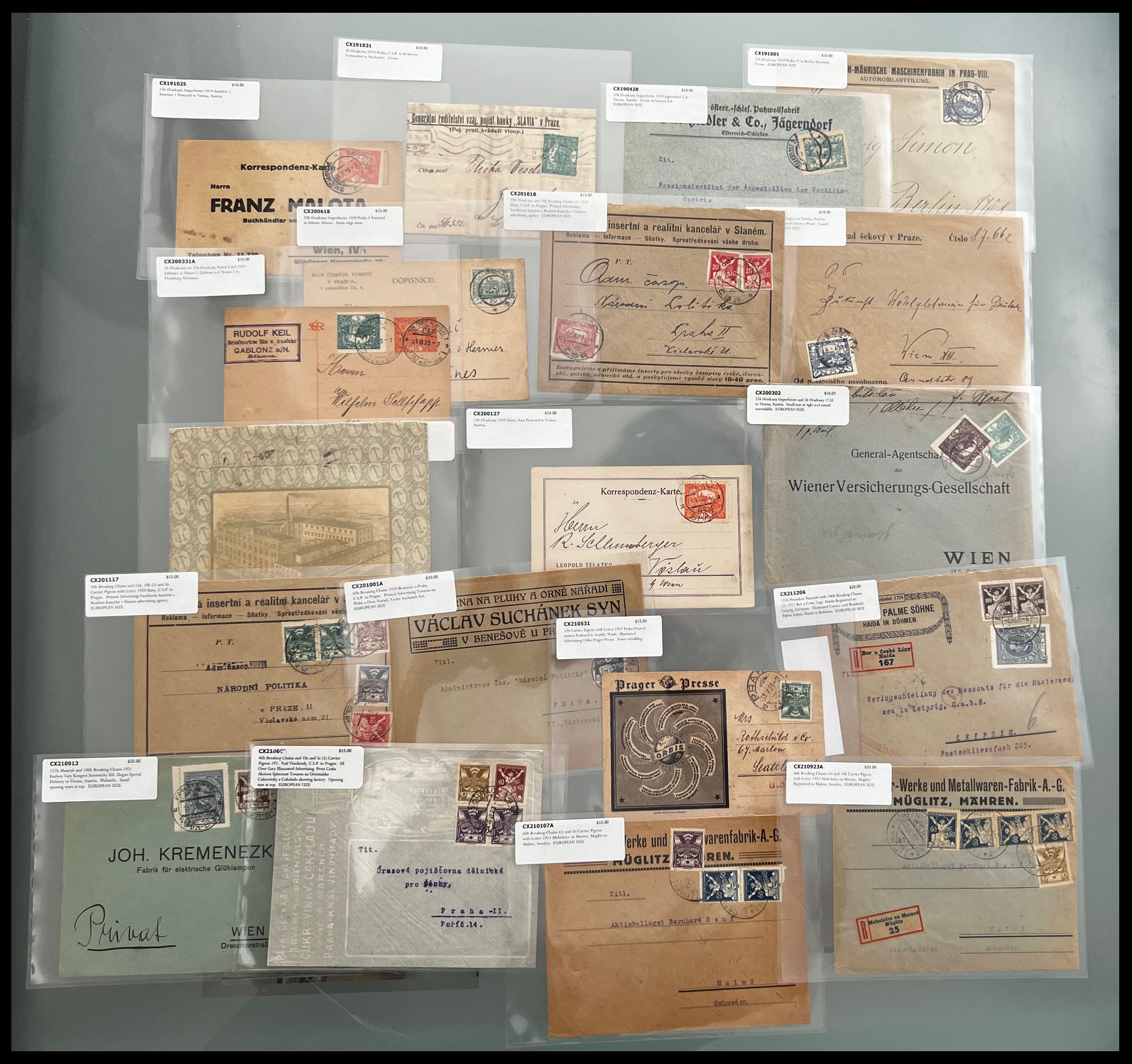 ADVERTISING AND DIFFERENT PRE-PRINTED ITEMS: 1919-39, 122 items, including 91 cover, 30 postcards and 1 parcel card, each one with various merchant, banking, postal and etc. advertisement messages, appropriately franked, individually priced and housed in plastic protectors, generally nice and fresh unit, F/VF, suggested retail is $1,750, Est. $300-$400