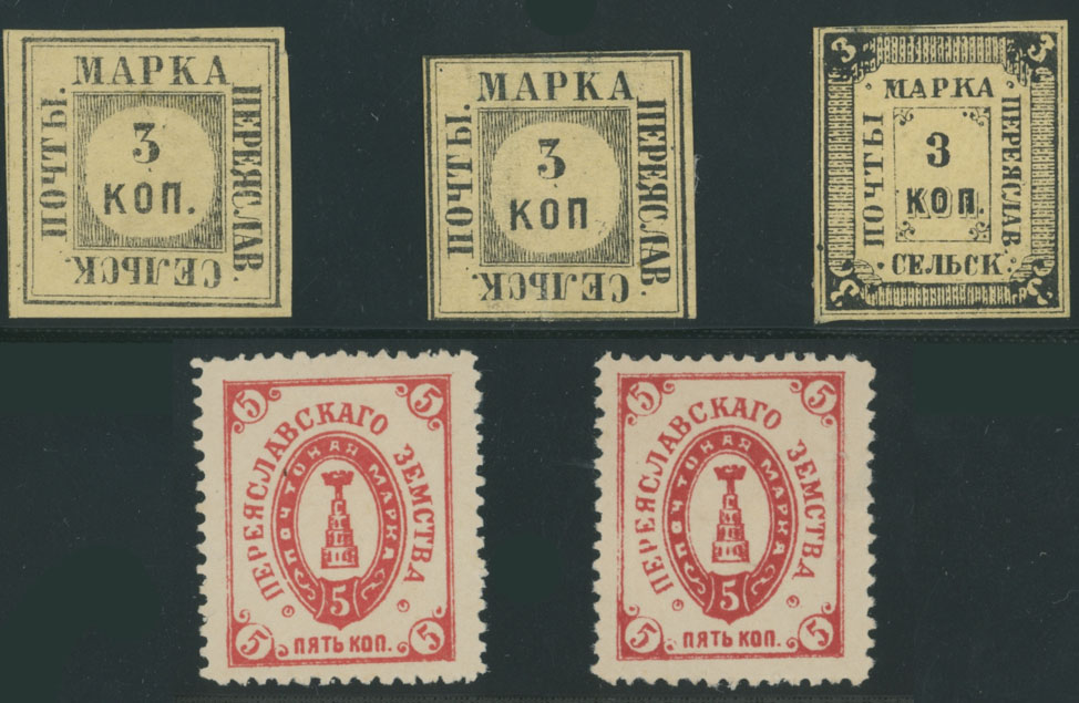 1874-1914, Numerals, 3k black on yellow paper, including two No.3 with and without the dot after ”kop”; Arms in Oval, two stamps of 5k in red, one of deeper shade, occasional mostly marginal thins, part of OG or unused, no gum (1), F/VF, C.v. $410, Est. $300-$350, Schmidt #3-4, 26, A