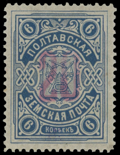 1918, carmine surcharge 20(k) on Arms 6k blue, large part of OG, VF, C.v. $300, Est. $200-$250 , Schmidt #42
