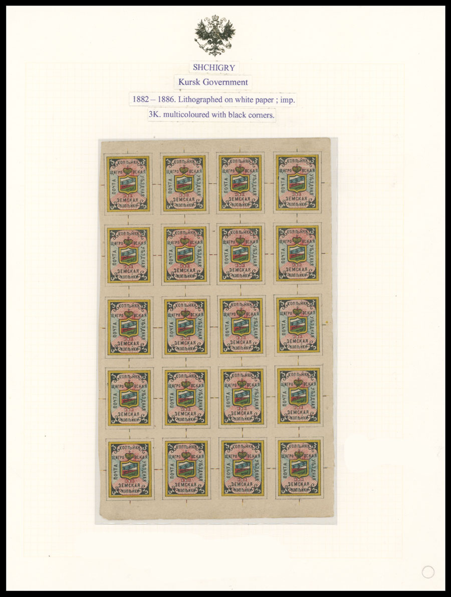 1882-86, Arms in Rectangle design, 3k multicolored with corners in black, block of 20 (4×5), minor wrinkles, full OG, generally NH, VF and rare, C.v. $3,000, Est. $1,500-$2,000 , Schmidt #1