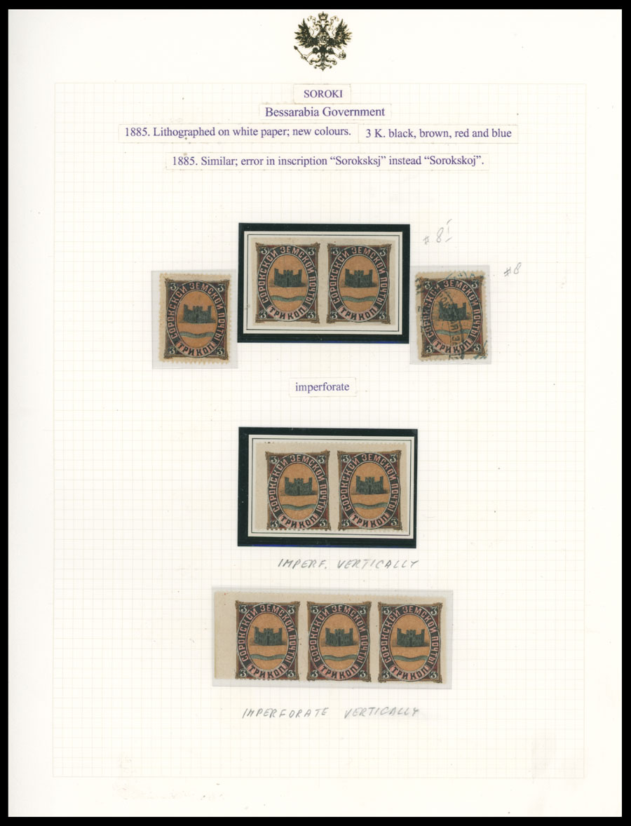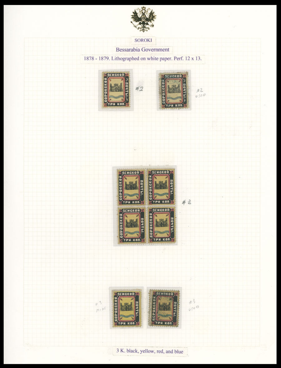 1878-98, 32 mostly mint stamps (7 – used) arranged on four pages from the Bianchi collection, starting with two of No.2, then No.3 in two singles and block of four, including imperf pair, imperf vertically pair and imperf vertically strip of three (No.8), block and three singles of No.10 and more, occasional flaws possible, full/part of OG or used, C.v. is over $1,100 plus not priced perf errors, Est. $800-$900, Schmidt #2/10, var