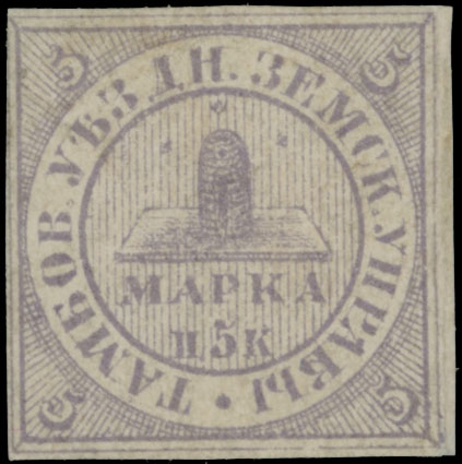 1872, Arms in Concentric Circles, 5k lilac, clear margins all around, part of OG, F/VF and rare, Chuchin #3, rank ”R”, C.v. $1,500, Est. $1,000-$1,200 , Schmidt #3