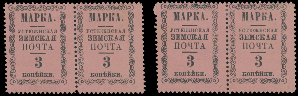 1895, Wide Curls, 3k black on pink paper, two horizontal pairs, representing all existing 4 types, large part of OG, F/VF, C.v. $320, Est. $250-$300 , Schmidt #18