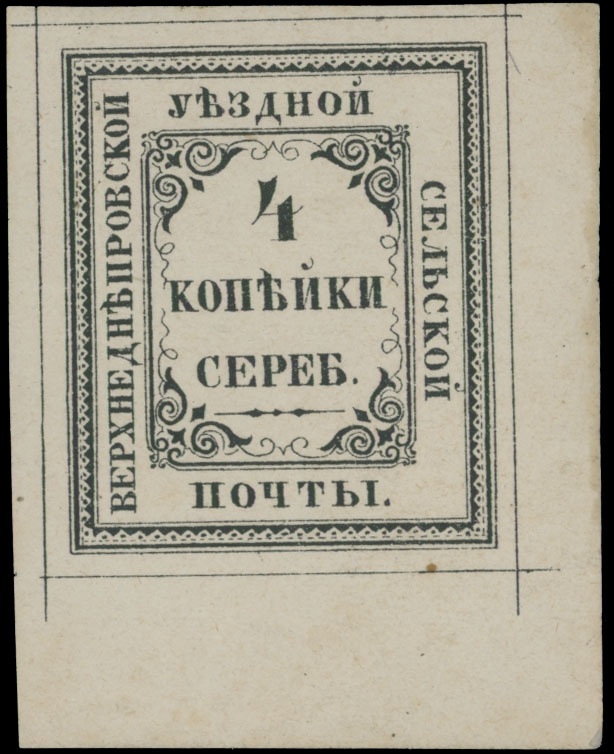 1866, Ornamental Rectangular design, 4k black on slightly creamy paper, bottom right corner sheet margin single, full OG (partly not placed on margin), NH, VF, C.v. $400, Est. $300-$350 , Schmidt #1