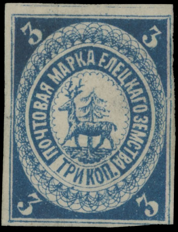 1873, Arms (Deer) in triple oval, 3k deep blue, appropriate margins, close but clear at bottom right, unused, no gum, F/VF, ex-Bianchi, C.v. $800, Est. $500-$600 , Schmidt #1