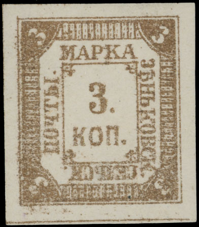 1882, Rounded top, 3k brown printed on wove netted paper, full OG, LH, VF, scarce, rank ”RR”, ex-Liphschutz, C.v. $900, Est. $500-$600 , Schmidt #8