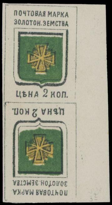 1885, 2k black, dark green and yellow, right sheet margin vertical tete-beche pair, full OG, previously hinged, VF, ex-Liphschutz, C.v. $800, Est. $500-$600 , Schmidt #3S1
