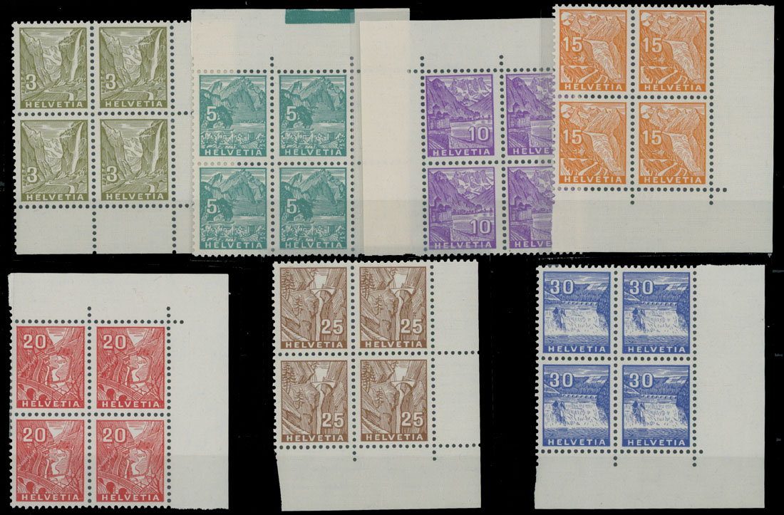 1934, Points of Interest, 3c-30c, complete set of seven, corner sheet margin blocks of four, full OG, NH, VF, C.v. $496++, Est. $200-$250 , Scott #219-25