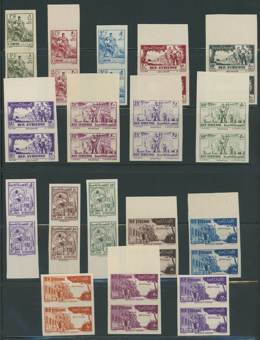 1954, Agrarian and Industrial Workers, Family; Communications Building and University, 1p-50p and 5p- 70p, two imperforate complete sets of nine and eight in vertical pairs, postage and air post, full OG, NH, VF, Est. $400-$500 , Scott #378-86, C175-82 imp