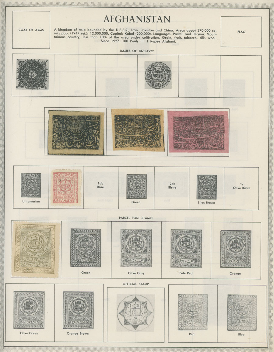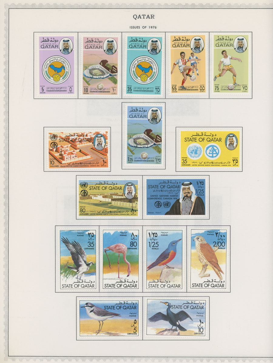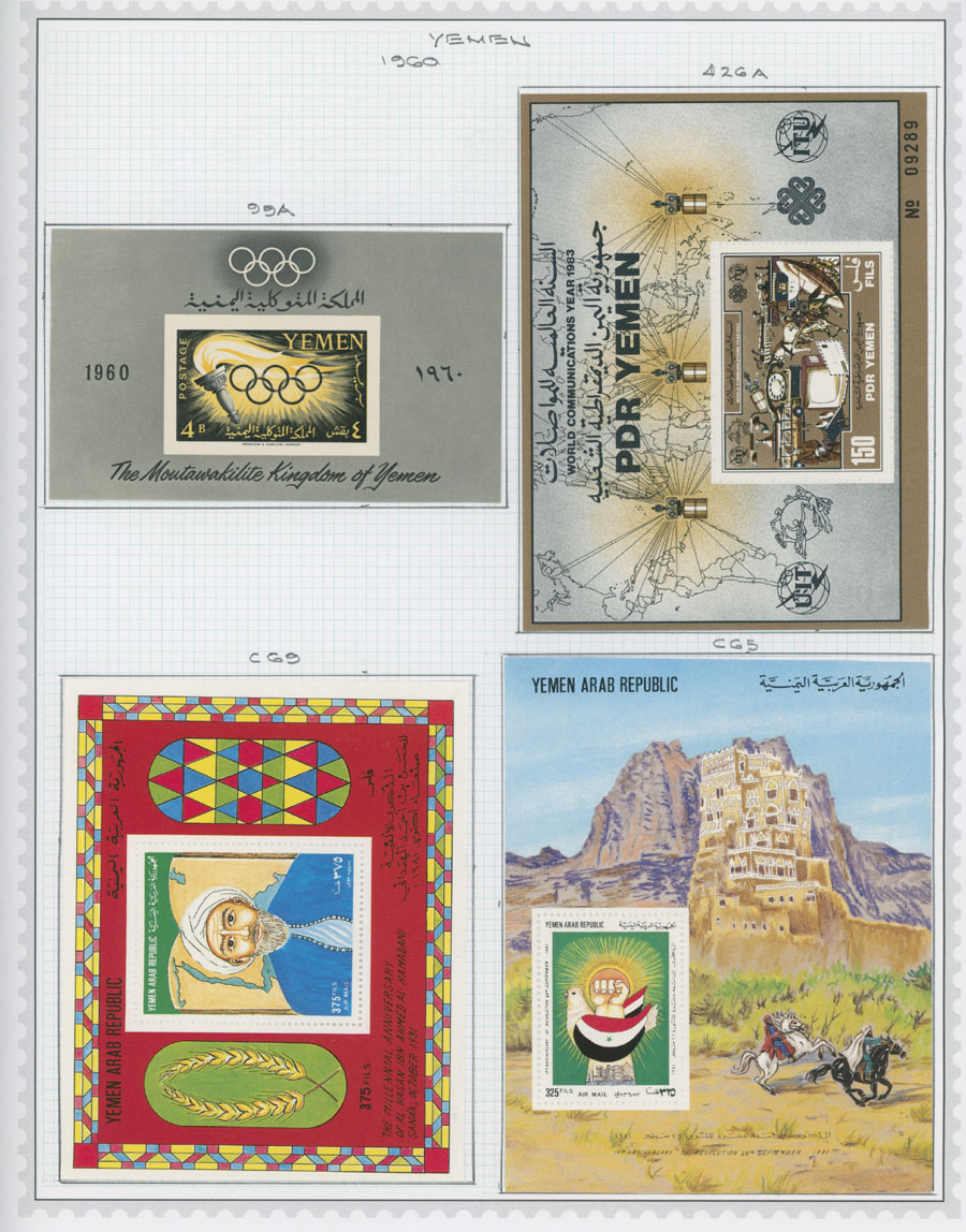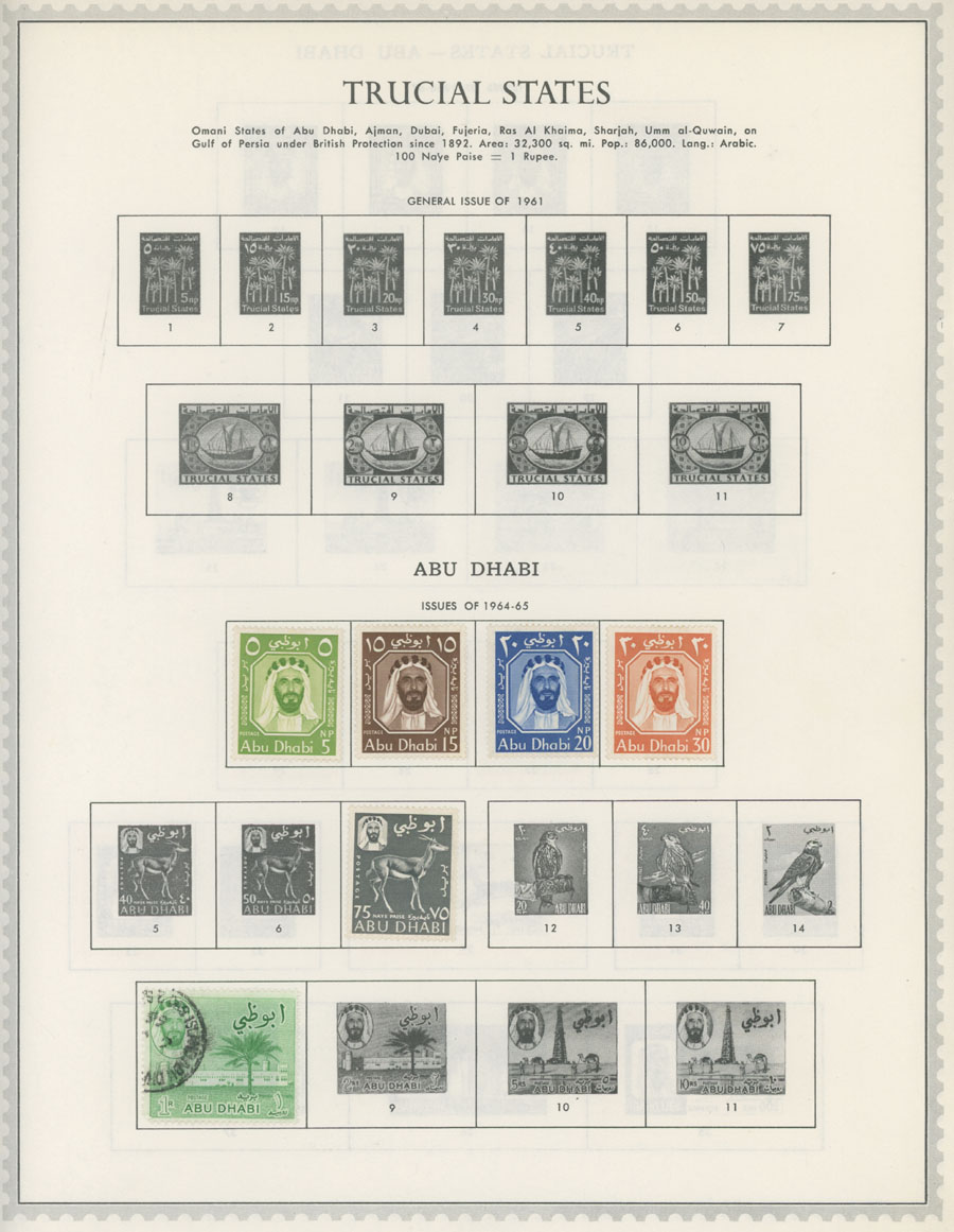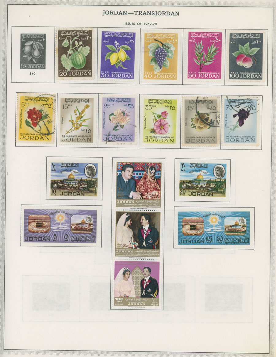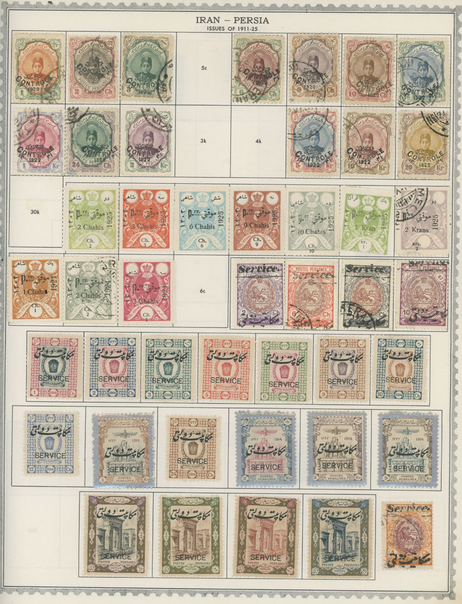 LARGE MIDDLE EAST COLLECTION ON ILLUSTRATED PAGES: 1865-2000, about 13,000 mint and used stamps and 180 souvenir sheets, representing issues of Aden and South Arabia (C.v. $550), Afghanistan (C.v. $900), Iran (C.v. $5,700), Iraq (C.v. $1,000), Palestine and Israel (C.v. $1,400), Jordan (C.v. $1,350), Pakistan (C.v. $1,000), Qatar (C.v. $3,000), Turkey (C.v. $4,000), United Arab Emirates with other Trucial States and Yemen (C.v. $1,000), many valuable items, occasional flaws possible, full/large part of OG or used (many CTO), F/VF, great lot for breaking up for individual country collections, total C.v. about $20,000, Est. $4,000-$5,000