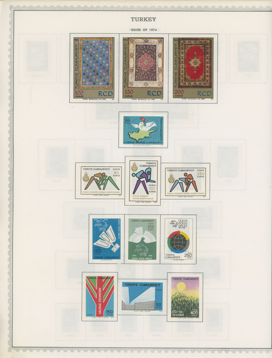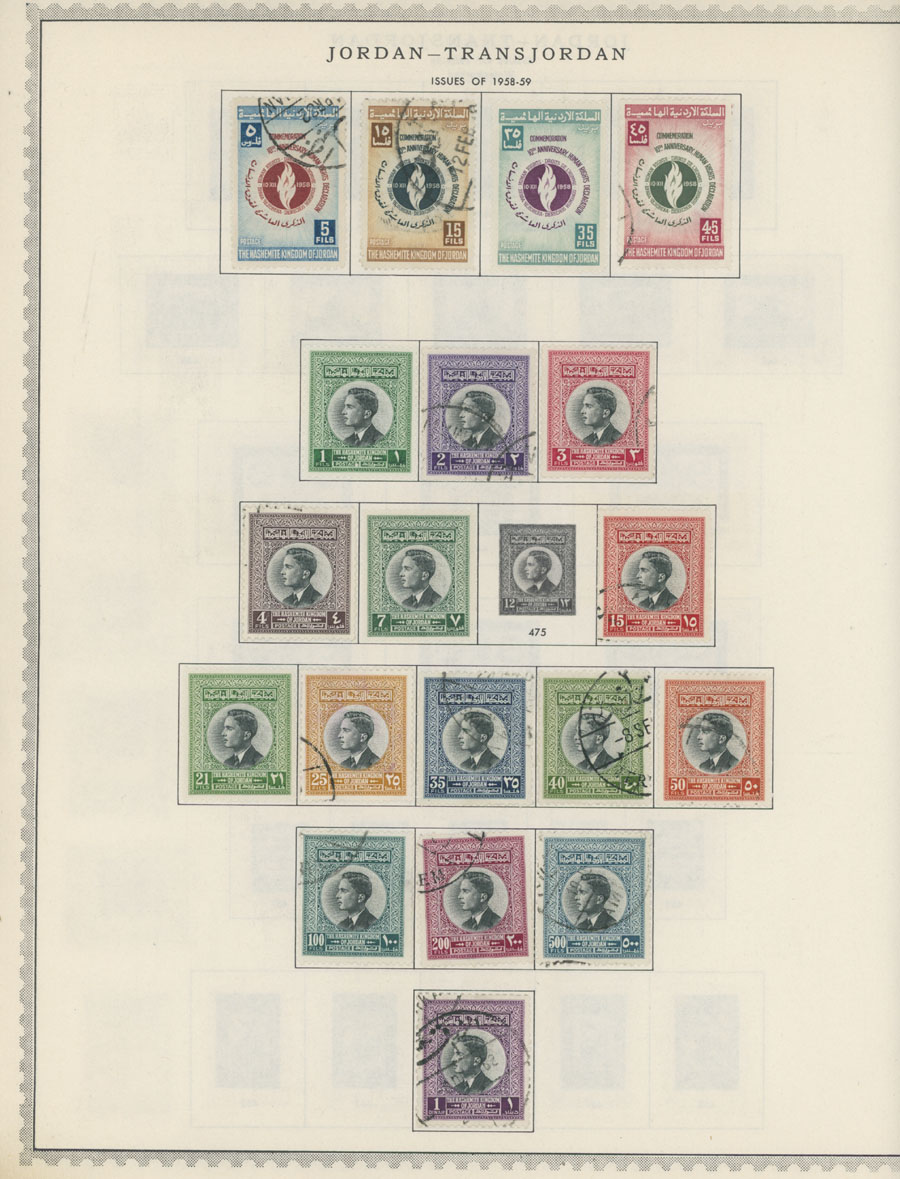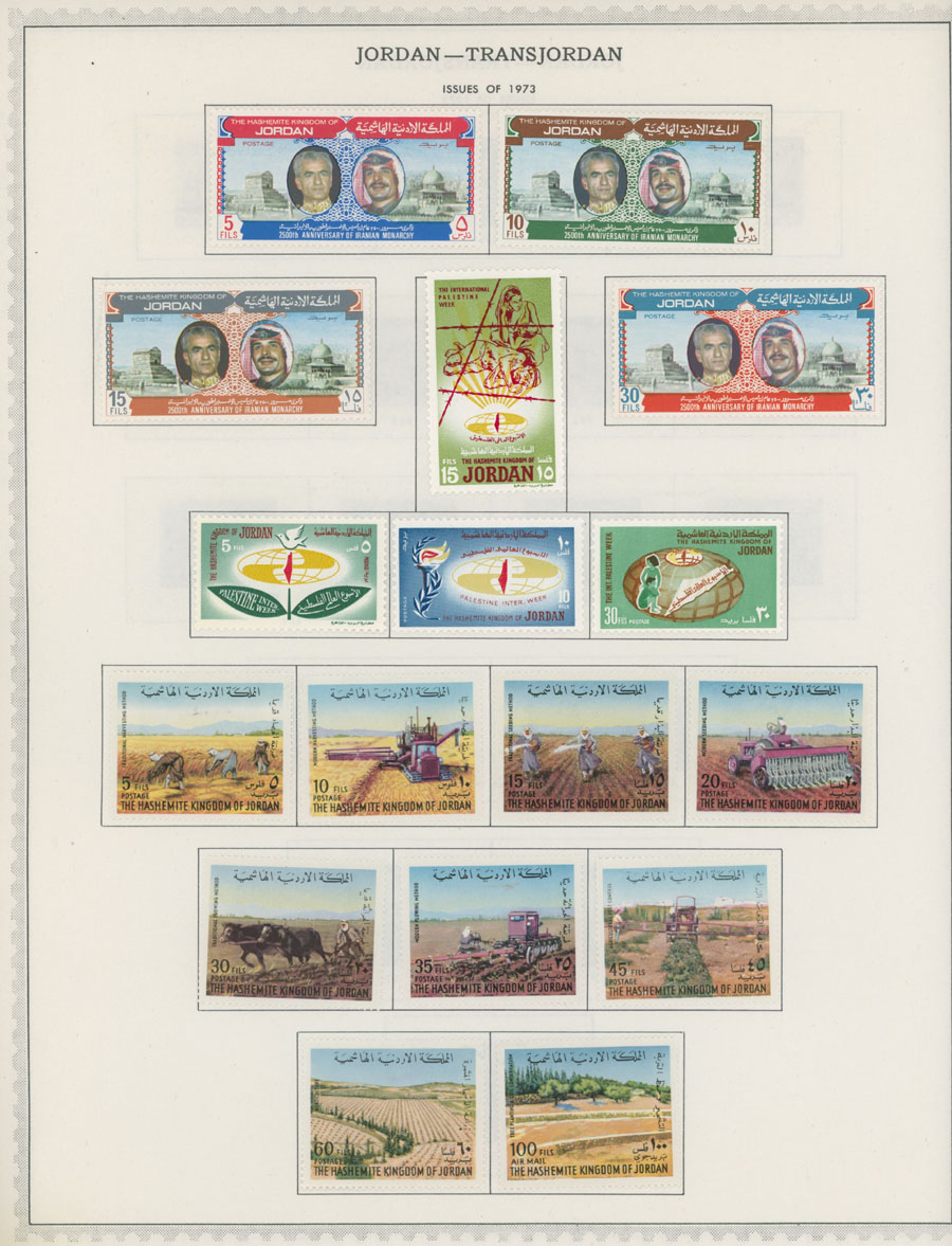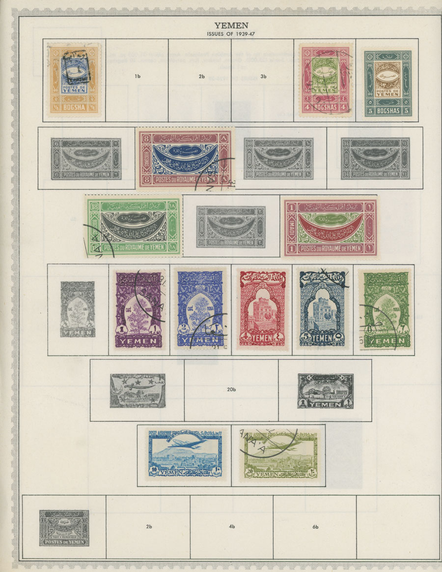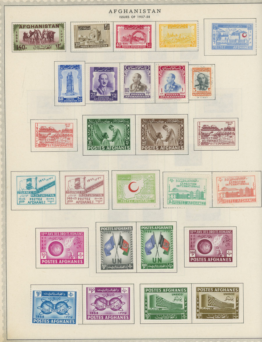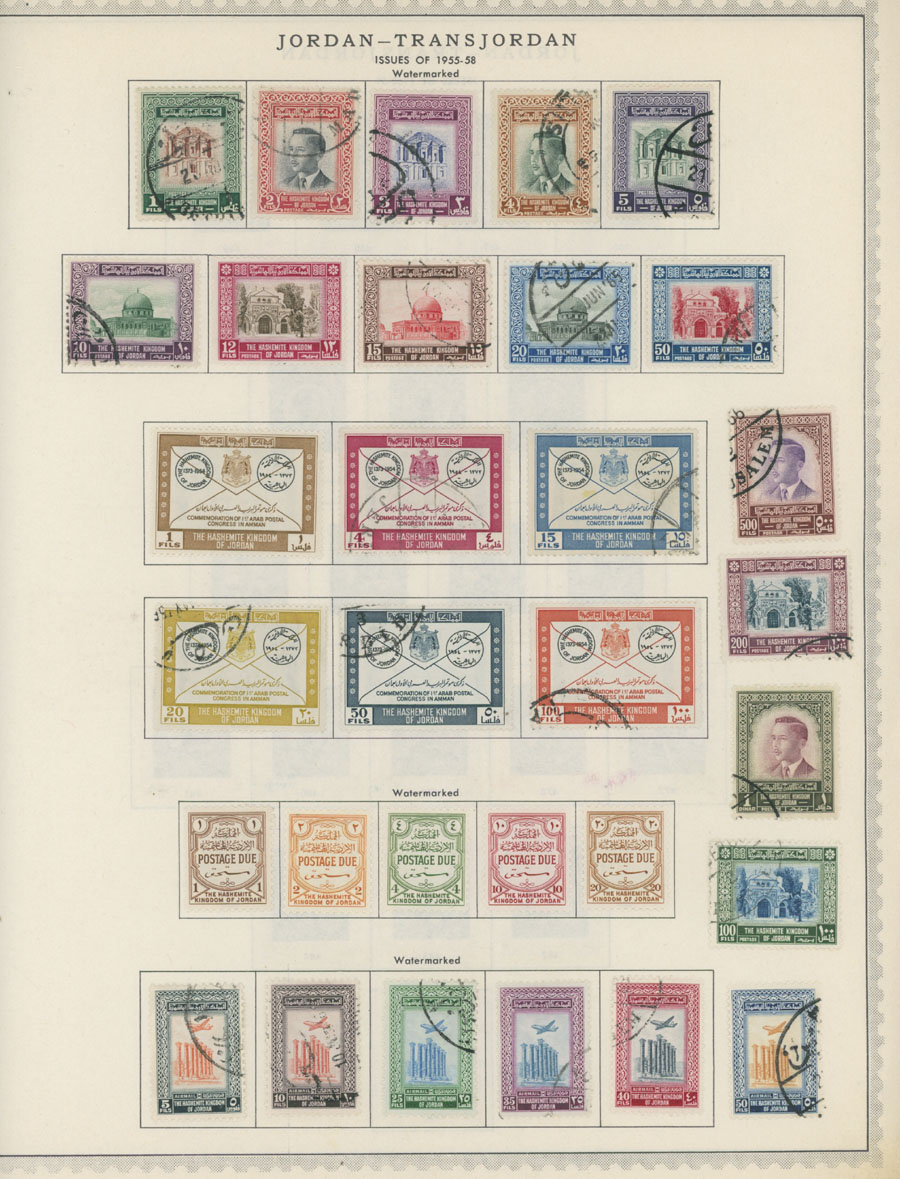 LARGE MIDDLE EAST COLLECTION ON ILLUSTRATED PAGES: 1865-2000, about 13,000 mint and used stamps and 180 souvenir sheets, representing issues of Aden and South Arabia (C.v. $550), Afghanistan (C.v. $900), Iran (C.v. $5,700), Iraq (C.v. $1,000), Palestine and Israel (C.v. $1,400), Jordan (C.v. $1,350), Pakistan (C.v. $1,000), Qatar (C.v. $3,000), Turkey (C.v. $4,000), United Arab Emirates with other Trucial States and Yemen (C.v. $1,000), many valuable items, occasional flaws possible, full/large part of OG or used (many CTO), F/VF, great lot for breaking up for individual country collections, total C.v. about $20,000, Est. $4,000-$5,000