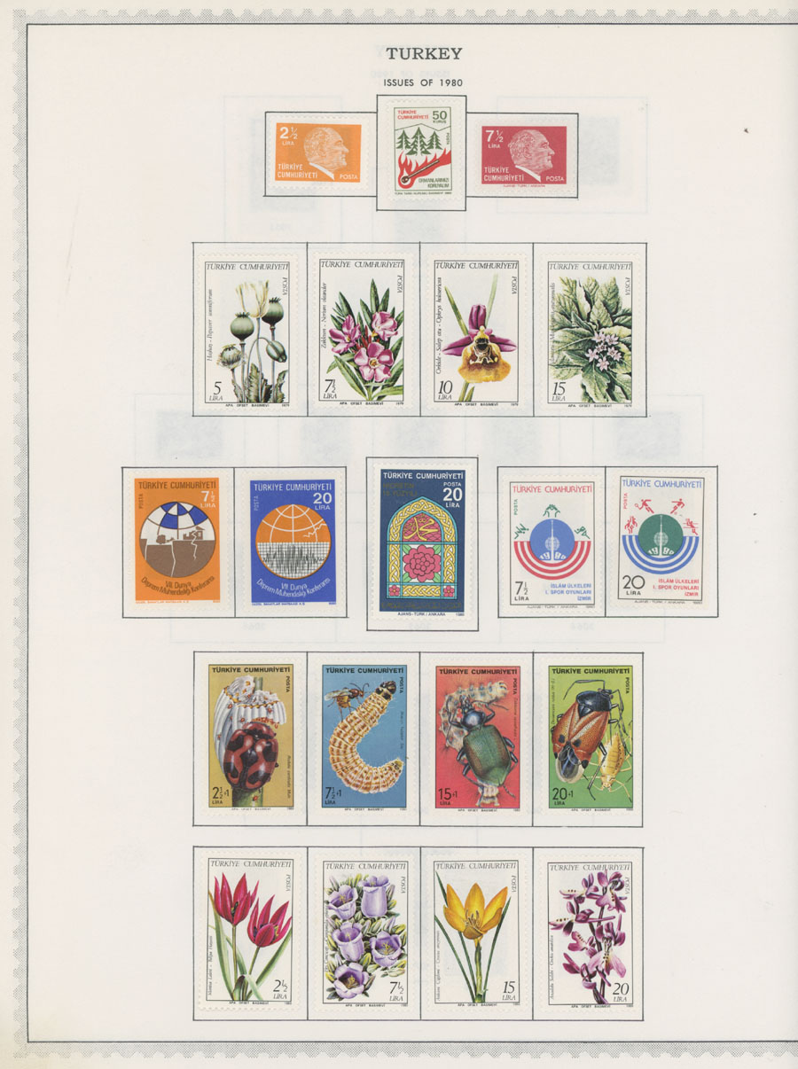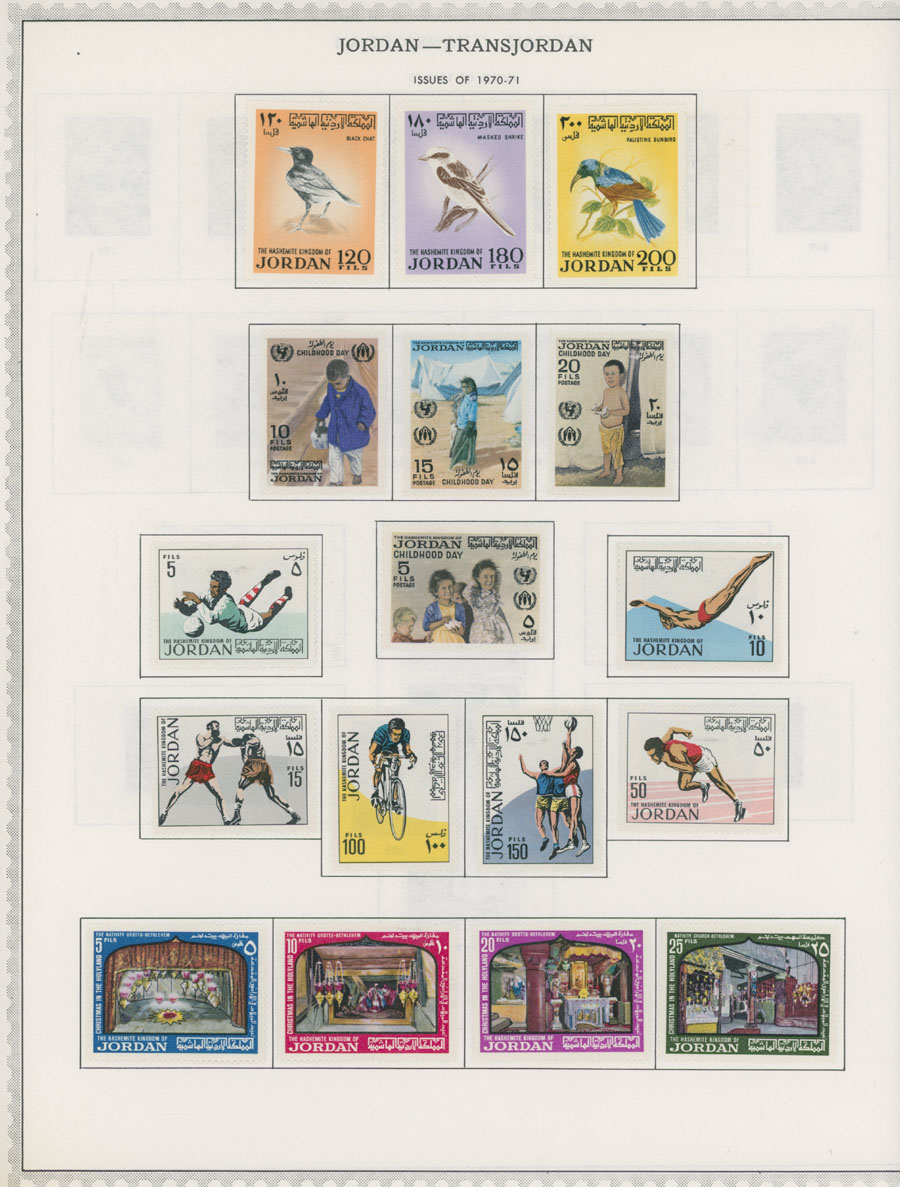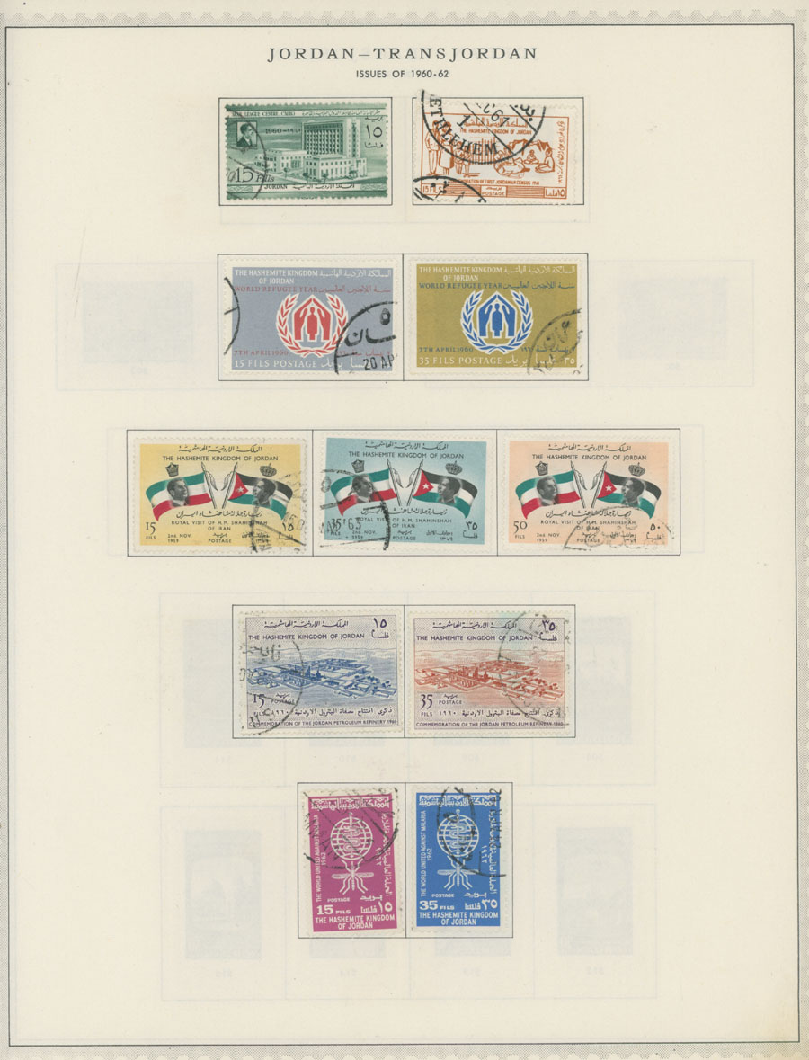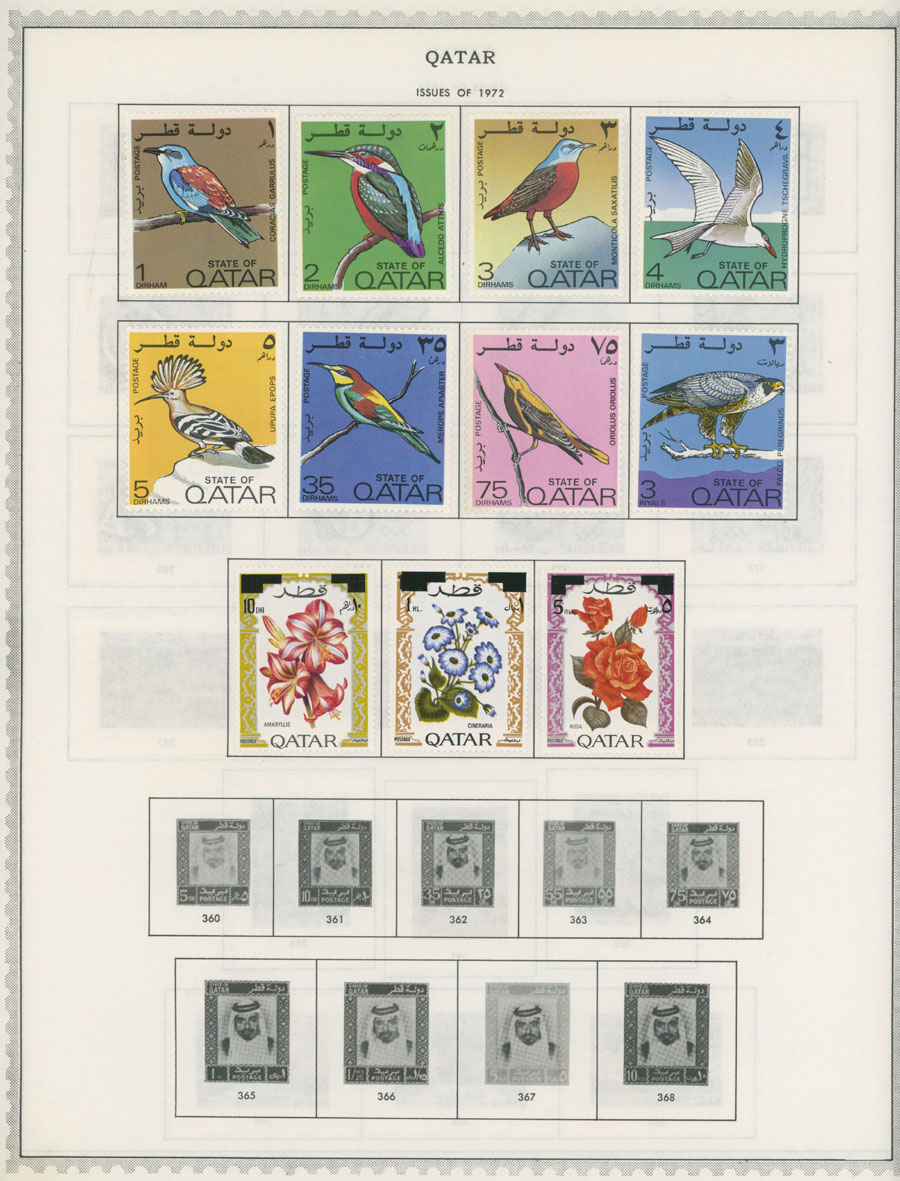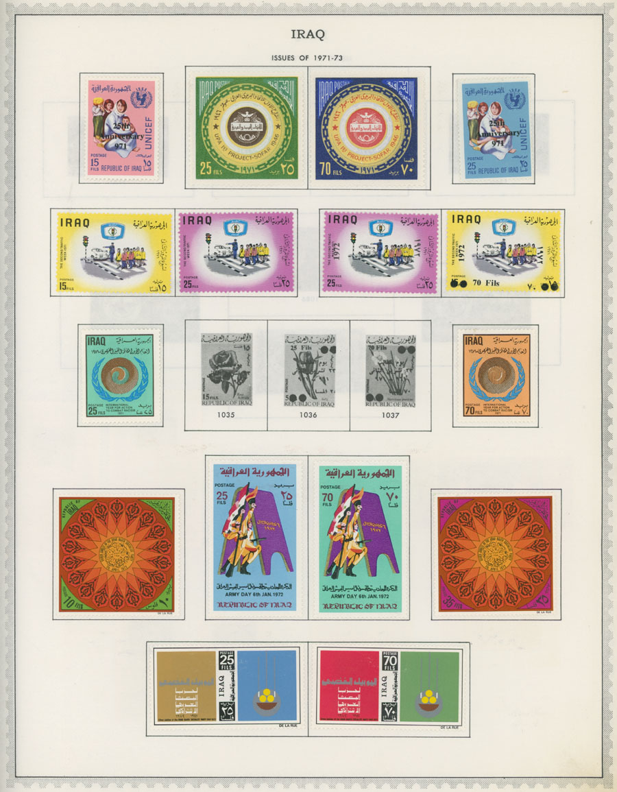 LARGE MIDDLE EAST COLLECTION ON ILLUSTRATED PAGES: 1865-2000, about 13,000 mint and used stamps and 180 souvenir sheets, representing issues of Aden and South Arabia (C.v. $550), Afghanistan (C.v. $900), Iran (C.v. $5,700), Iraq (C.v. $1,000), Palestine and Israel (C.v. $1,400), Jordan (C.v. $1,350), Pakistan (C.v. $1,000), Qatar (C.v. $3,000), Turkey (C.v. $4,000), United Arab Emirates with other Trucial States and Yemen (C.v. $1,000), many valuable items, occasional flaws possible, full/large part of OG or used (many CTO), F/VF, great lot for breaking up for individual country collections, total C.v. about $20,000, Est. $4,000-$5,000