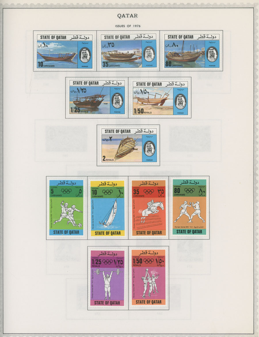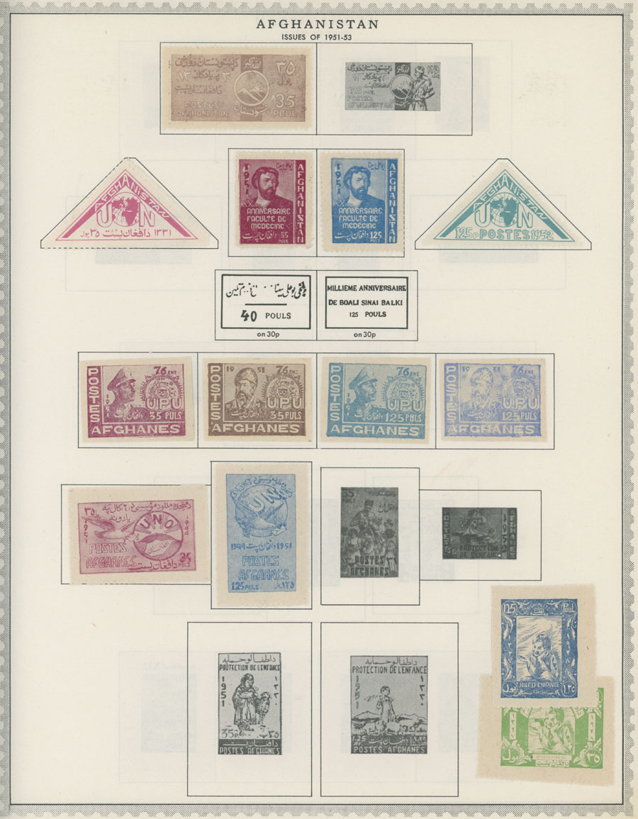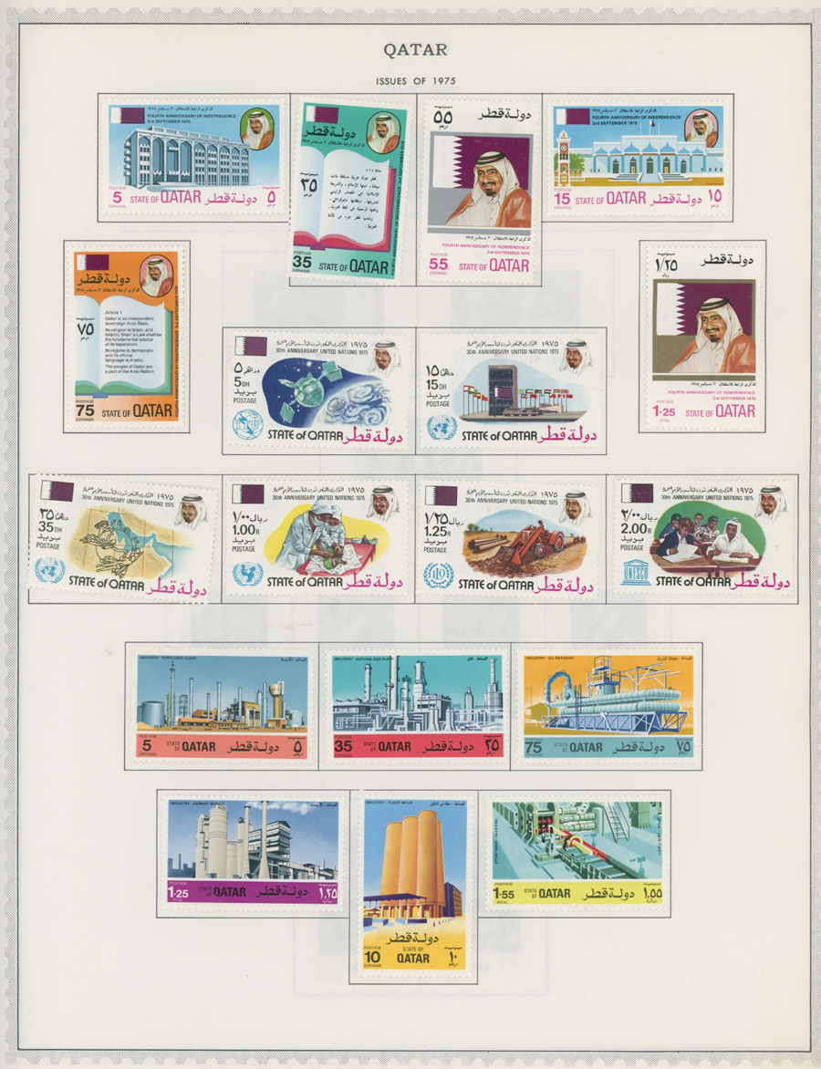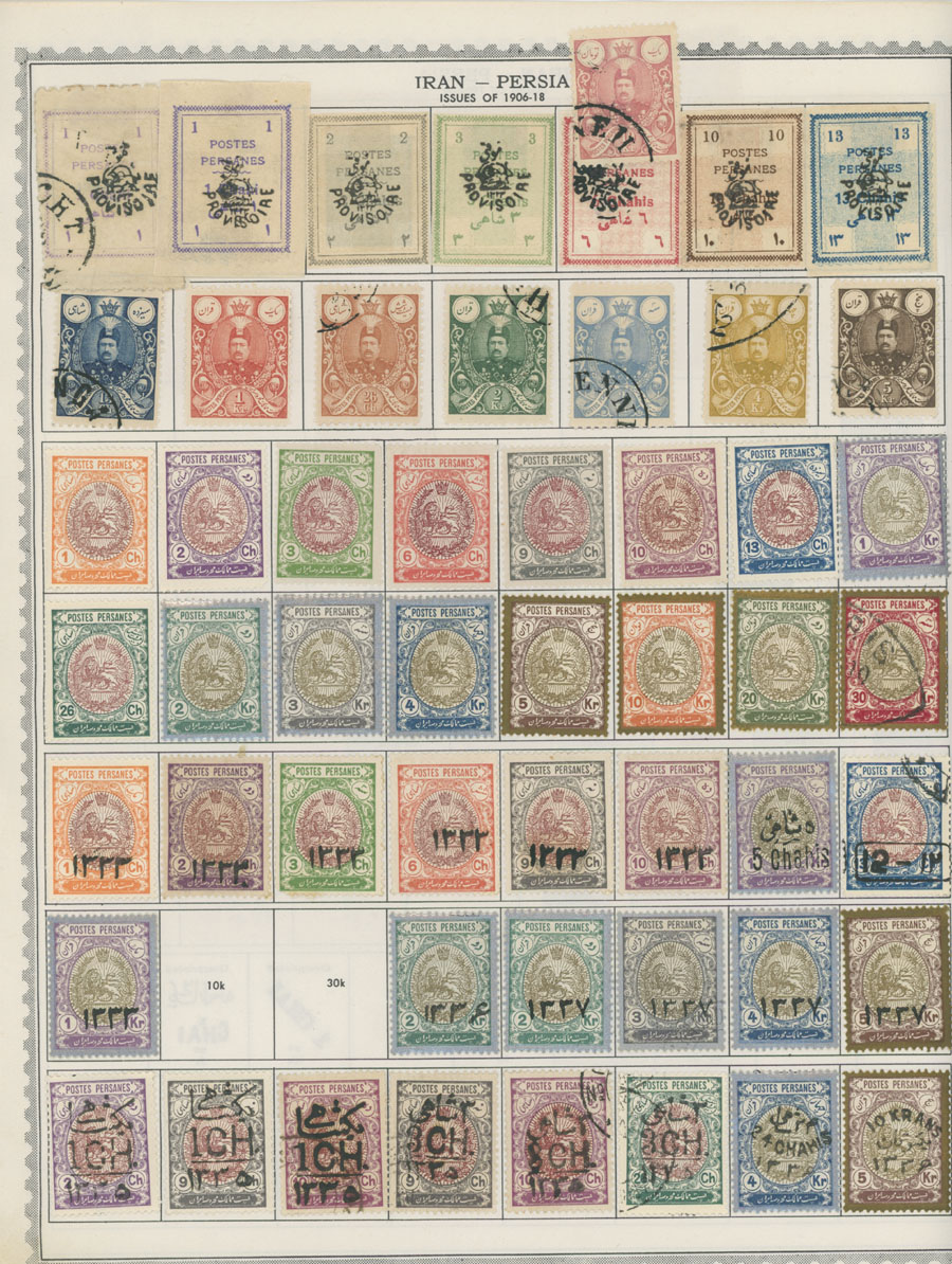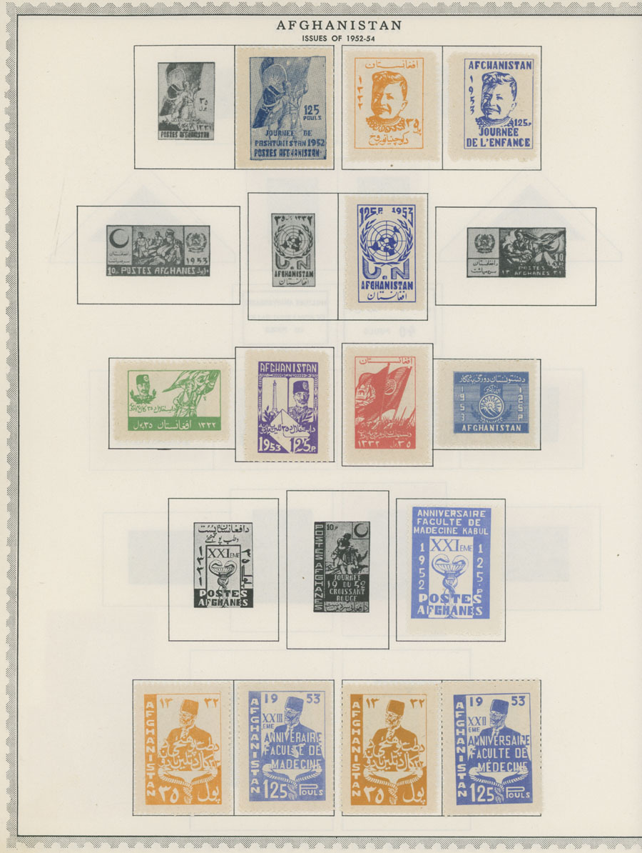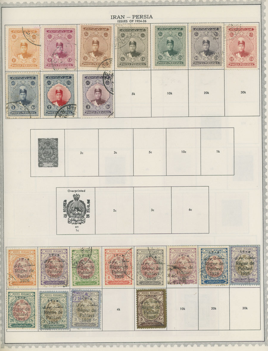 LARGE MIDDLE EAST COLLECTION ON ILLUSTRATED PAGES: 1865-2000, about 13,000 mint and used stamps and 180 souvenir sheets, representing issues of Aden and South Arabia (C.v. $550), Afghanistan (C.v. $900), Iran (C.v. $5,700), Iraq (C.v. $1,000), Palestine and Israel (C.v. $1,400), Jordan (C.v. $1,350), Pakistan (C.v. $1,000), Qatar (C.v. $3,000), Turkey (C.v. $4,000), United Arab Emirates with other Trucial States and Yemen (C.v. $1,000), many valuable items, occasional flaws possible, full/large part of OG or used (many CTO), F/VF, great lot for breaking up for individual country collections, total C.v. about $20,000, Est. $4,000-$5,000