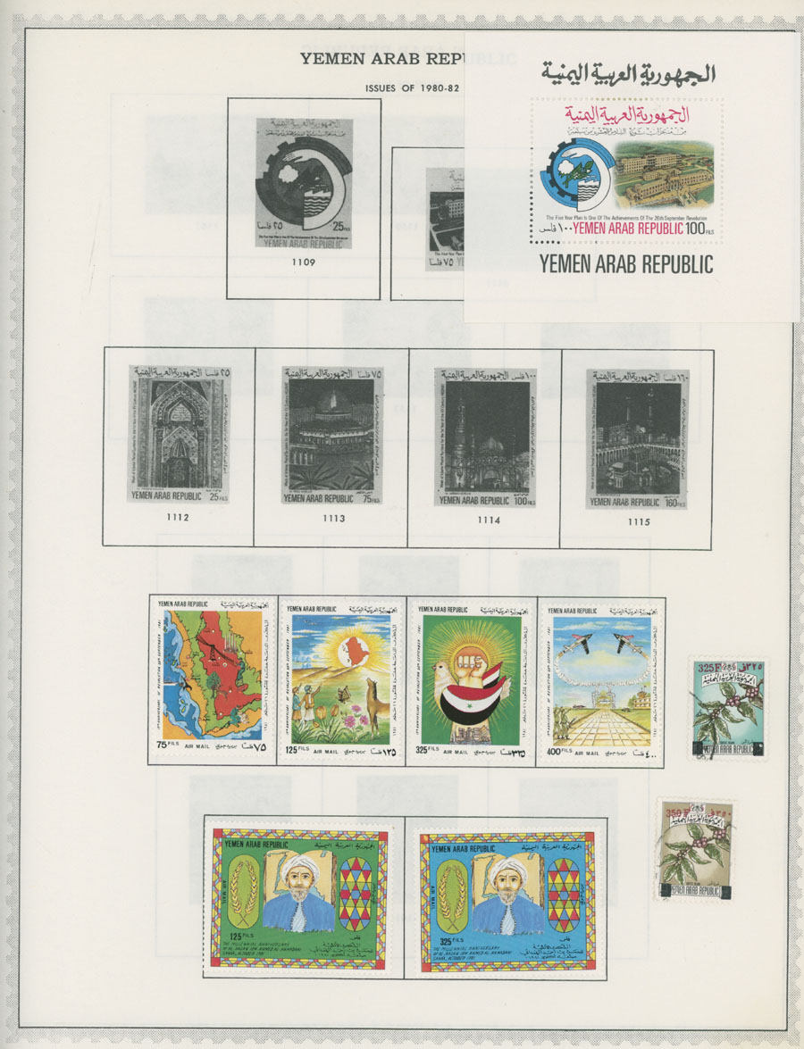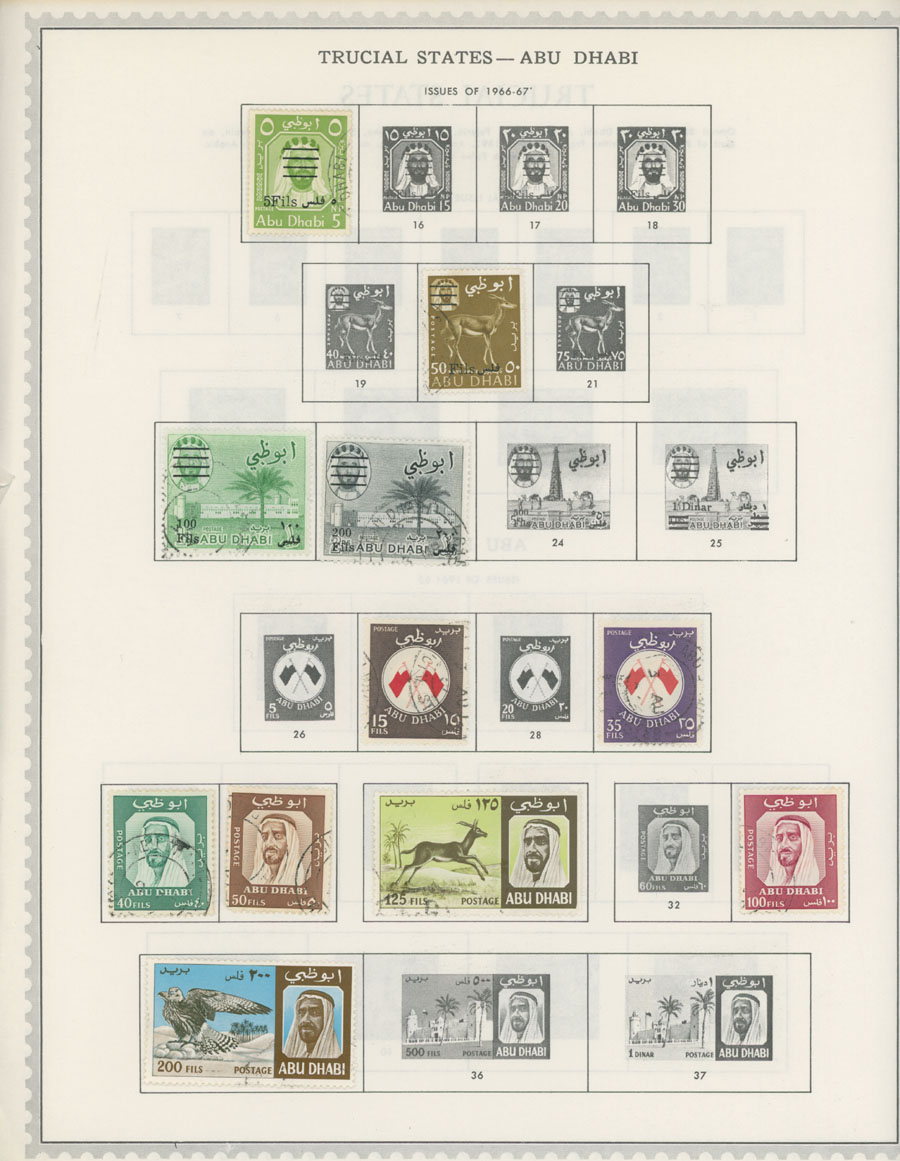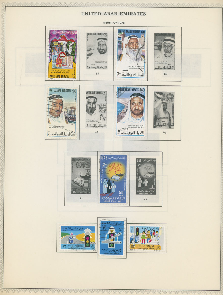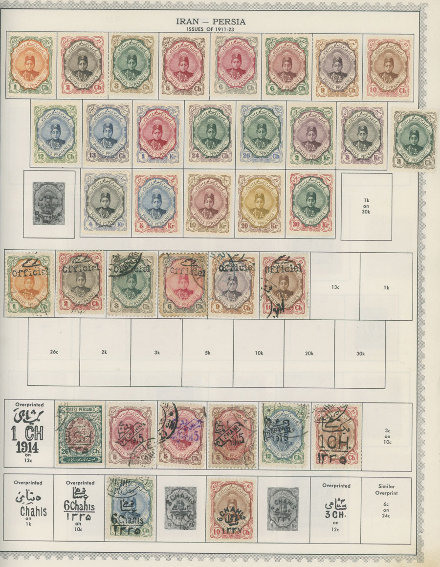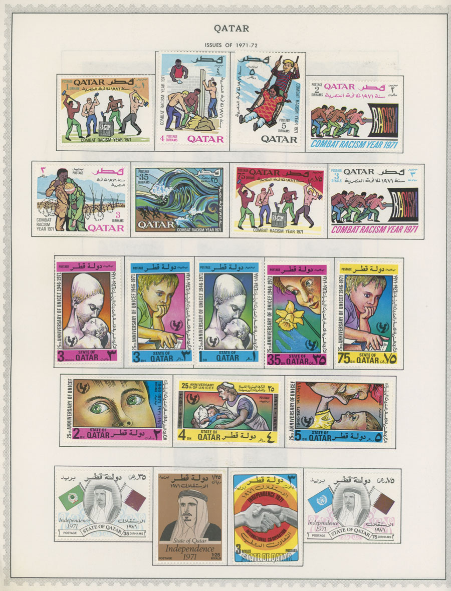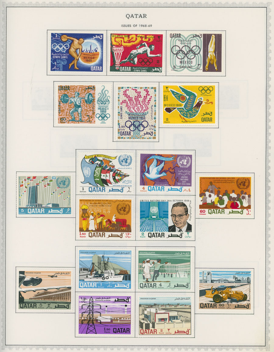 LARGE MIDDLE EAST COLLECTION ON ILLUSTRATED PAGES: 1865-2000, about 13,000 mint and used stamps and 180 souvenir sheets, representing issues of Aden and South Arabia (C.v. $550), Afghanistan (C.v. $900), Iran (C.v. $5,700), Iraq (C.v. $1,000), Palestine and Israel (C.v. $1,400), Jordan (C.v. $1,350), Pakistan (C.v. $1,000), Qatar (C.v. $3,000), Turkey (C.v. $4,000), United Arab Emirates with other Trucial States and Yemen (C.v. $1,000), many valuable items, occasional flaws possible, full/large part of OG or used (many CTO), F/VF, great lot for breaking up for individual country collections, total C.v. about $20,000, Est. $4,000-$5,000