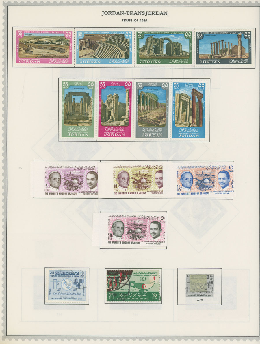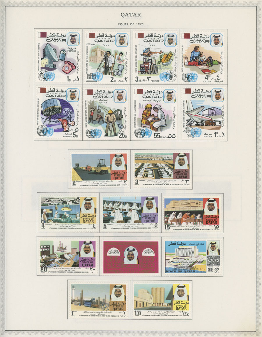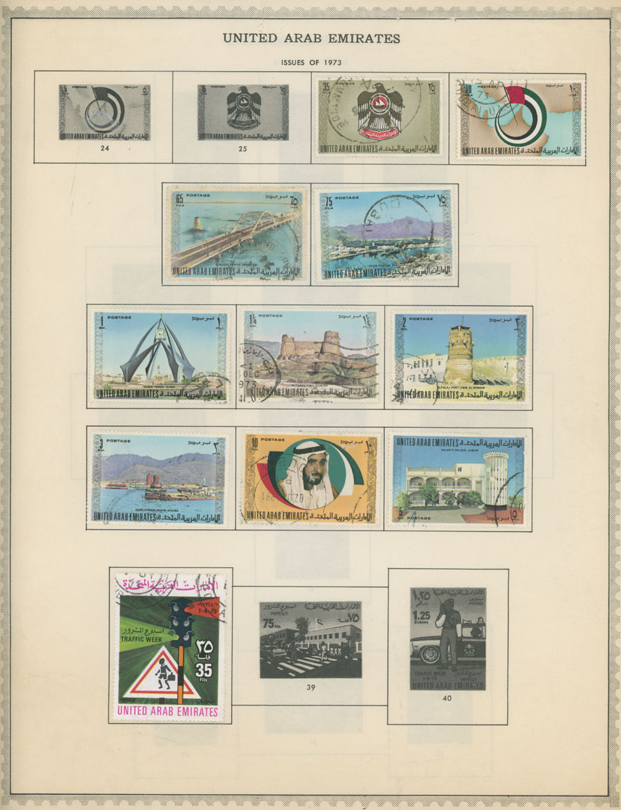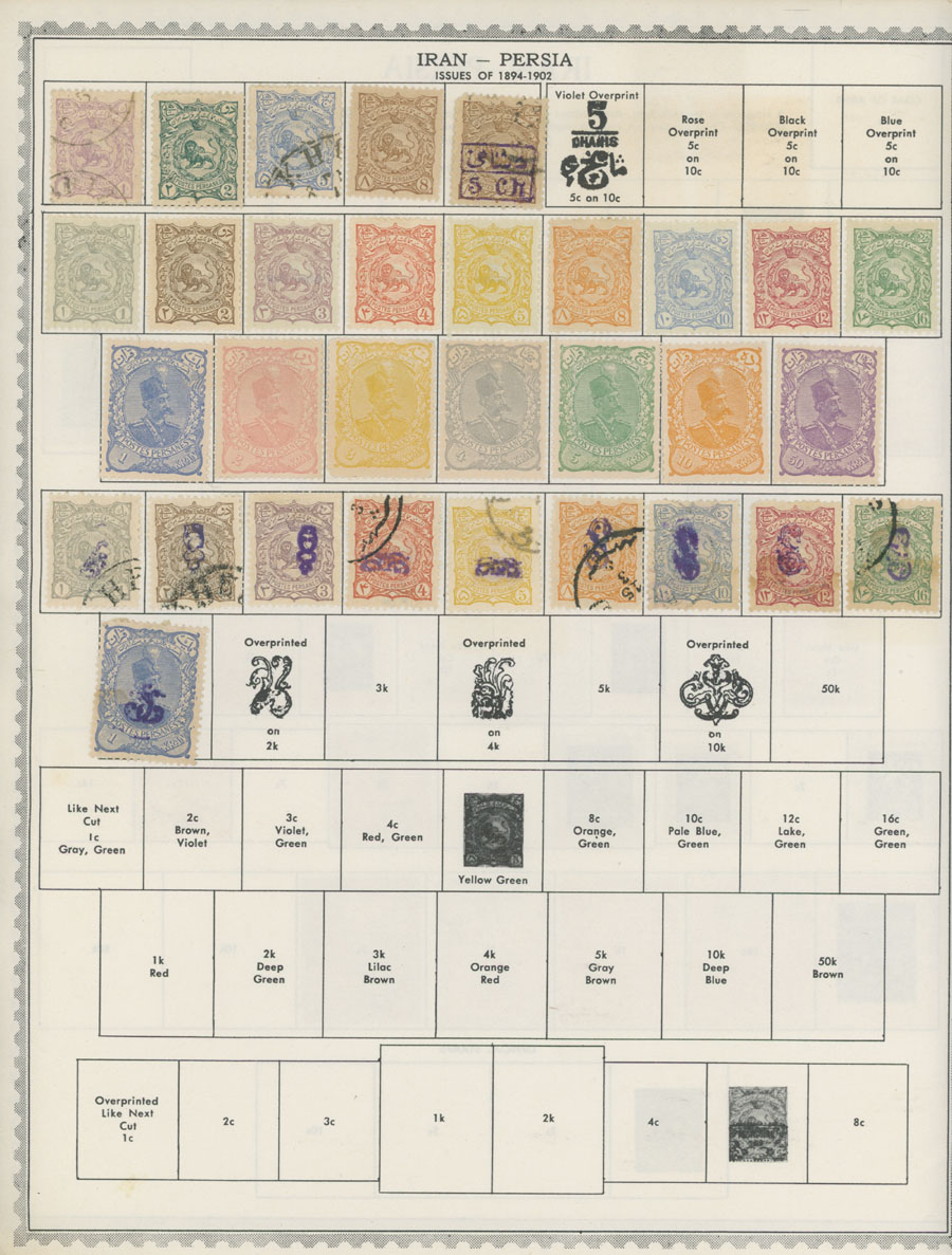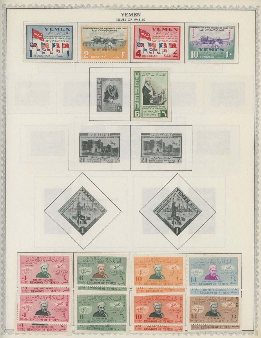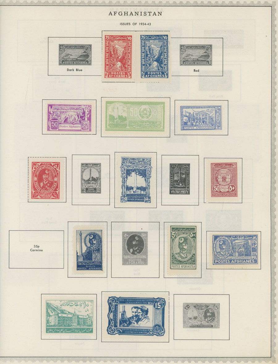 LARGE MIDDLE EAST COLLECTION ON ILLUSTRATED PAGES: 1865-2000, about 13,000 mint and used stamps and 180 souvenir sheets, representing issues of Aden and South Arabia (C.v. $550), Afghanistan (C.v. $900), Iran (C.v. $5,700), Iraq (C.v. $1,000), Palestine and Israel (C.v. $1,400), Jordan (C.v. $1,350), Pakistan (C.v. $1,000), Qatar (C.v. $3,000), Turkey (C.v. $4,000), United Arab Emirates with other Trucial States and Yemen (C.v. $1,000), many valuable items, occasional flaws possible, full/large part of OG or used (many CTO), F/VF, great lot for breaking up for individual country collections, total C.v. about $20,000, Est. $4,000-$5,000