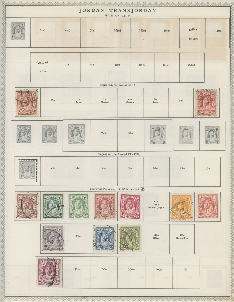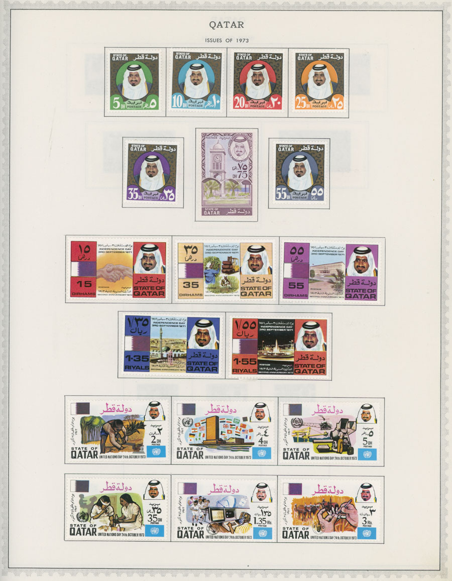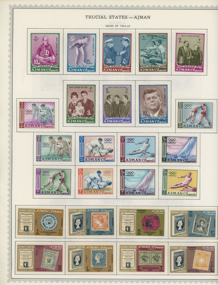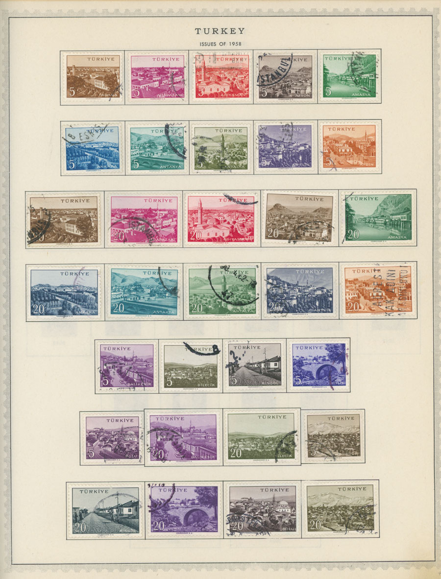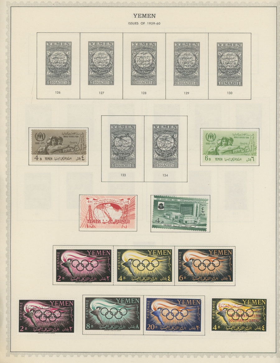 LARGE MIDDLE EAST COLLECTION ON ILLUSTRATED PAGES: 1865-2000, about 13,000 mint and used stamps and 180 souvenir sheets, representing issues of Aden and South Arabia (C.v. $550), Afghanistan (C.v. $900), Iran (C.v. $5,700), Iraq (C.v. $1,000), Palestine and Israel (C.v. $1,400), Jordan (C.v. $1,350), Pakistan (C.v. $1,000), Qatar (C.v. $3,000), Turkey (C.v. $4,000), United Arab Emirates with other Trucial States and Yemen (C.v. $1,000), many valuable items, occasional flaws possible, full/large part of OG or used (many CTO), F/VF, great lot for breaking up for individual country collections, total C.v. about $20,000, Est. $4,000-$5,000