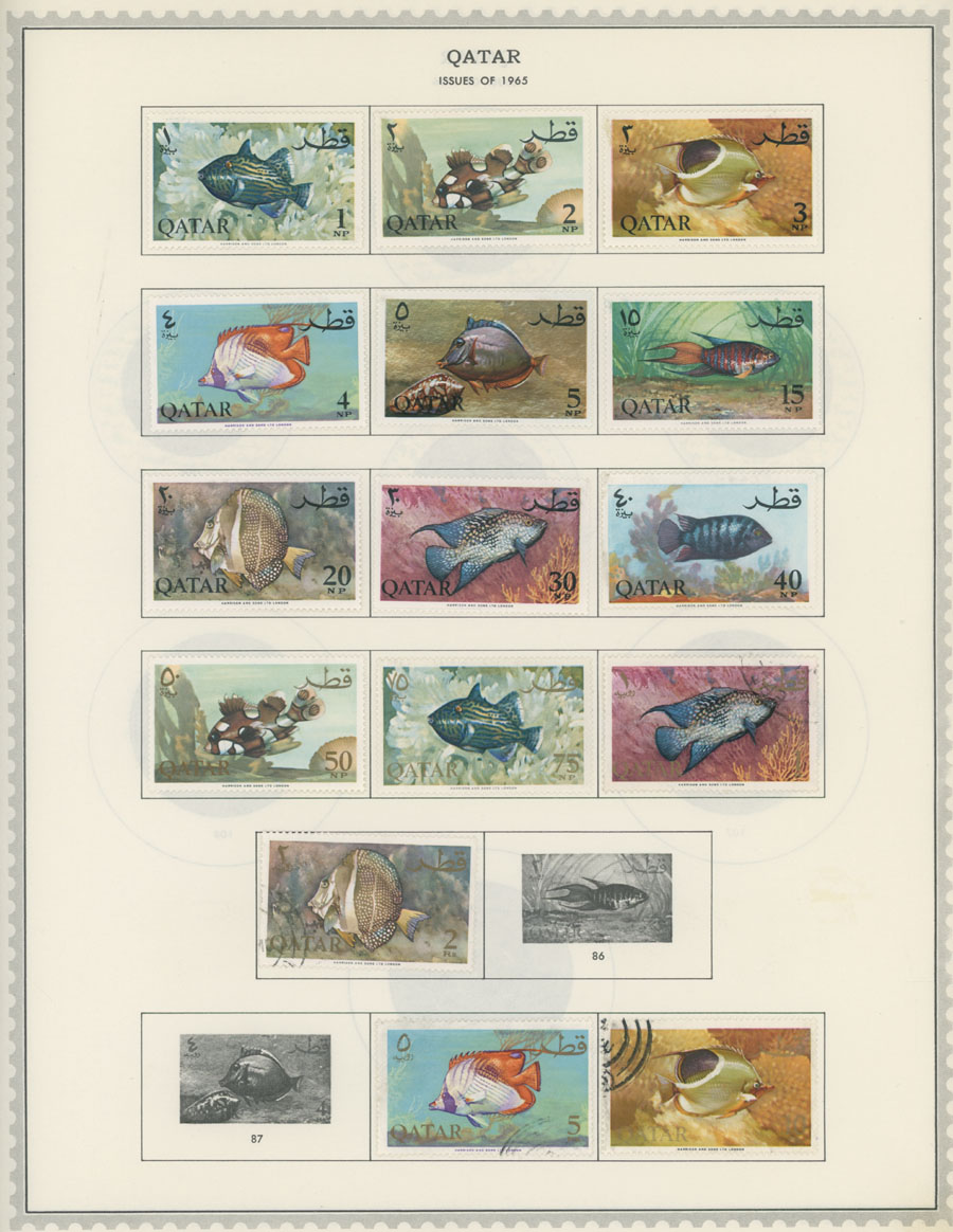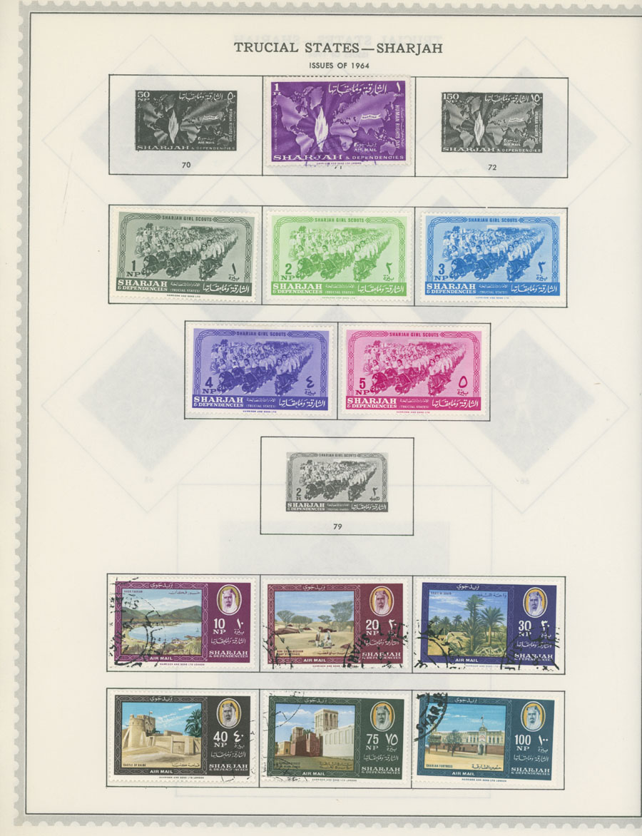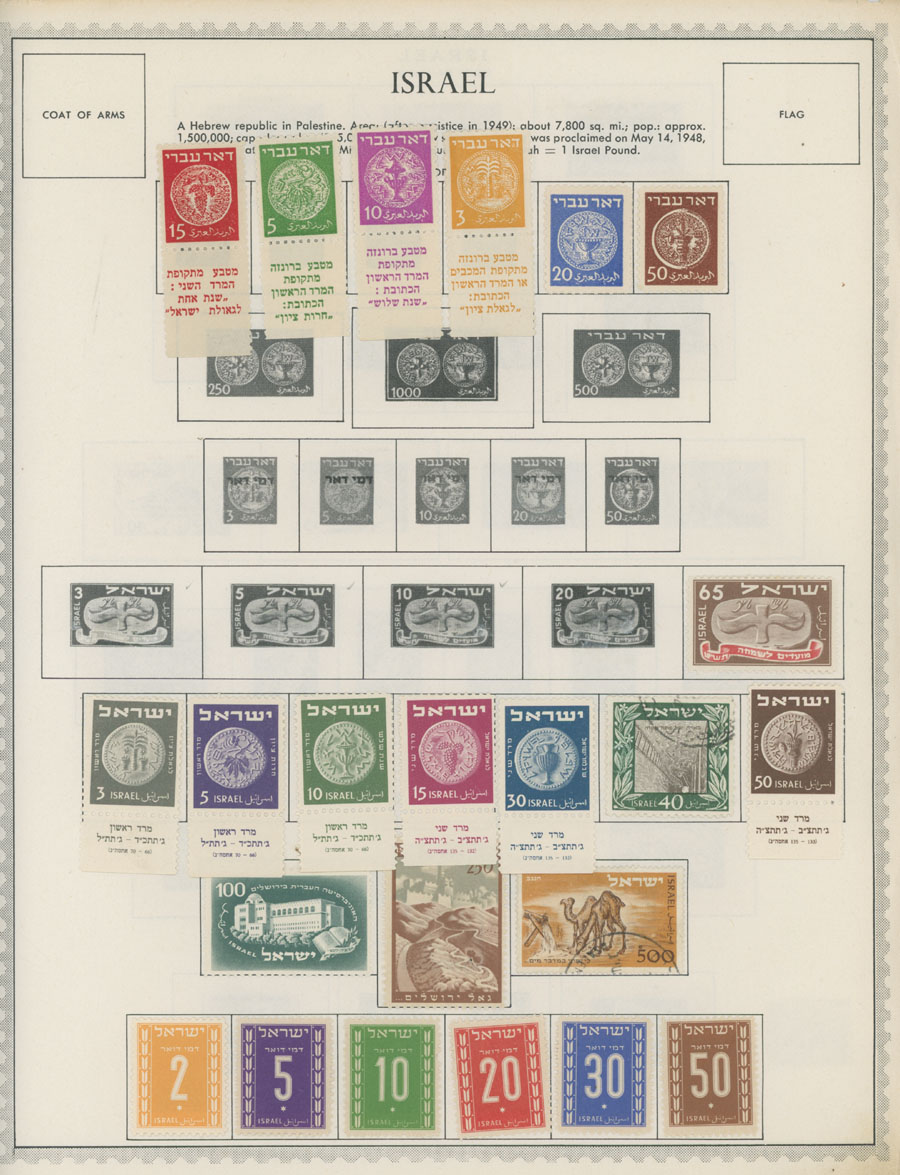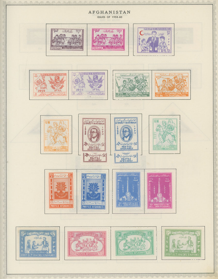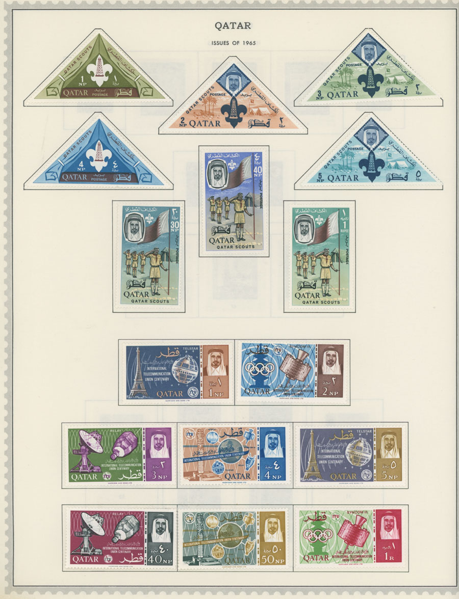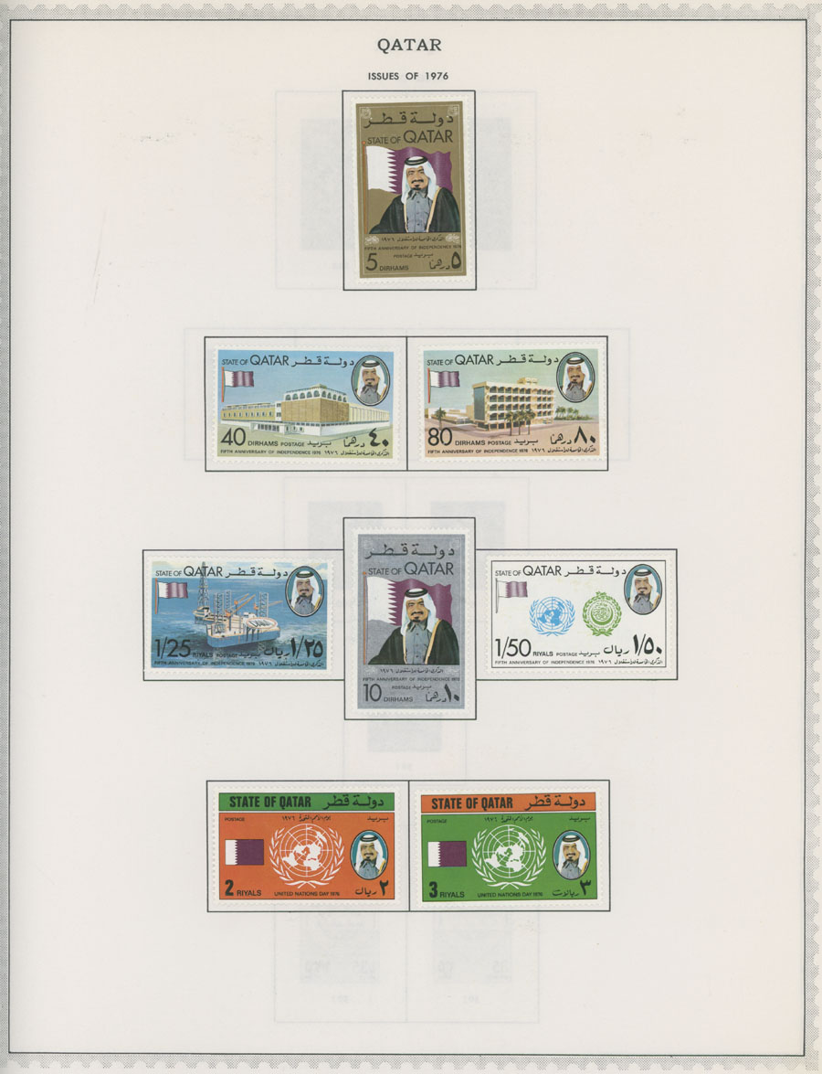 LARGE MIDDLE EAST COLLECTION ON ILLUSTRATED PAGES: 1865-2000, about 13,000 mint and used stamps and 180 souvenir sheets, representing issues of Aden and South Arabia (C.v. $550), Afghanistan (C.v. $900), Iran (C.v. $5,700), Iraq (C.v. $1,000), Palestine and Israel (C.v. $1,400), Jordan (C.v. $1,350), Pakistan (C.v. $1,000), Qatar (C.v. $3,000), Turkey (C.v. $4,000), United Arab Emirates with other Trucial States and Yemen (C.v. $1,000), many valuable items, occasional flaws possible, full/large part of OG or used (many CTO), F/VF, great lot for breaking up for individual country collections, total C.v. about $20,000, Est. $4,000-$5,000