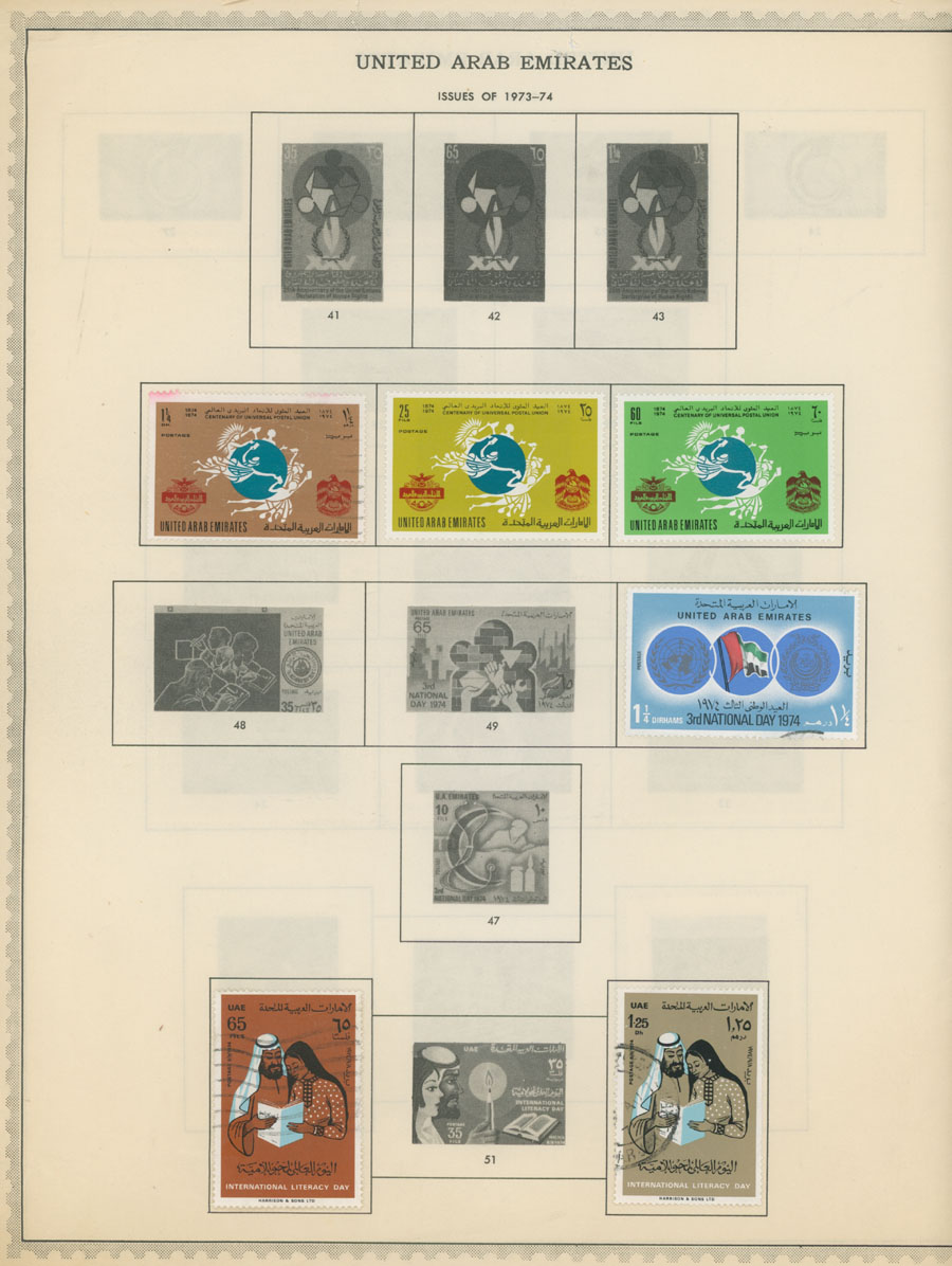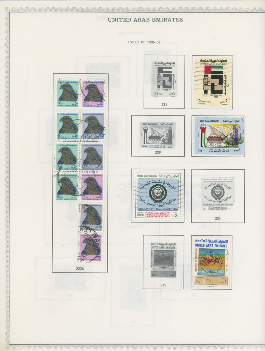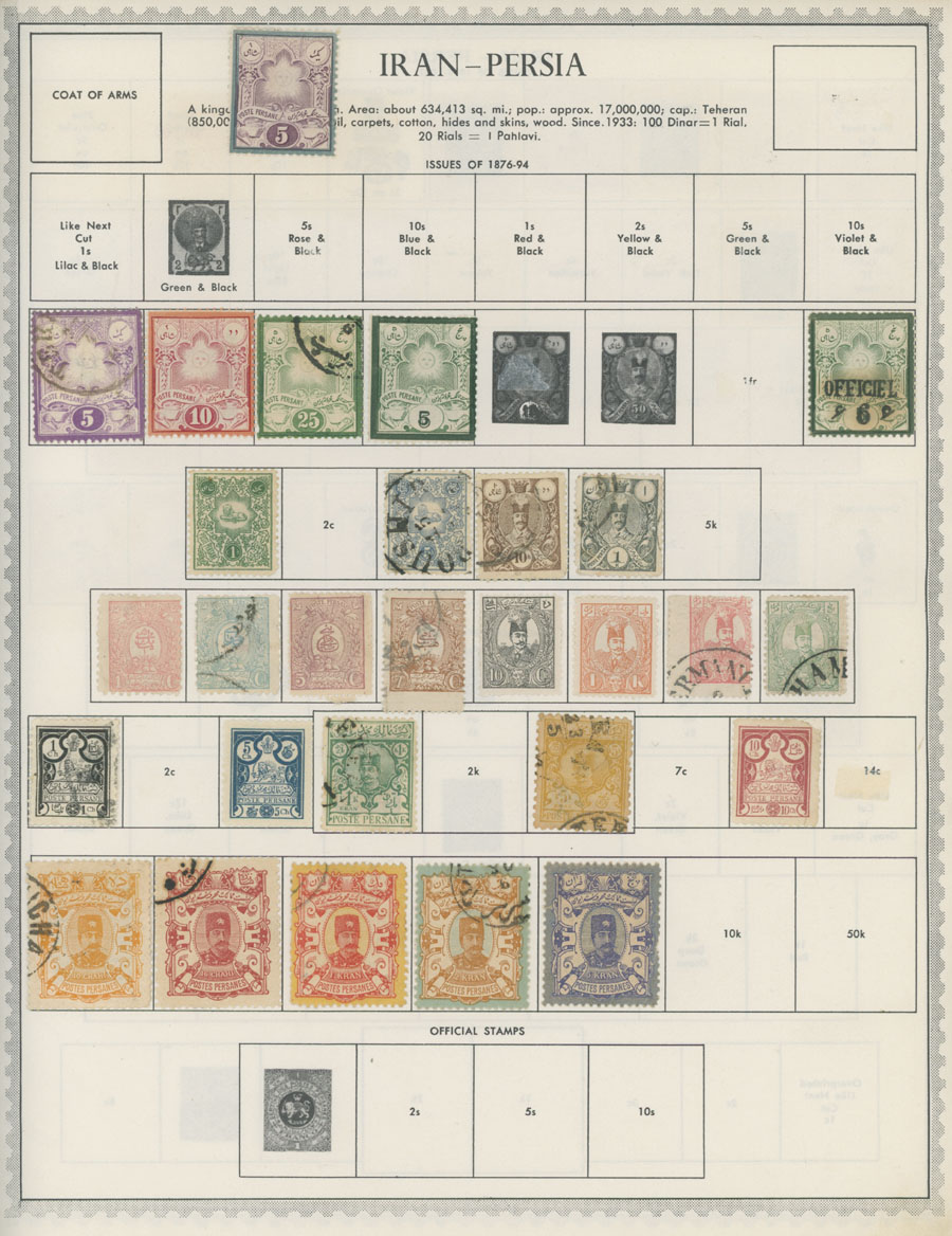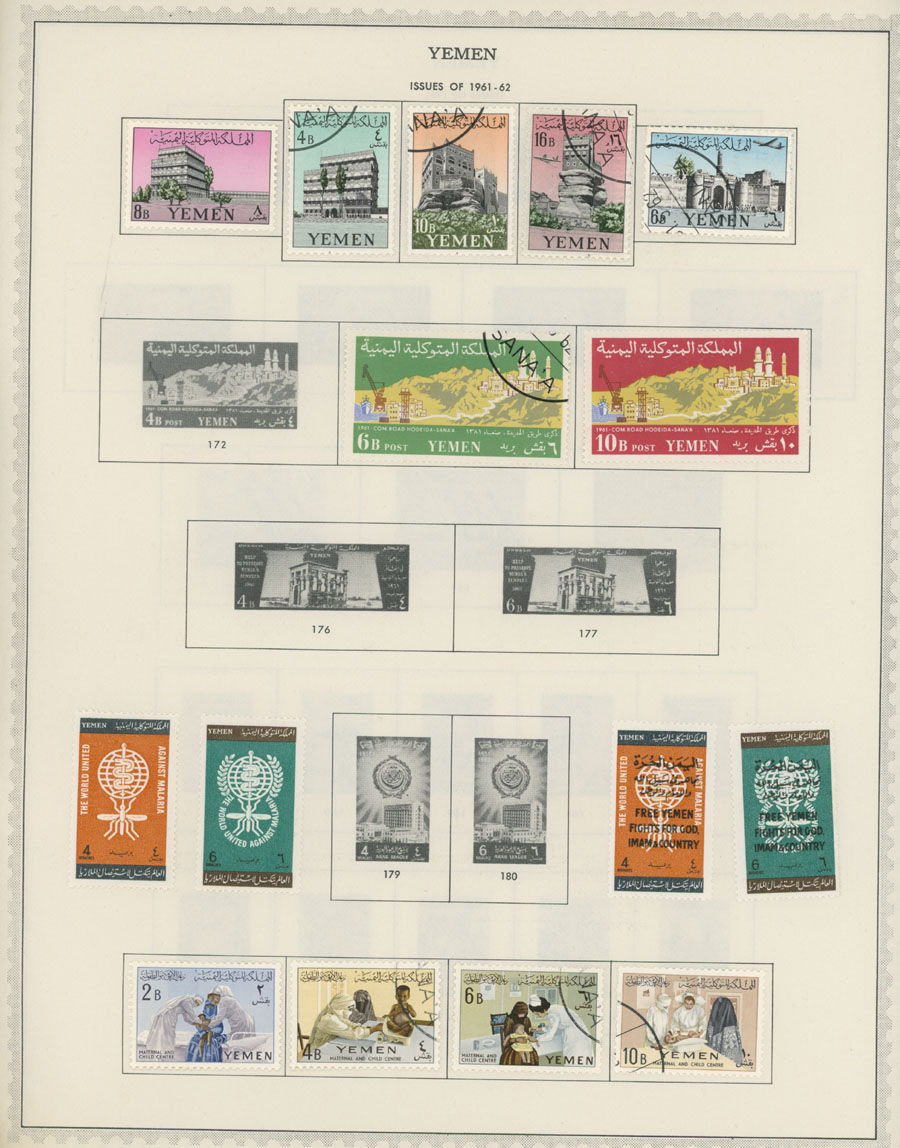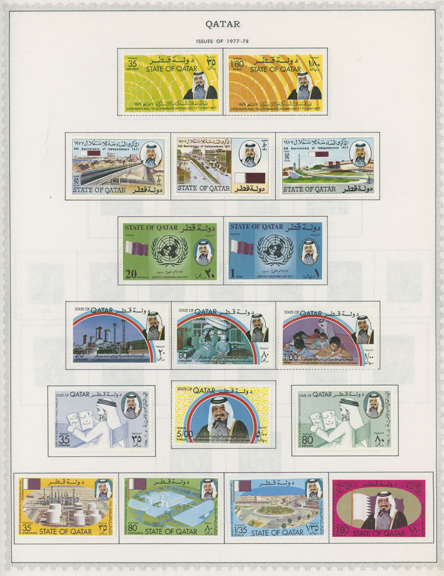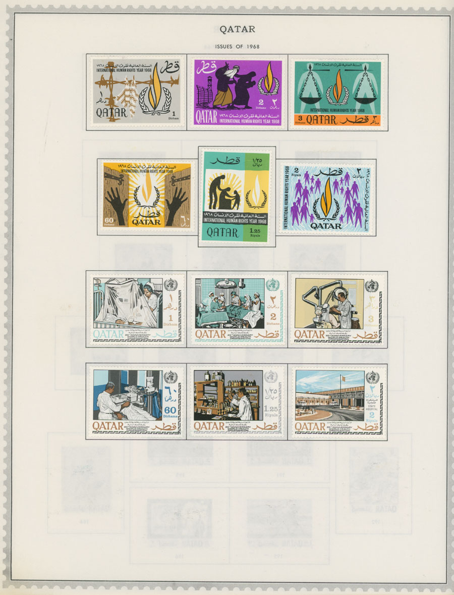 LARGE MIDDLE EAST COLLECTION ON ILLUSTRATED PAGES: 1865-2000, about 13,000 mint and used stamps and 180 souvenir sheets, representing issues of Aden and South Arabia (C.v. $550), Afghanistan (C.v. $900), Iran (C.v. $5,700), Iraq (C.v. $1,000), Palestine and Israel (C.v. $1,400), Jordan (C.v. $1,350), Pakistan (C.v. $1,000), Qatar (C.v. $3,000), Turkey (C.v. $4,000), United Arab Emirates with other Trucial States and Yemen (C.v. $1,000), many valuable items, occasional flaws possible, full/large part of OG or used (many CTO), F/VF, great lot for breaking up for individual country collections, total C.v. about $20,000, Est. $4,000-$5,000