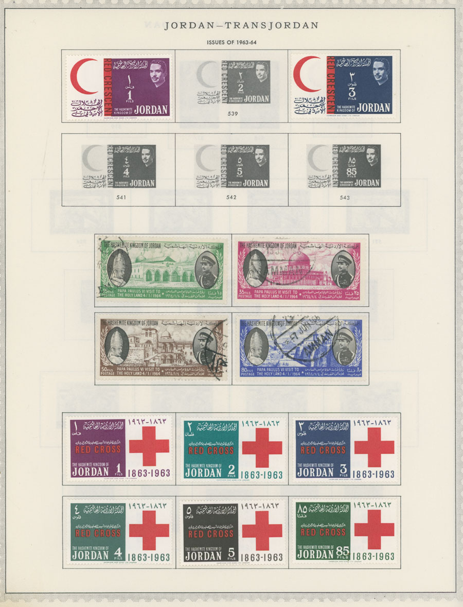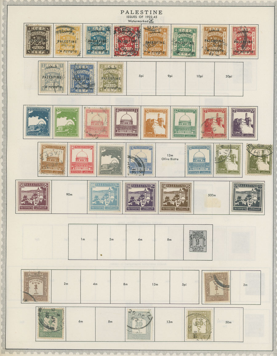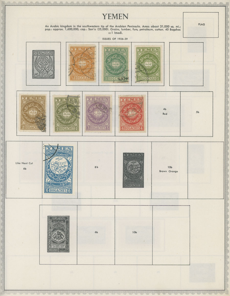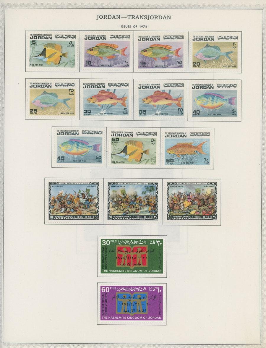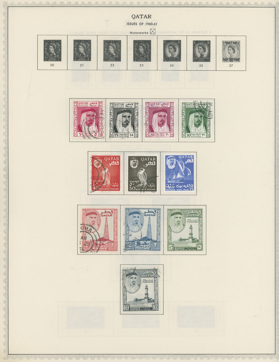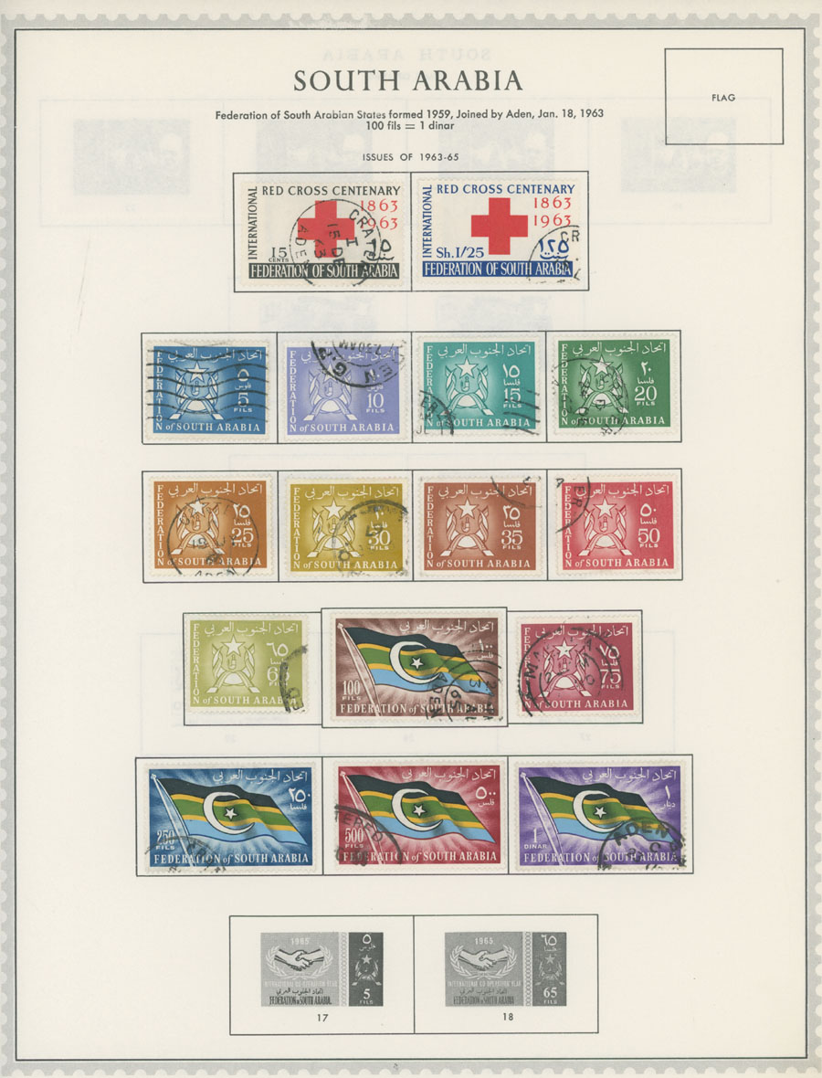 LARGE MIDDLE EAST COLLECTION ON ILLUSTRATED PAGES: 1865-2000, about 13,000 mint and used stamps and 180 souvenir sheets, representing issues of Aden and South Arabia (C.v. $550), Afghanistan (C.v. $900), Iran (C.v. $5,700), Iraq (C.v. $1,000), Palestine and Israel (C.v. $1,400), Jordan (C.v. $1,350), Pakistan (C.v. $1,000), Qatar (C.v. $3,000), Turkey (C.v. $4,000), United Arab Emirates with other Trucial States and Yemen (C.v. $1,000), many valuable items, occasional flaws possible, full/large part of OG or used (many CTO), F/VF, great lot for breaking up for individual country collections, total C.v. about $20,000, Est. $4,000-$5,000