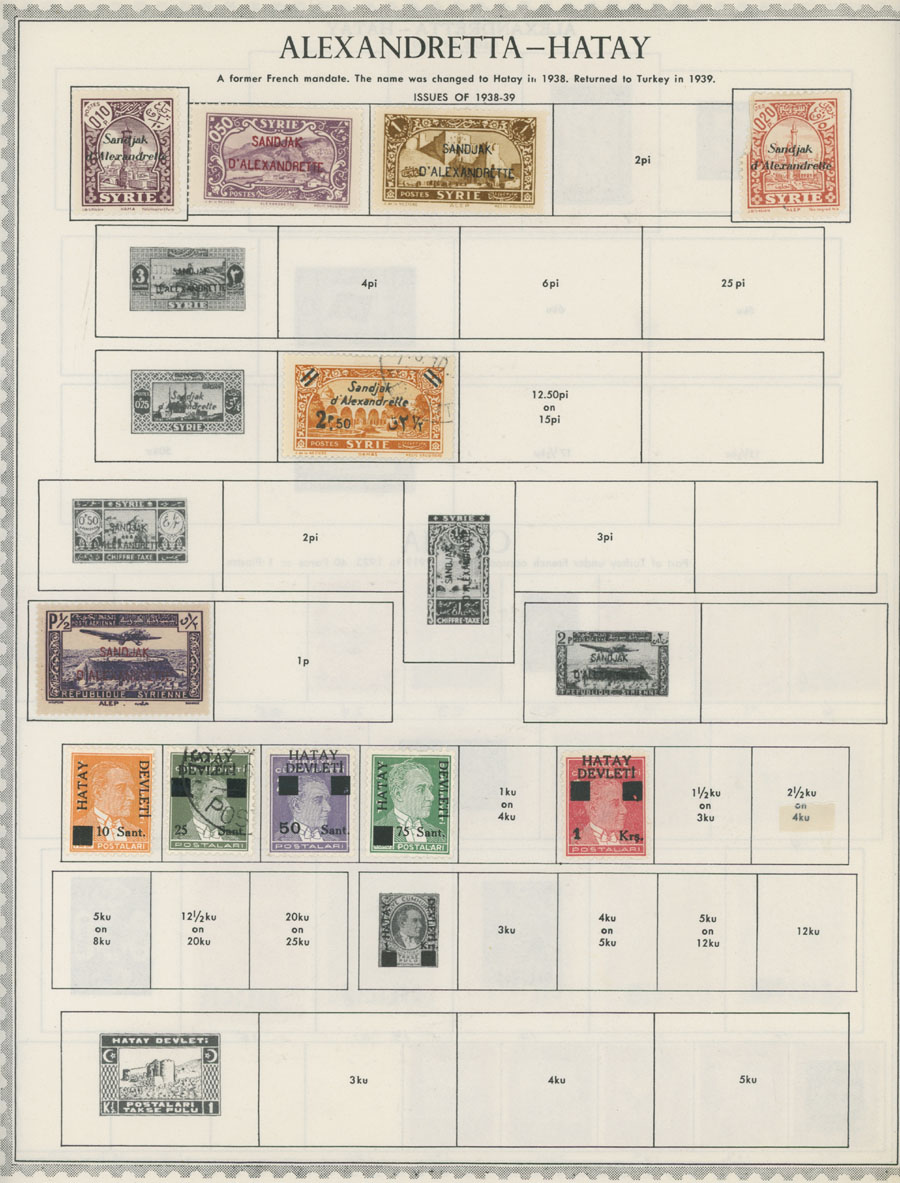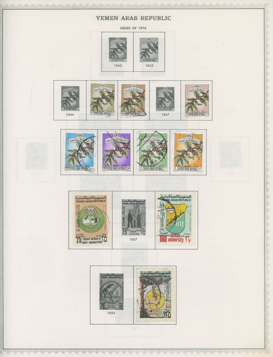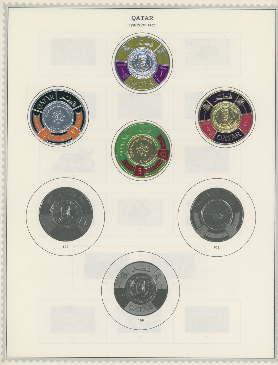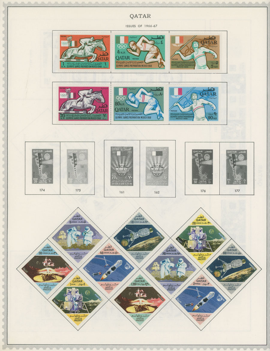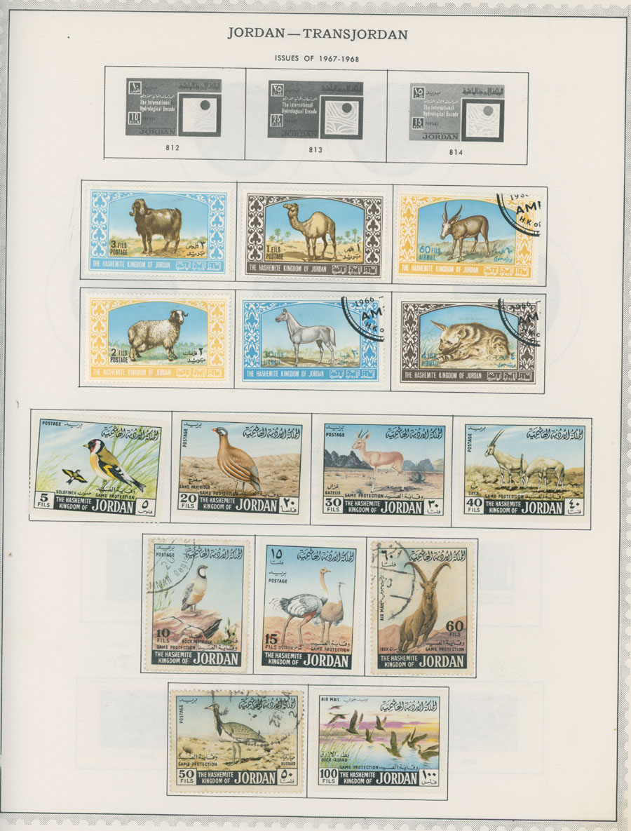 LARGE MIDDLE EAST COLLECTION ON ILLUSTRATED PAGES: 1865-2000, about 13,000 mint and used stamps and 180 souvenir sheets, representing issues of Aden and South Arabia (C.v. $550), Afghanistan (C.v. $900), Iran (C.v. $5,700), Iraq (C.v. $1,000), Palestine and Israel (C.v. $1,400), Jordan (C.v. $1,350), Pakistan (C.v. $1,000), Qatar (C.v. $3,000), Turkey (C.v. $4,000), United Arab Emirates with other Trucial States and Yemen (C.v. $1,000), many valuable items, occasional flaws possible, full/large part of OG or used (many CTO), F/VF, great lot for breaking up for individual country collections, total C.v. about $20,000, Est. $4,000-$5,000
