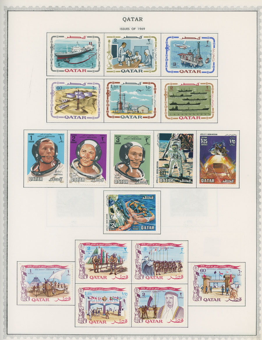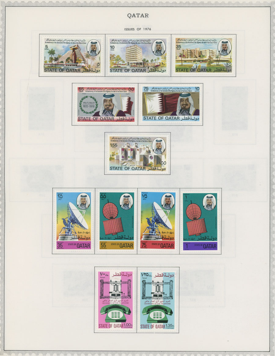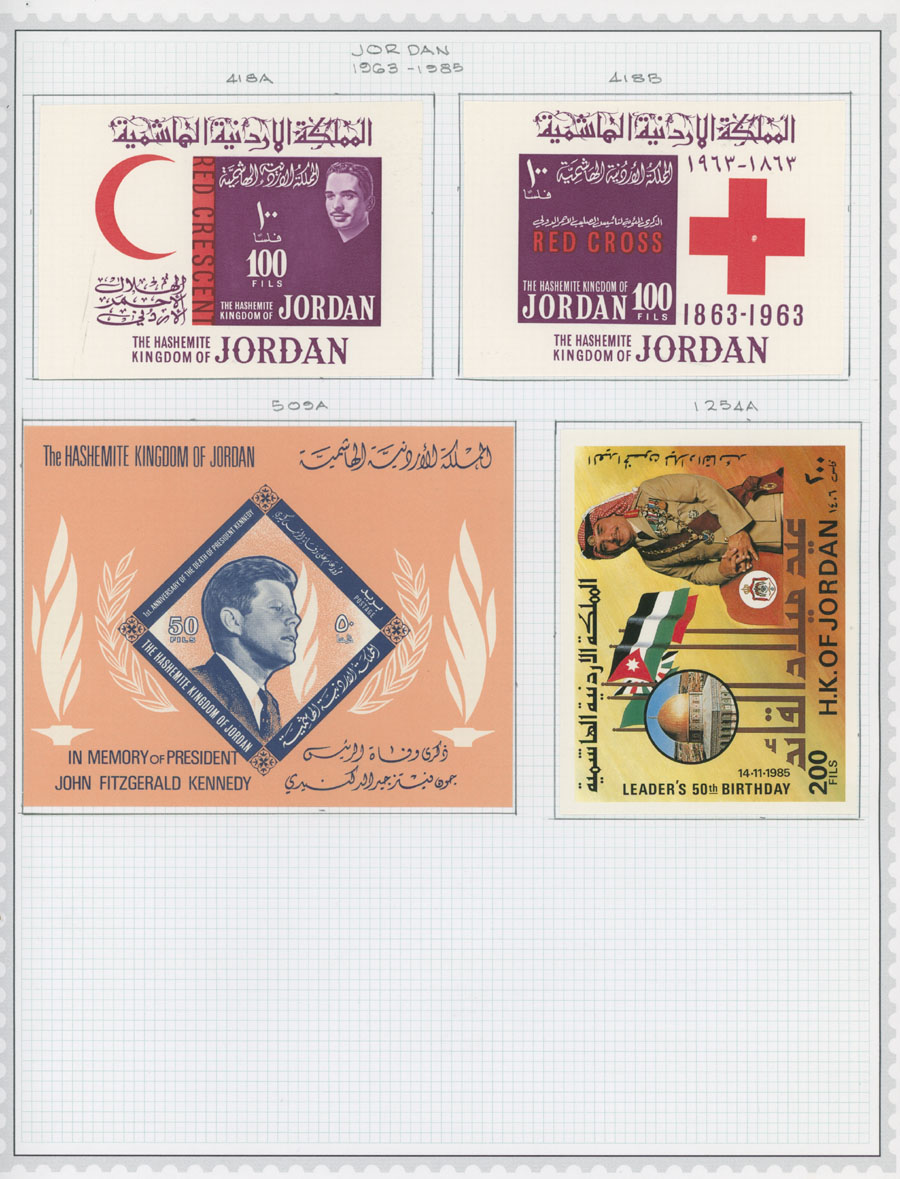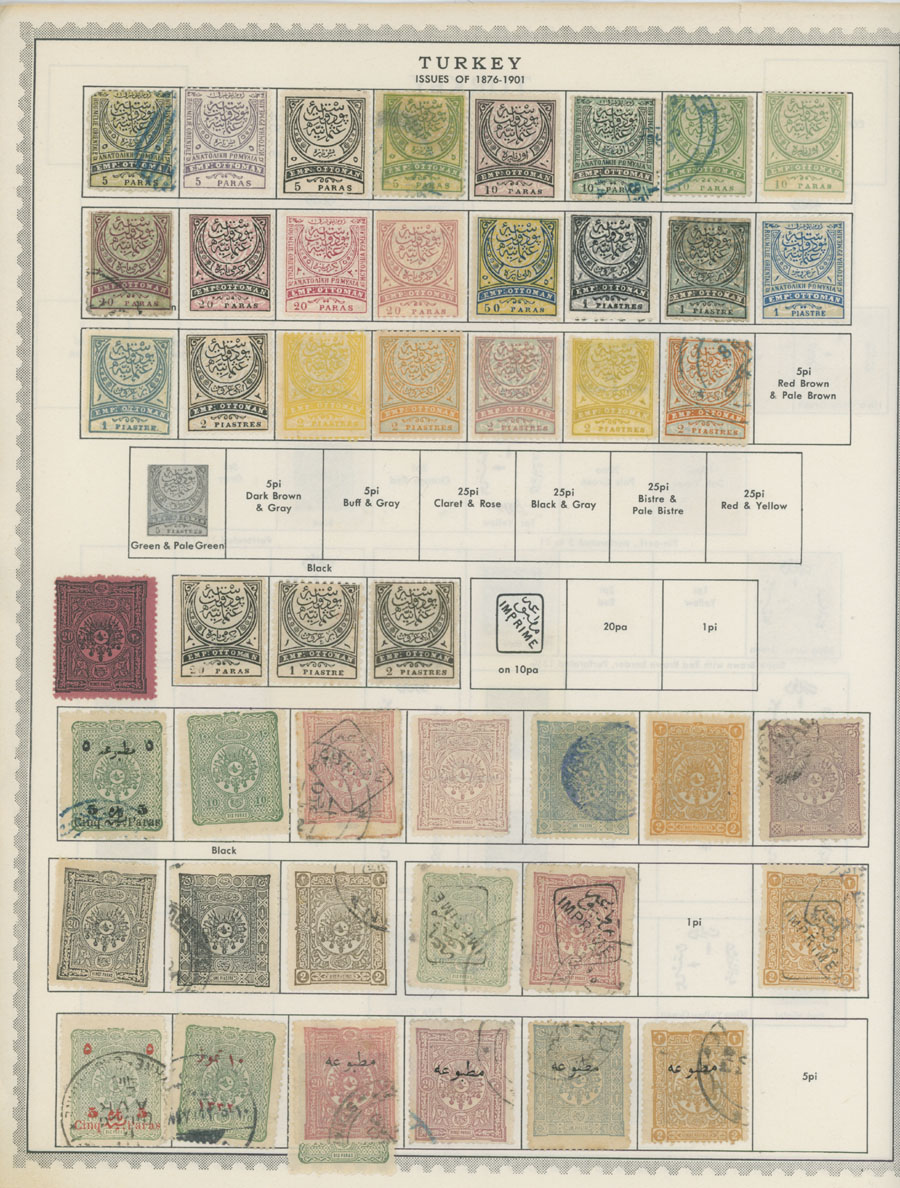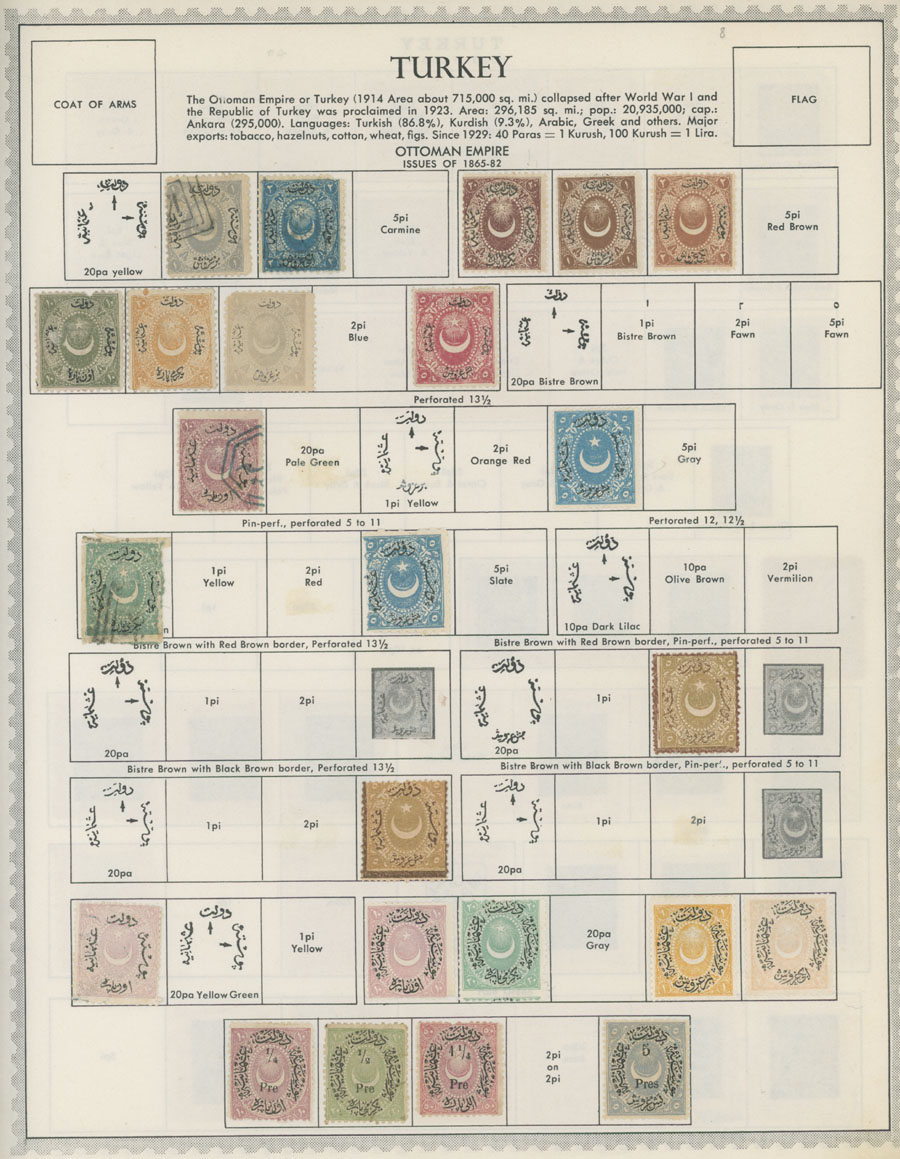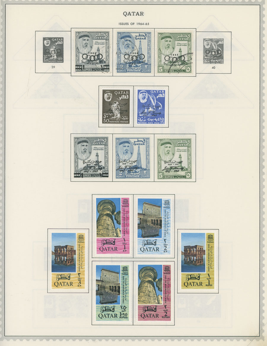 LARGE MIDDLE EAST COLLECTION ON ILLUSTRATED PAGES: 1865-2000, about 13,000 mint and used stamps and 180 souvenir sheets, representing issues of Aden and South Arabia (C.v. $550), Afghanistan (C.v. $900), Iran (C.v. $5,700), Iraq (C.v. $1,000), Palestine and Israel (C.v. $1,400), Jordan (C.v. $1,350), Pakistan (C.v. $1,000), Qatar (C.v. $3,000), Turkey (C.v. $4,000), United Arab Emirates with other Trucial States and Yemen (C.v. $1,000), many valuable items, occasional flaws possible, full/large part of OG or used (many CTO), F/VF, great lot for breaking up for individual country collections, total C.v. about $20,000, Est. $4,000-$5,000