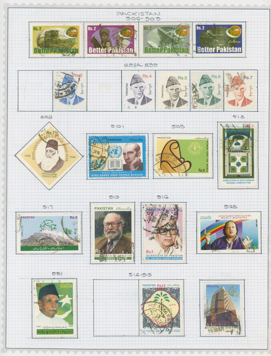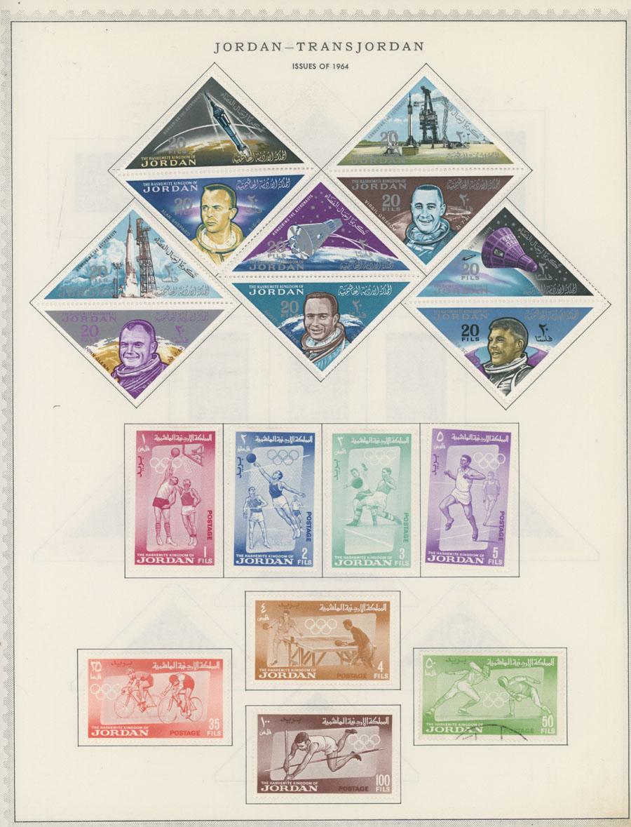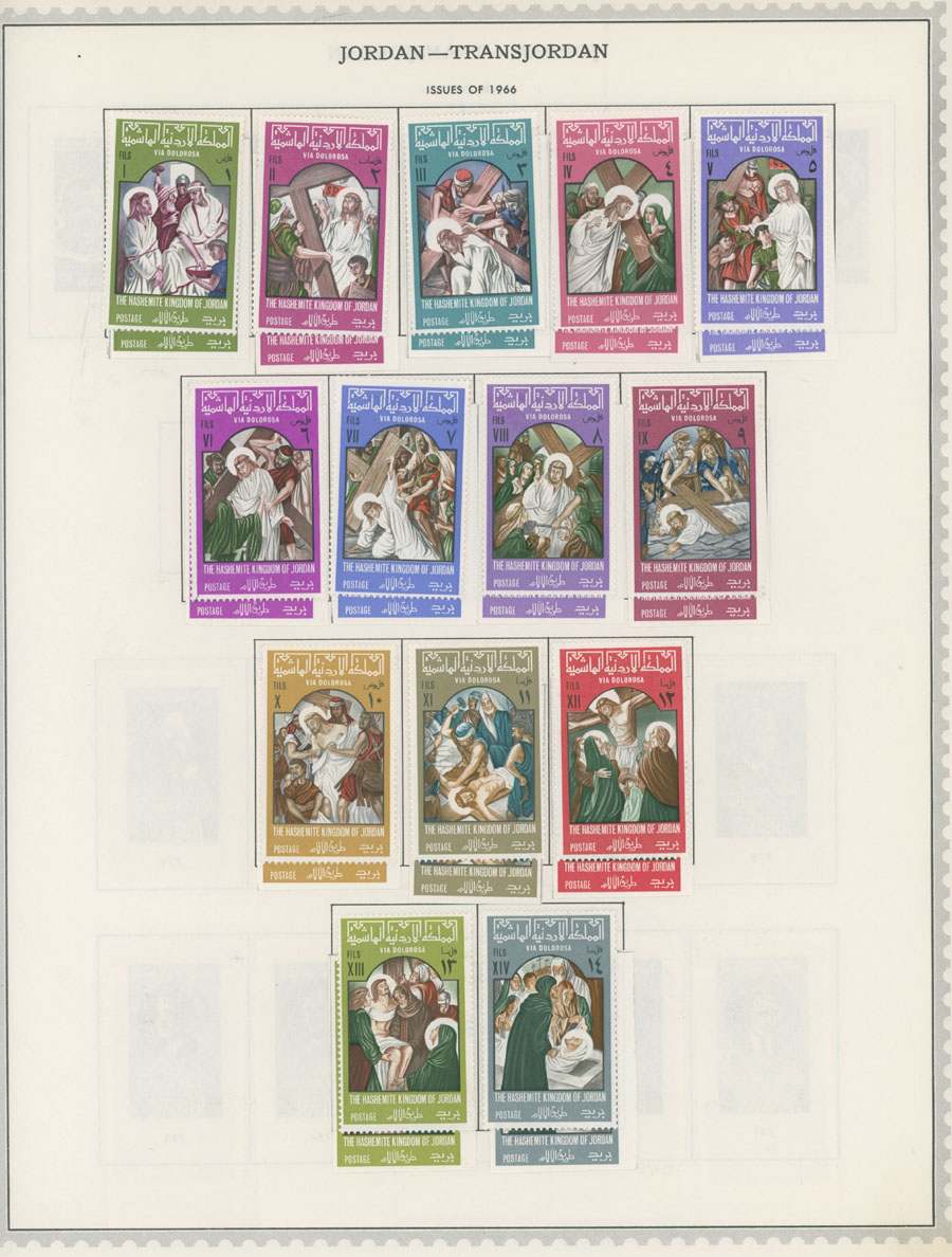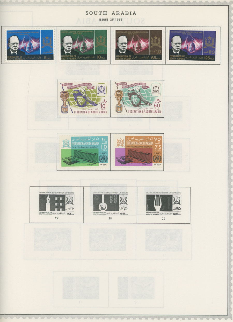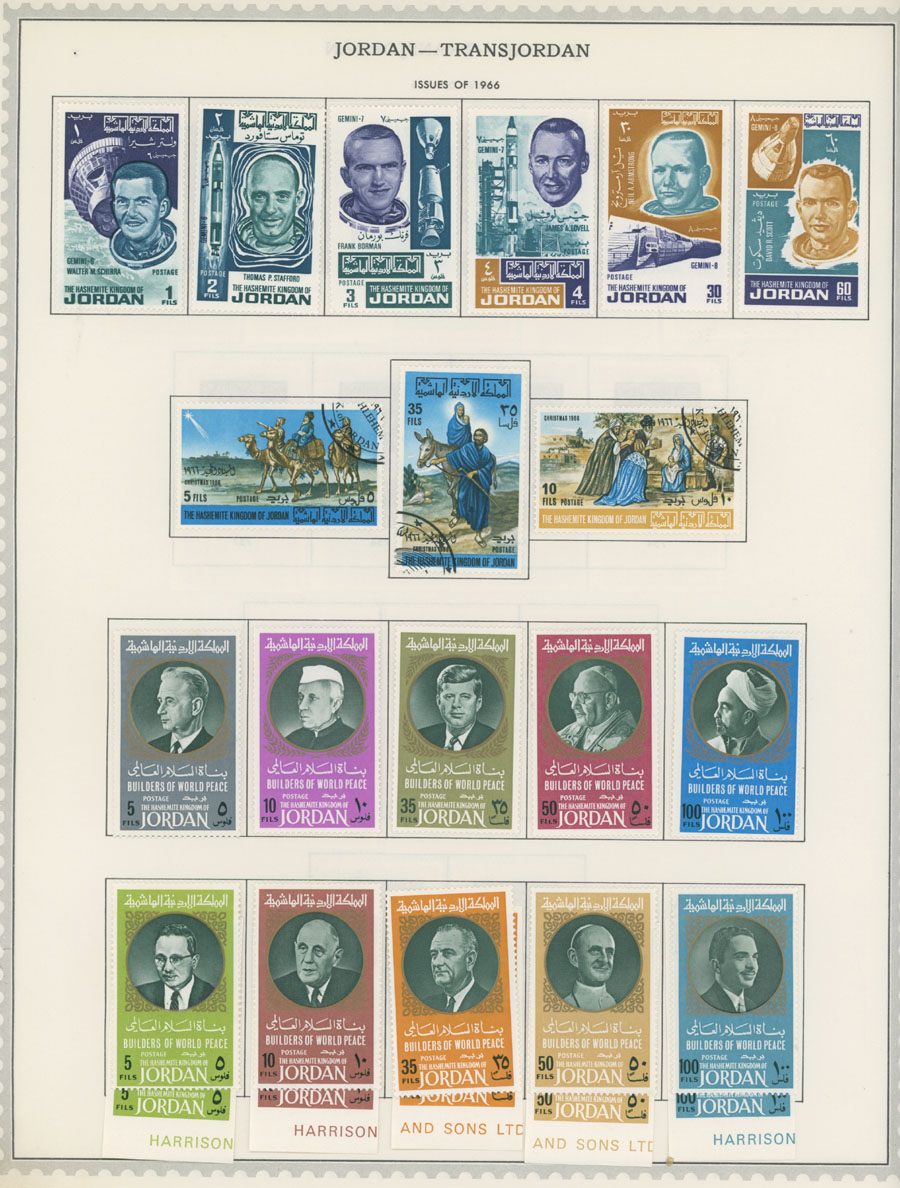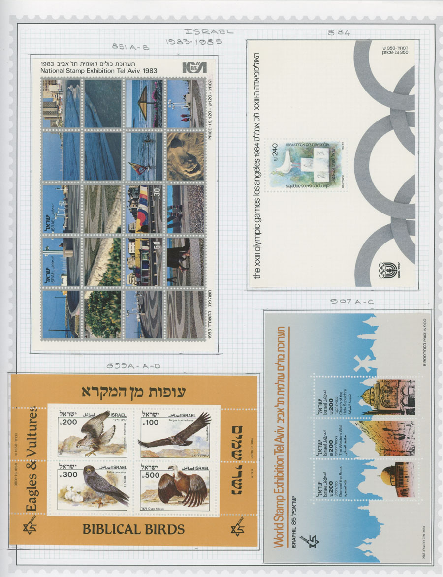 LARGE MIDDLE EAST COLLECTION ON ILLUSTRATED PAGES: 1865-2000, about 13,000 mint and used stamps and 180 souvenir sheets, representing issues of Aden and South Arabia (C.v. $550), Afghanistan (C.v. $900), Iran (C.v. $5,700), Iraq (C.v. $1,000), Palestine and Israel (C.v. $1,400), Jordan (C.v. $1,350), Pakistan (C.v. $1,000), Qatar (C.v. $3,000), Turkey (C.v. $4,000), United Arab Emirates with other Trucial States and Yemen (C.v. $1,000), many valuable items, occasional flaws possible, full/large part of OG or used (many CTO), F/VF, great lot for breaking up for individual country collections, total C.v. about $20,000, Est. $4,000-$5,000