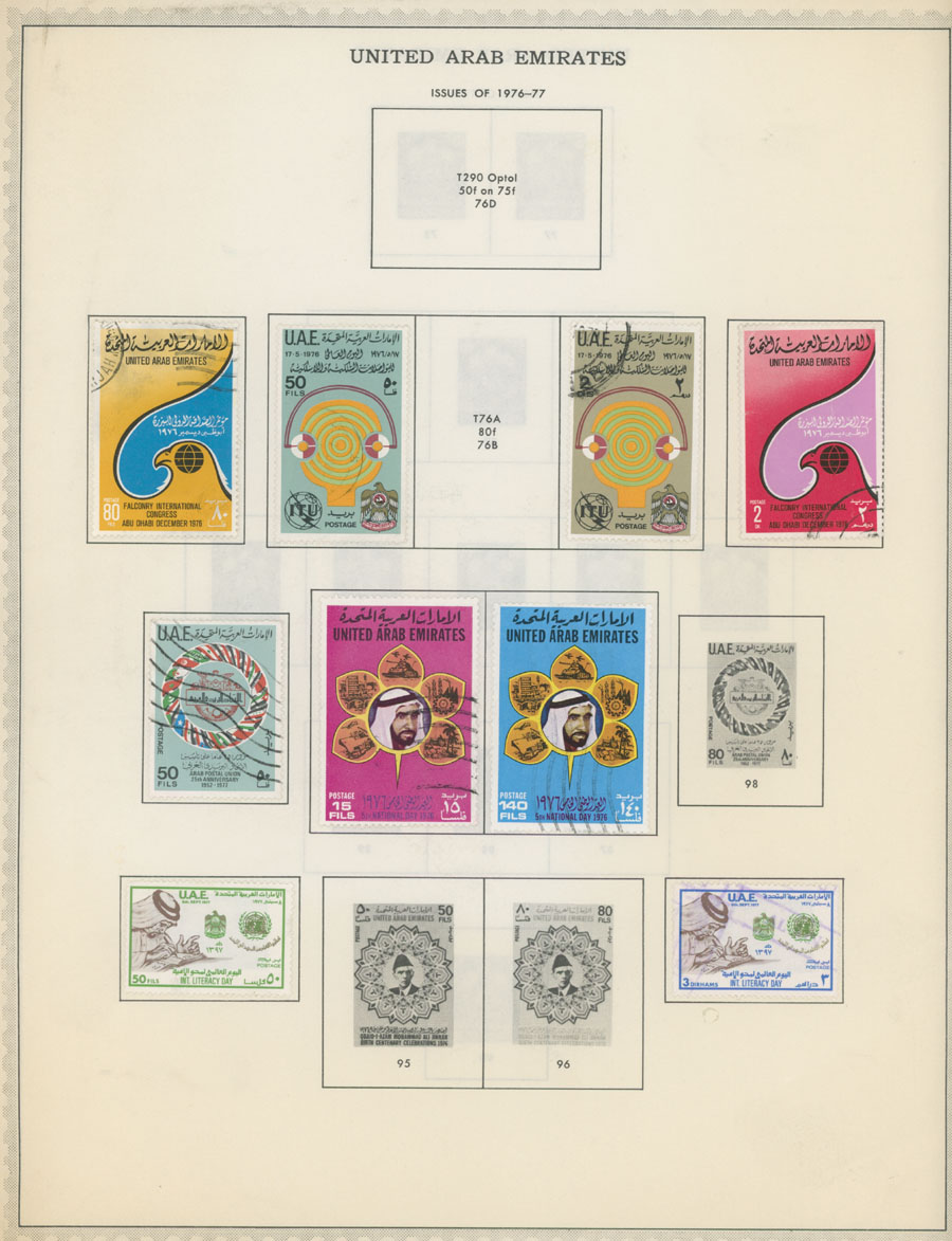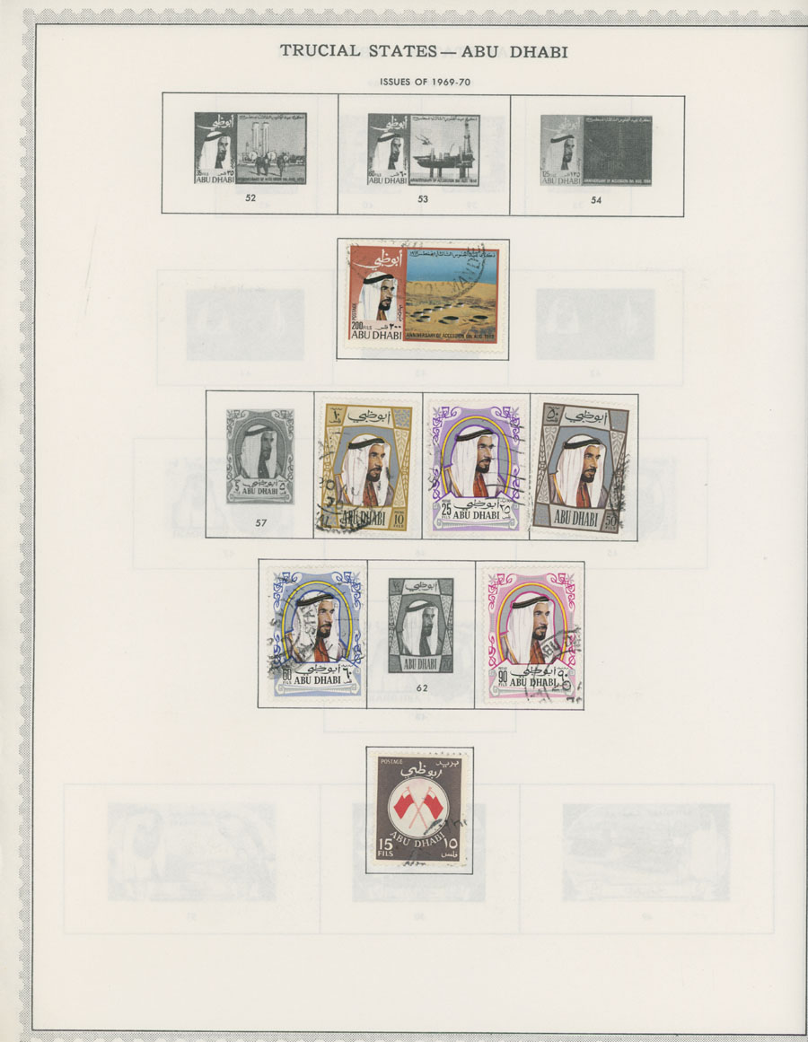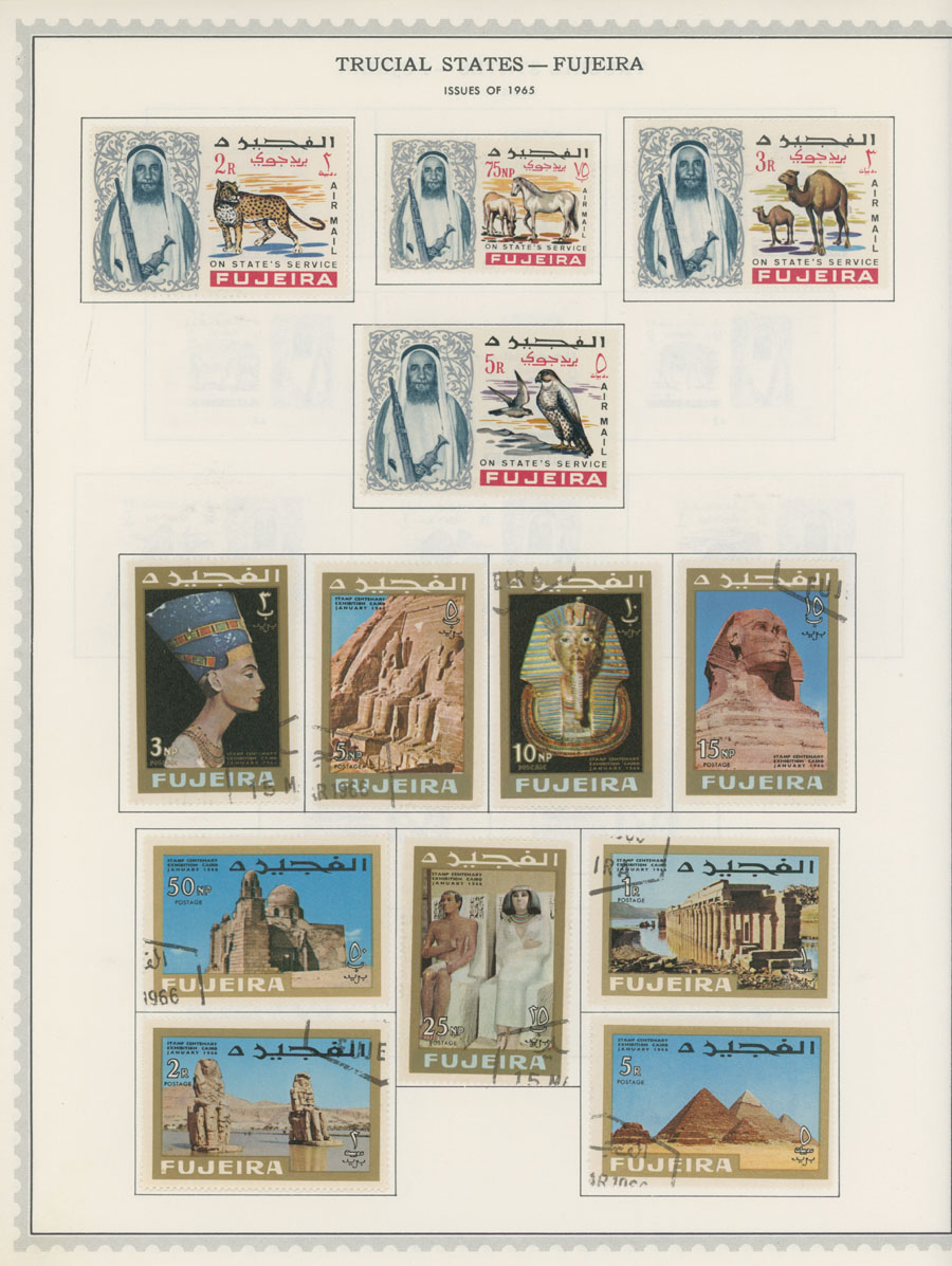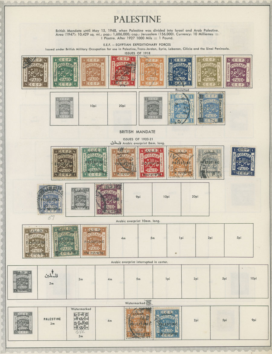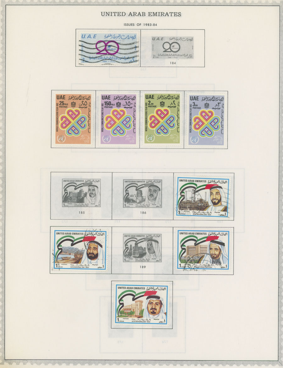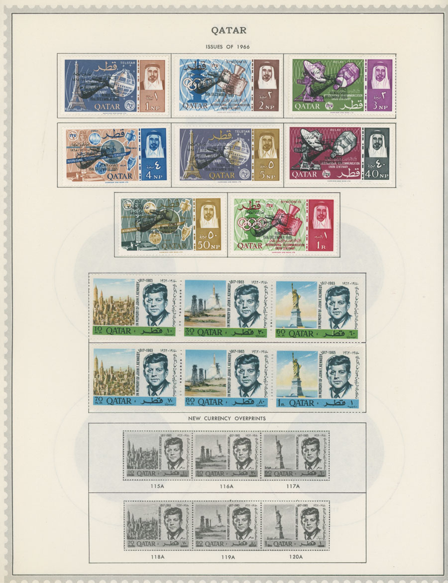 LARGE MIDDLE EAST COLLECTION ON ILLUSTRATED PAGES: 1865-2000, about 13,000 mint and used stamps and 180 souvenir sheets, representing issues of Aden and South Arabia (C.v. $550), Afghanistan (C.v. $900), Iran (C.v. $5,700), Iraq (C.v. $1,000), Palestine and Israel (C.v. $1,400), Jordan (C.v. $1,350), Pakistan (C.v. $1,000), Qatar (C.v. $3,000), Turkey (C.v. $4,000), United Arab Emirates with other Trucial States and Yemen (C.v. $1,000), many valuable items, occasional flaws possible, full/large part of OG or used (many CTO), F/VF, great lot for breaking up for individual country collections, total C.v. about $20,000, Est. $4,000-$5,000