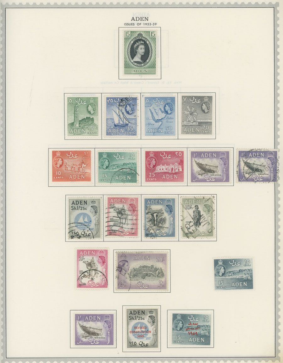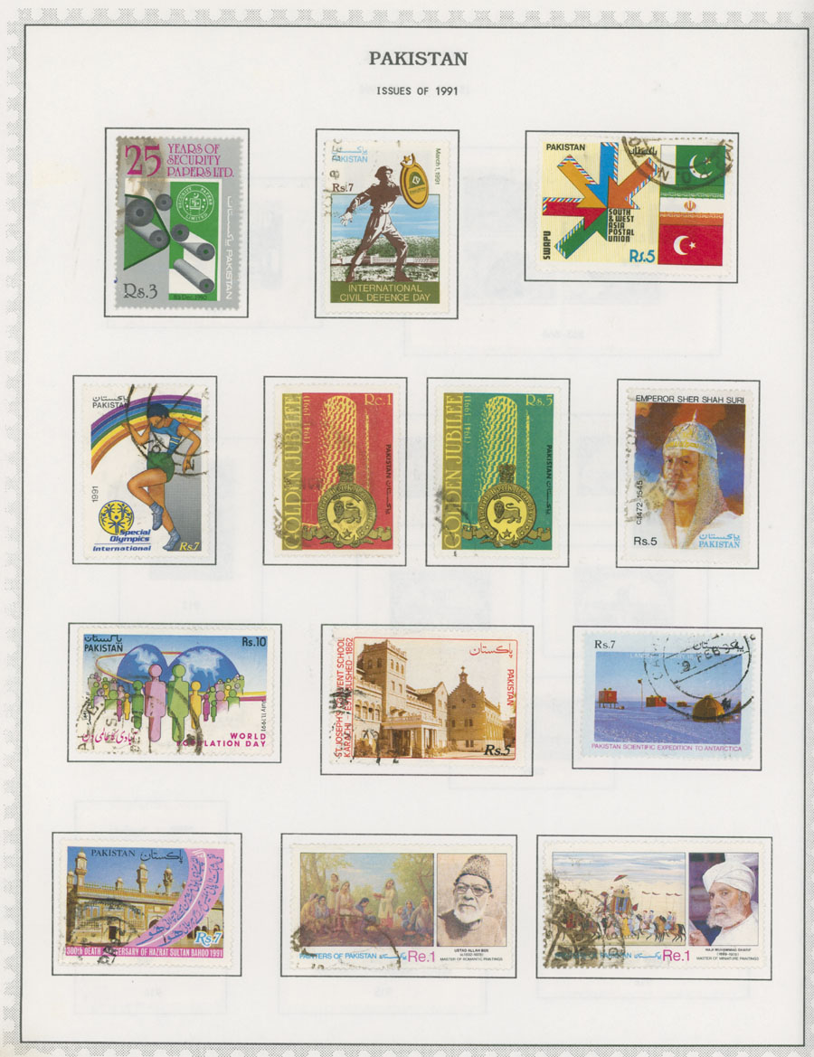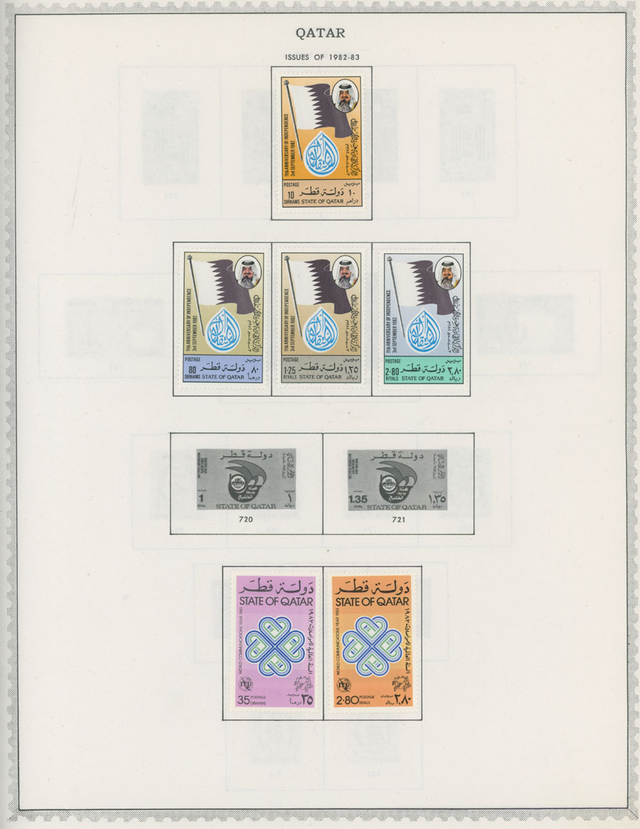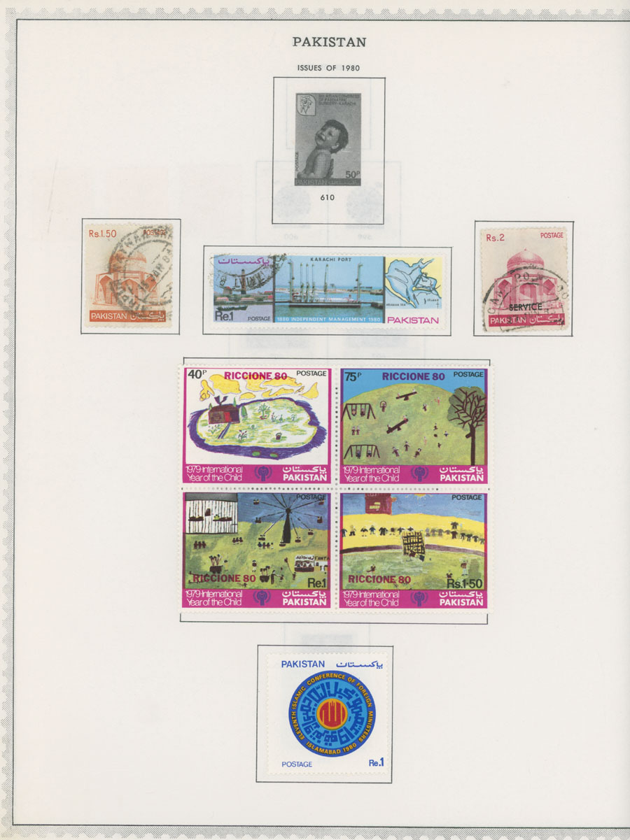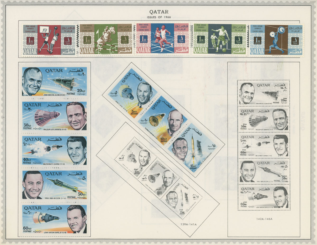 LARGE MIDDLE EAST COLLECTION ON ILLUSTRATED PAGES: 1865-2000, about 13,000 mint and used stamps and 180 souvenir sheets, representing issues of Aden and South Arabia (C.v. $550), Afghanistan (C.v. $900), Iran (C.v. $5,700), Iraq (C.v. $1,000), Palestine and Israel (C.v. $1,400), Jordan (C.v. $1,350), Pakistan (C.v. $1,000), Qatar (C.v. $3,000), Turkey (C.v. $4,000), United Arab Emirates with other Trucial States and Yemen (C.v. $1,000), many valuable items, occasional flaws possible, full/large part of OG or used (many CTO), F/VF, great lot for breaking up for individual country collections, total C.v. about $20,000, Est. $4,000-$5,000