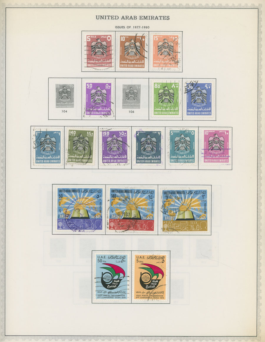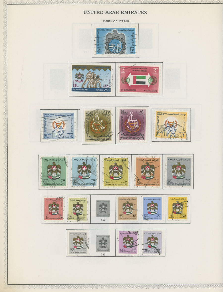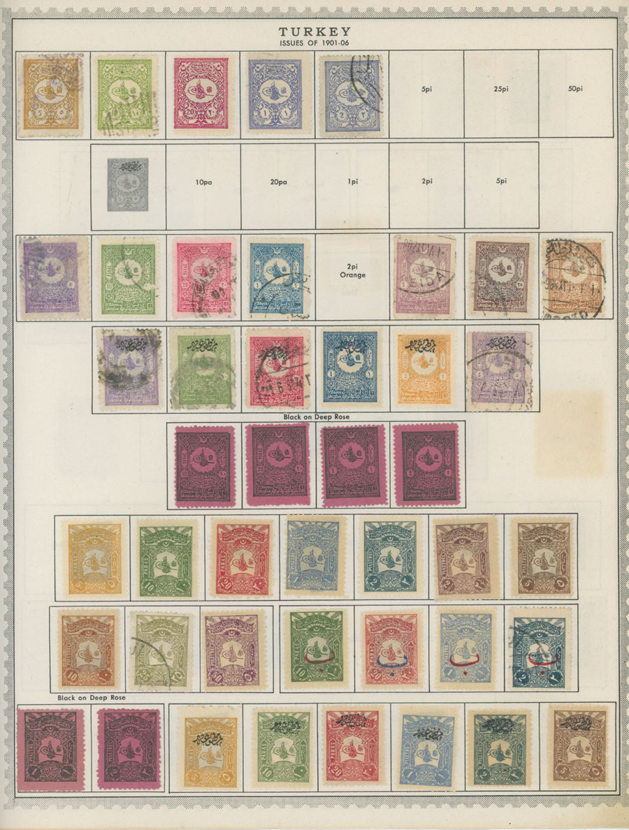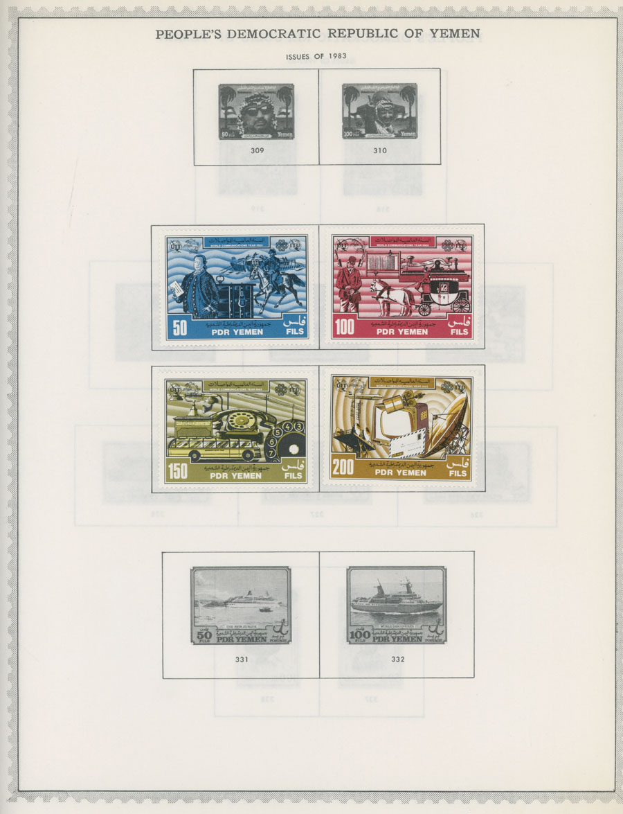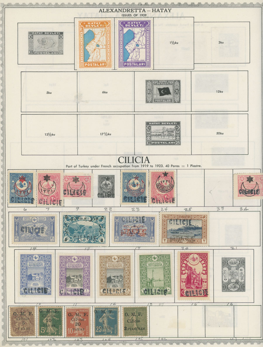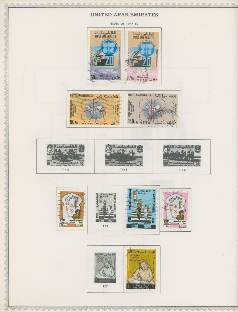 LARGE MIDDLE EAST COLLECTION ON ILLUSTRATED PAGES: 1865-2000, about 13,000 mint and used stamps and 180 souvenir sheets, representing issues of Aden and South Arabia (C.v. $550), Afghanistan (C.v. $900), Iran (C.v. $5,700), Iraq (C.v. $1,000), Palestine and Israel (C.v. $1,400), Jordan (C.v. $1,350), Pakistan (C.v. $1,000), Qatar (C.v. $3,000), Turkey (C.v. $4,000), United Arab Emirates with other Trucial States and Yemen (C.v. $1,000), many valuable items, occasional flaws possible, full/large part of OG or used (many CTO), F/VF, great lot for breaking up for individual country collections, total C.v. about $20,000, Est. $4,000-$5,000