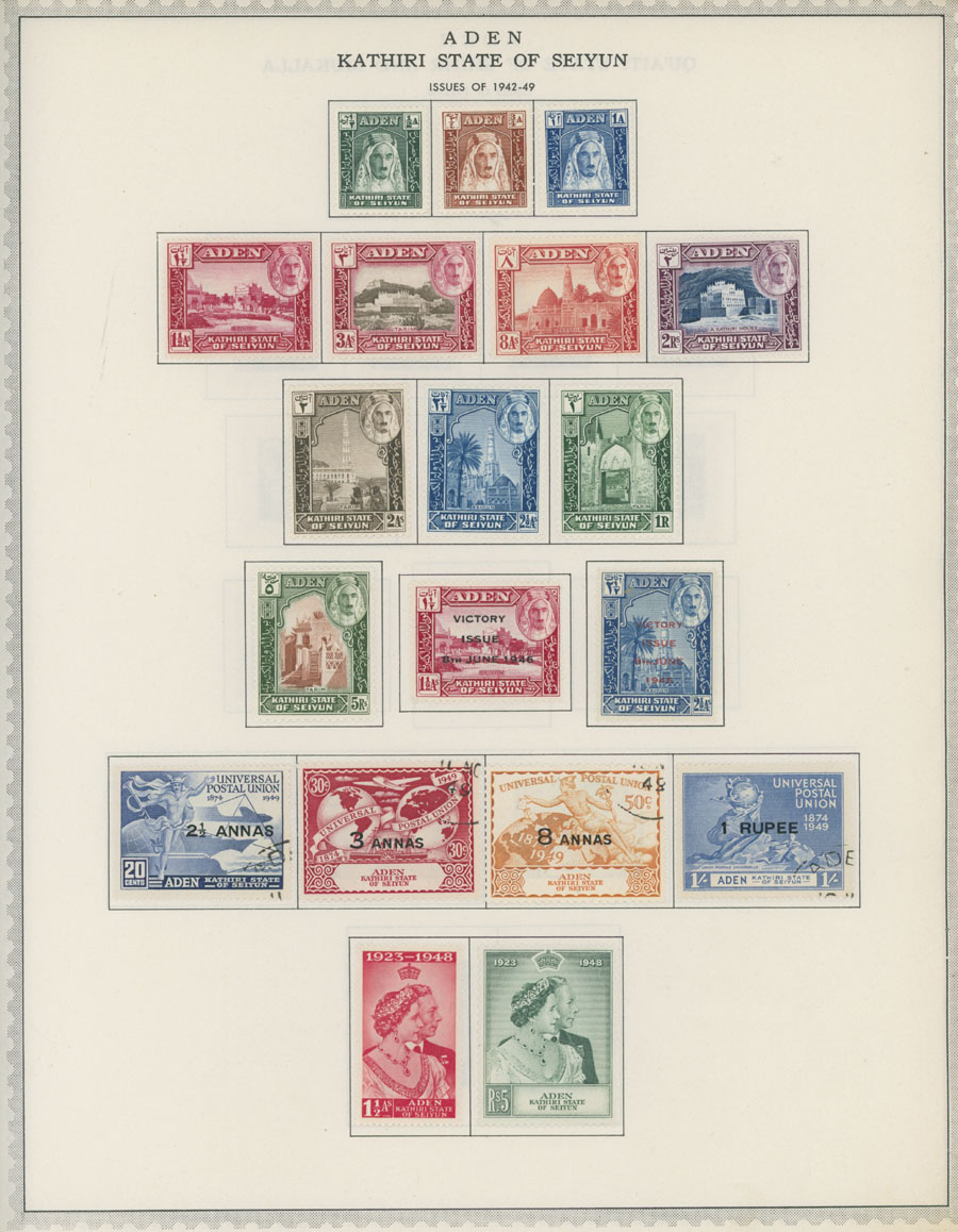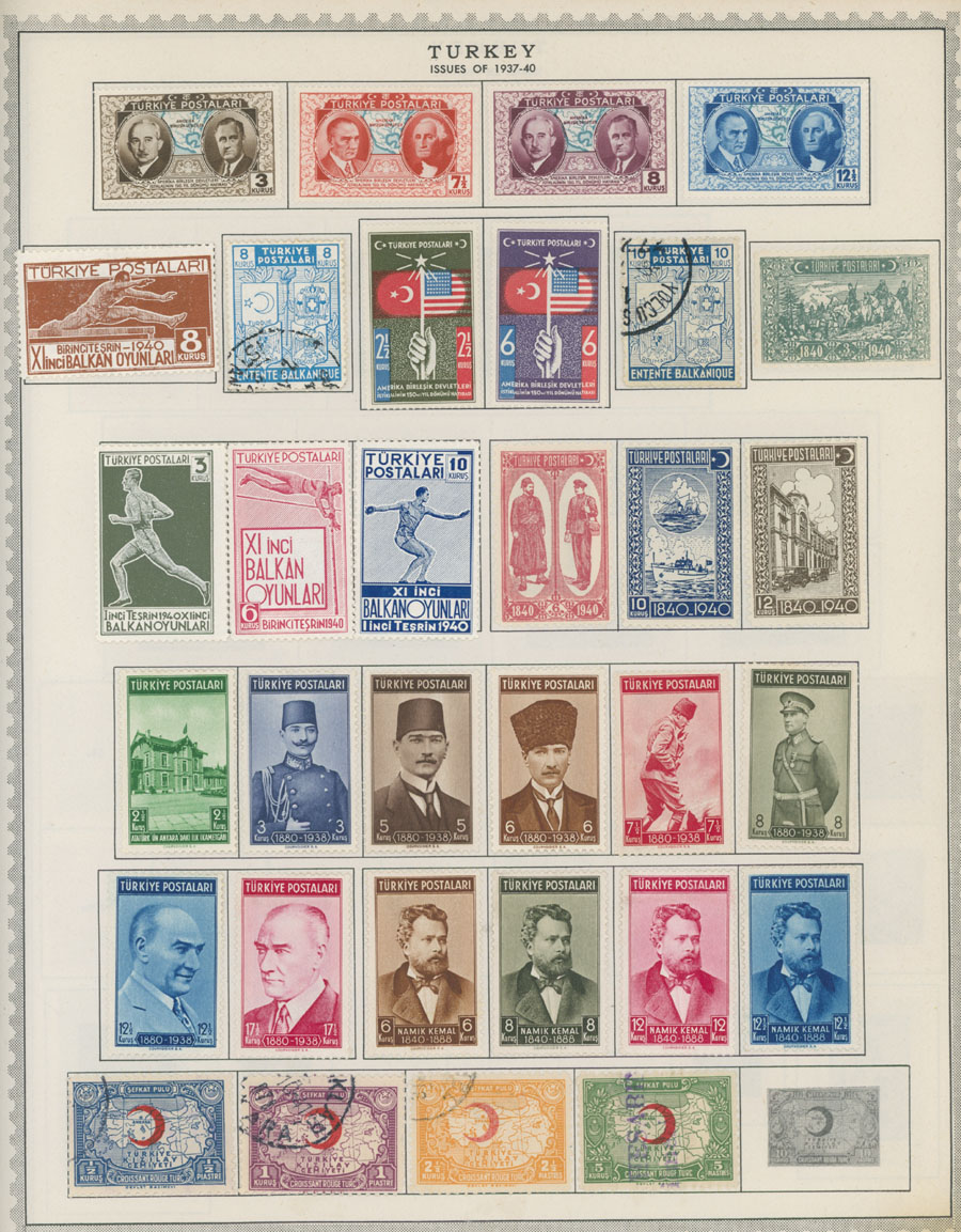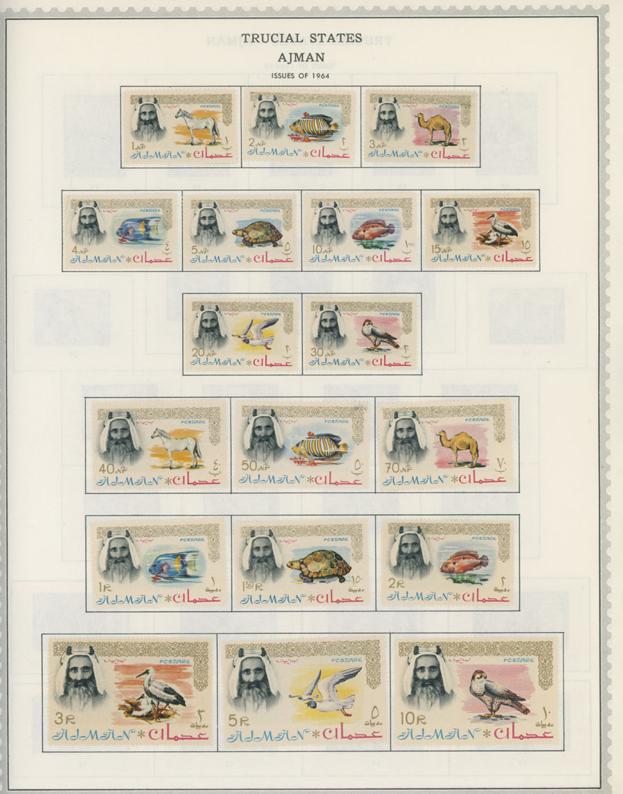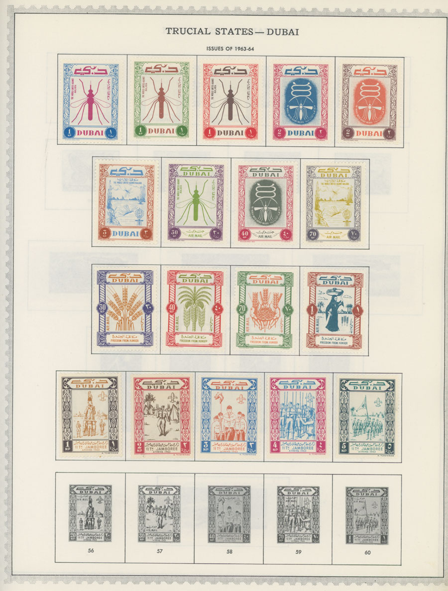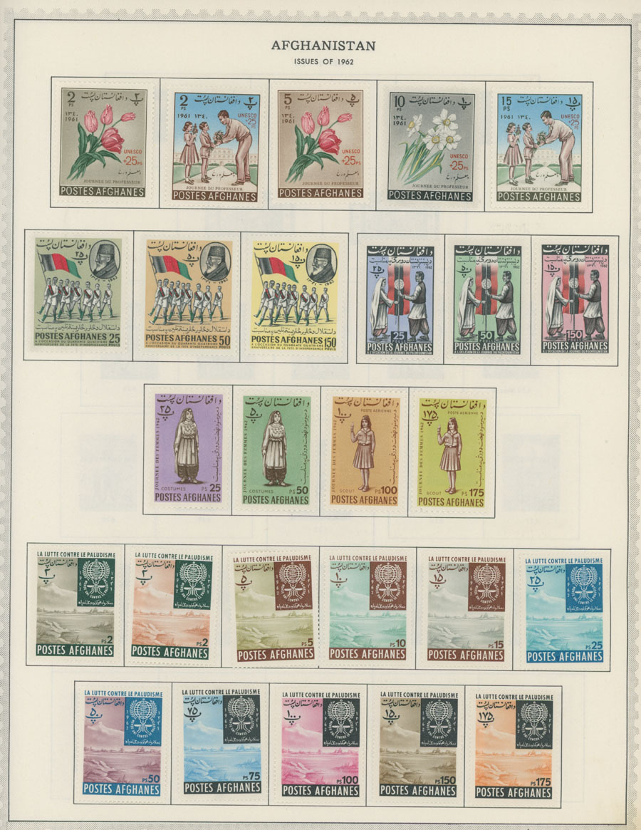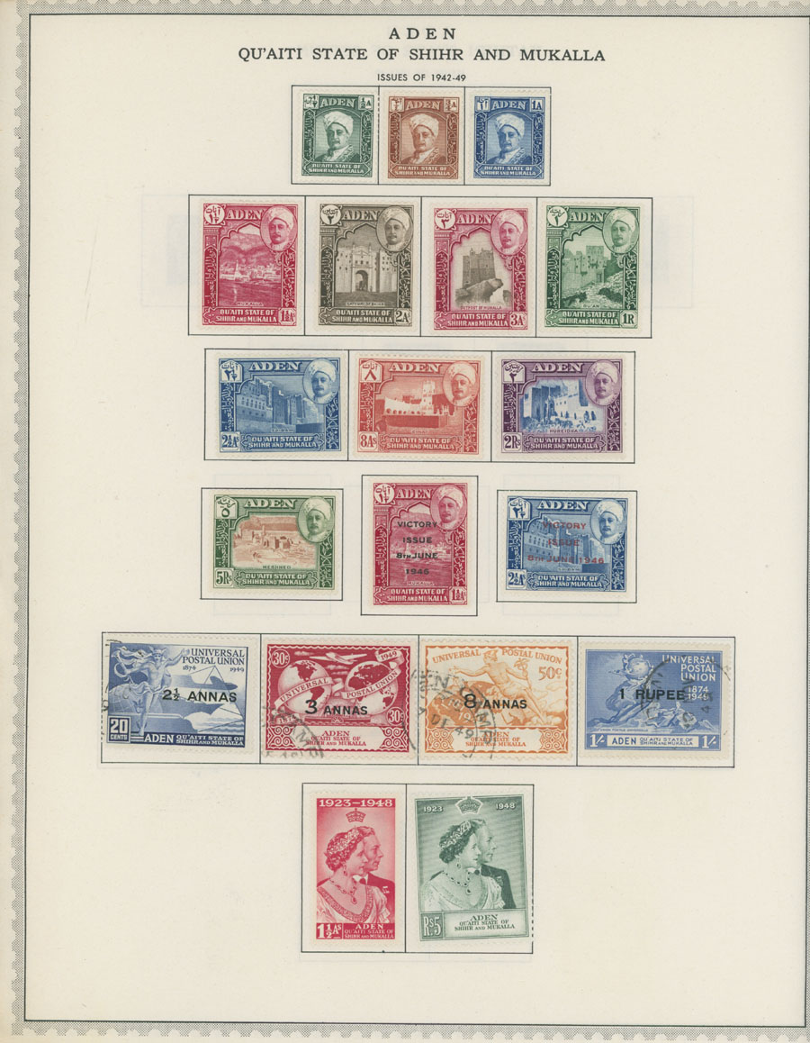 LARGE MIDDLE EAST COLLECTION ON ILLUSTRATED PAGES: 1865-2000, about 13,000 mint and used stamps and 180 souvenir sheets, representing issues of Aden and South Arabia (C.v. $550), Afghanistan (C.v. $900), Iran (C.v. $5,700), Iraq (C.v. $1,000), Palestine and Israel (C.v. $1,400), Jordan (C.v. $1,350), Pakistan (C.v. $1,000), Qatar (C.v. $3,000), Turkey (C.v. $4,000), United Arab Emirates with other Trucial States and Yemen (C.v. $1,000), many valuable items, occasional flaws possible, full/large part of OG or used (many CTO), F/VF, great lot for breaking up for individual country collections, total C.v. about $20,000, Est. $4,000-$5,000