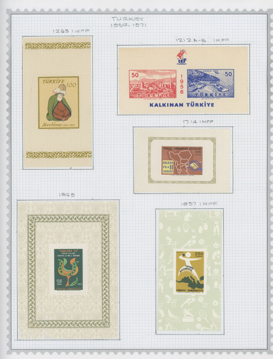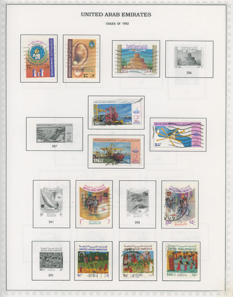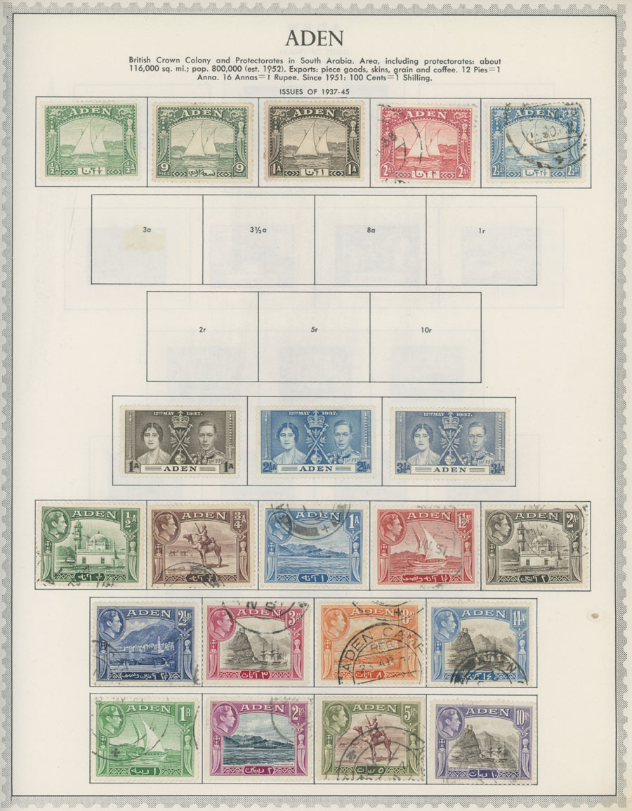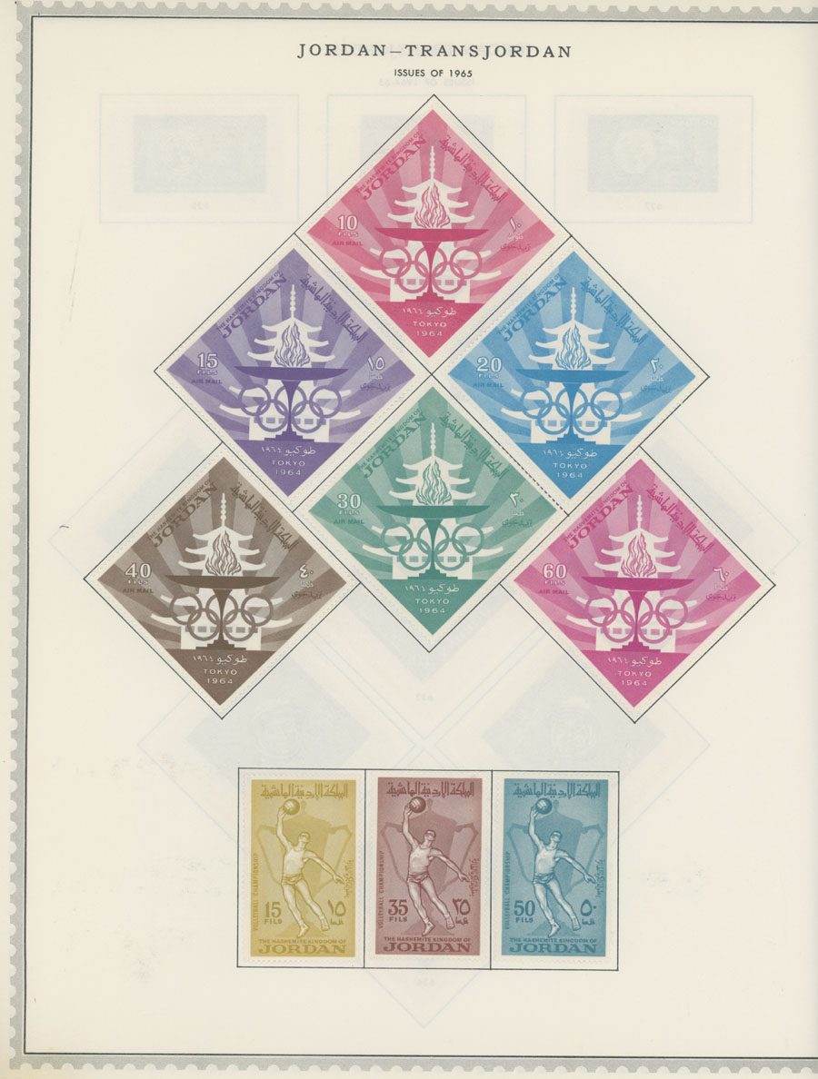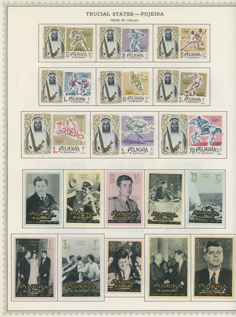 LARGE MIDDLE EAST COLLECTION ON ILLUSTRATED PAGES: 1865-2000, about 13,000 mint and used stamps and 180 souvenir sheets, representing issues of Aden and South Arabia (C.v. $550), Afghanistan (C.v. $900), Iran (C.v. $5,700), Iraq (C.v. $1,000), Palestine and Israel (C.v. $1,400), Jordan (C.v. $1,350), Pakistan (C.v. $1,000), Qatar (C.v. $3,000), Turkey (C.v. $4,000), United Arab Emirates with other Trucial States and Yemen (C.v. $1,000), many valuable items, occasional flaws possible, full/large part of OG or used (many CTO), F/VF, great lot for breaking up for individual country collections, total C.v. about $20,000, Est. $4,000-$5,000