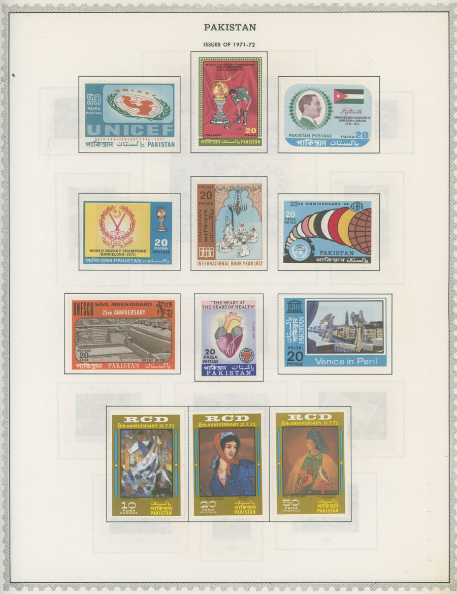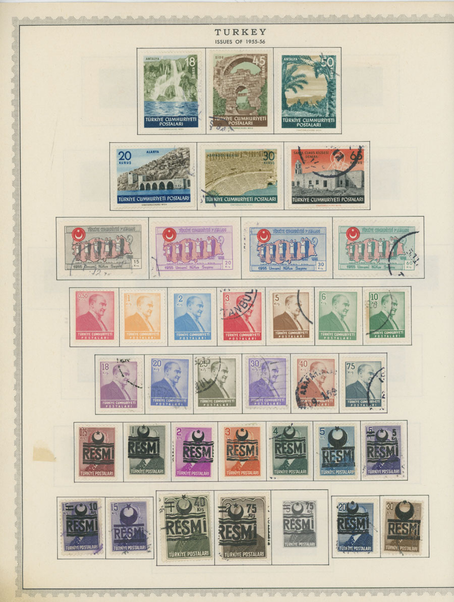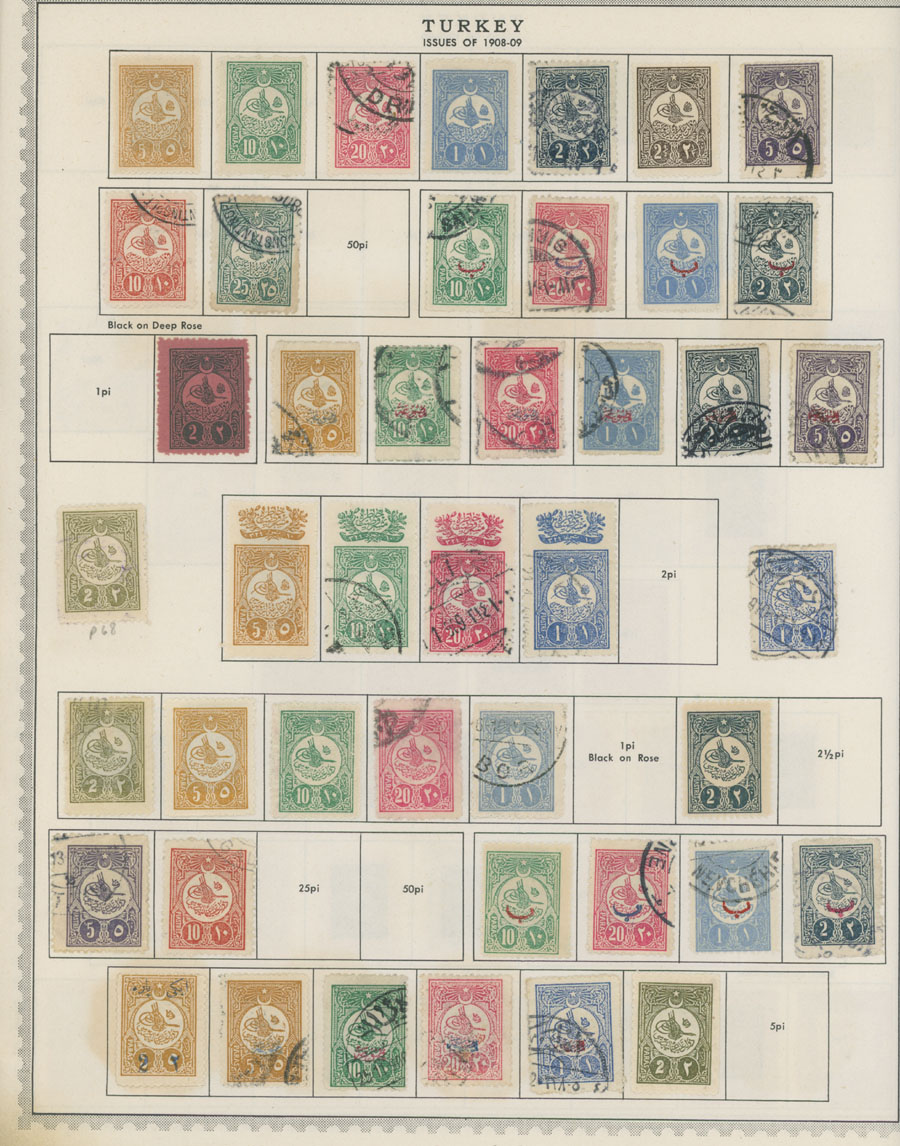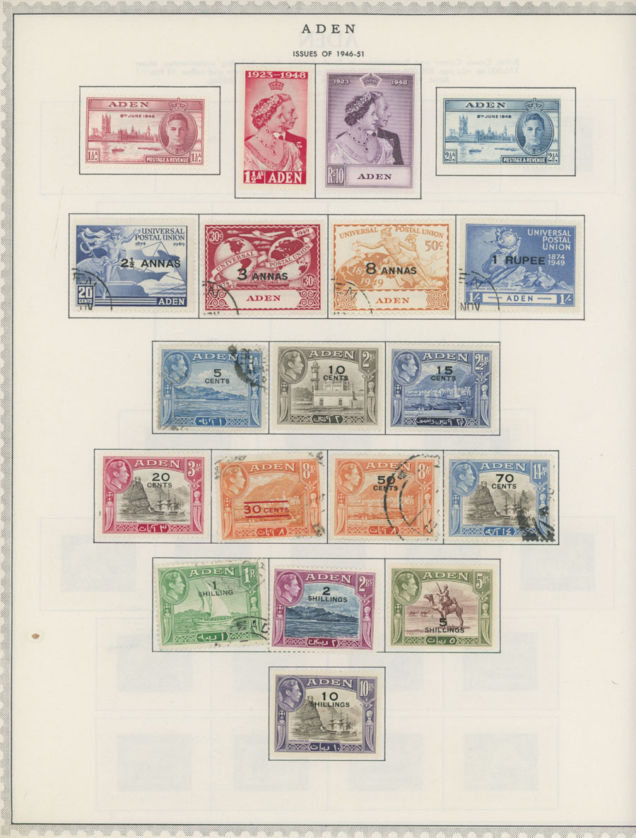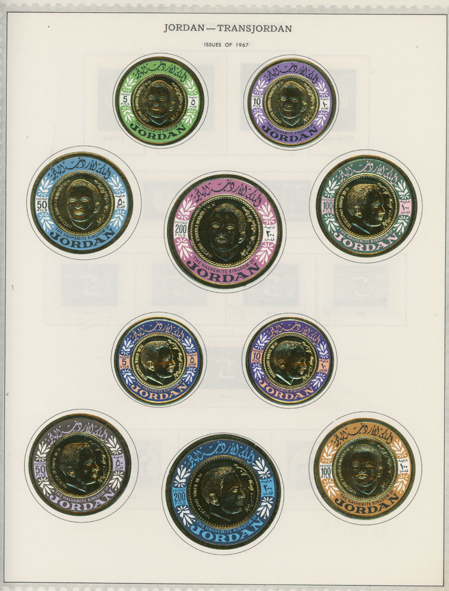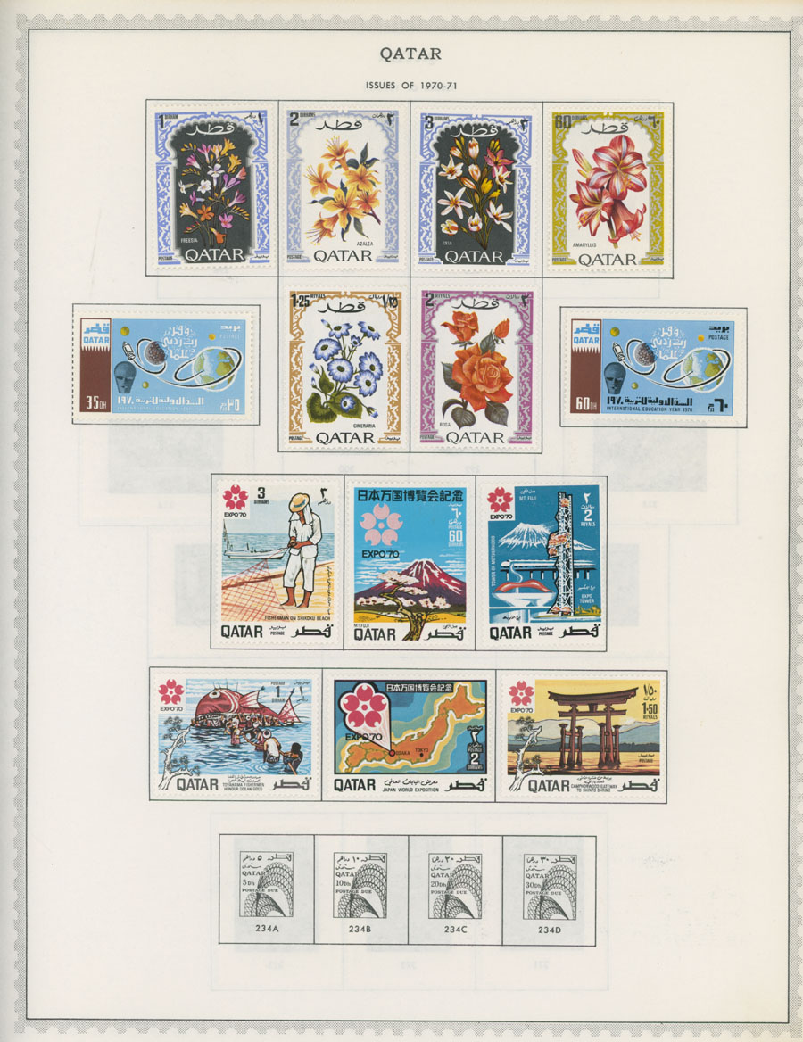LARGE MIDDLE EAST COLLECTION ON ILLUSTRATED PAGES: 1865-2000, about 13,000 mint and used stamps and 180 souvenir sheets, representing issues of Aden and South Arabia (C.v. $550), Afghanistan (C.v. $900), Iran (C.v. $5,700), Iraq (C.v. $1,000), Palestine and Israel (C.v. $1,400), Jordan (C.v. $1,350), Pakistan (C.v. $1,000), Qatar (C.v. $3,000), Turkey (C.v. $4,000), United Arab Emirates with other Trucial States and Yemen (C.v. $1,000), many valuable items, occasional flaws possible, full/large part of OG or used (many CTO), F/VF, great lot for breaking up for individual country collections, total C.v. about $20,000, Est. $4,000-$5,000