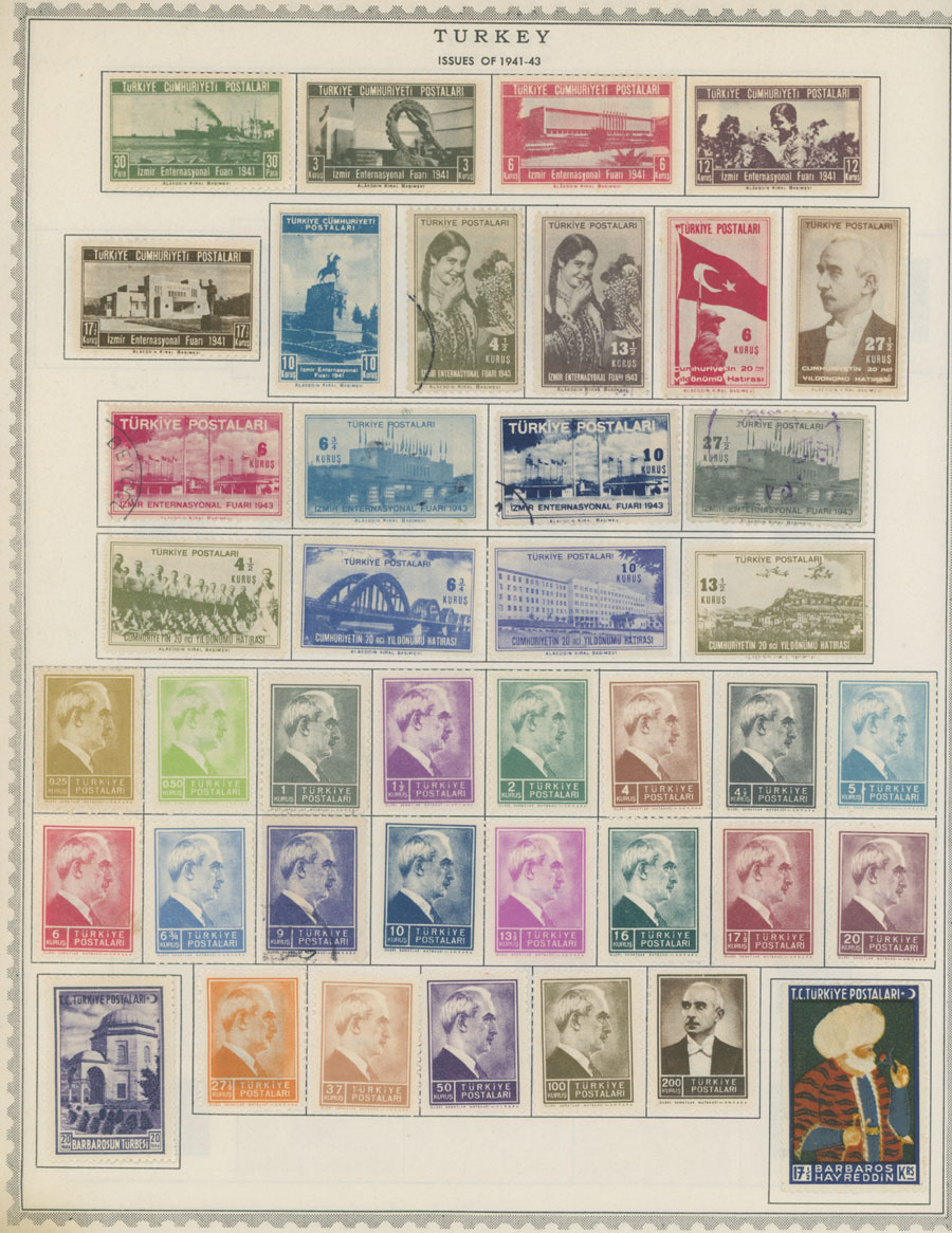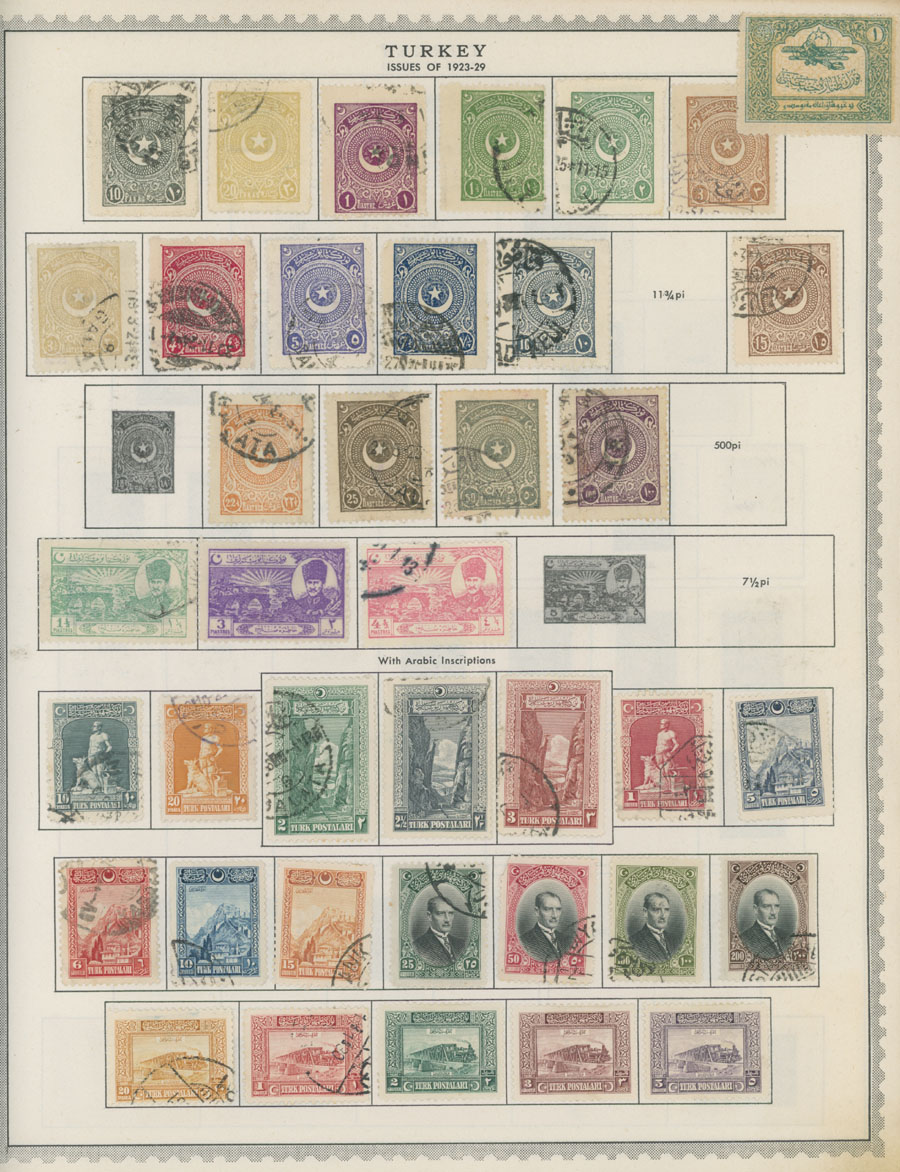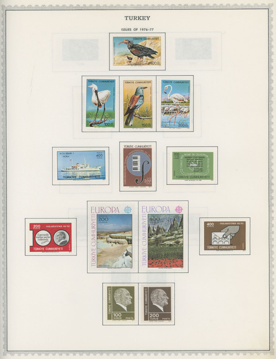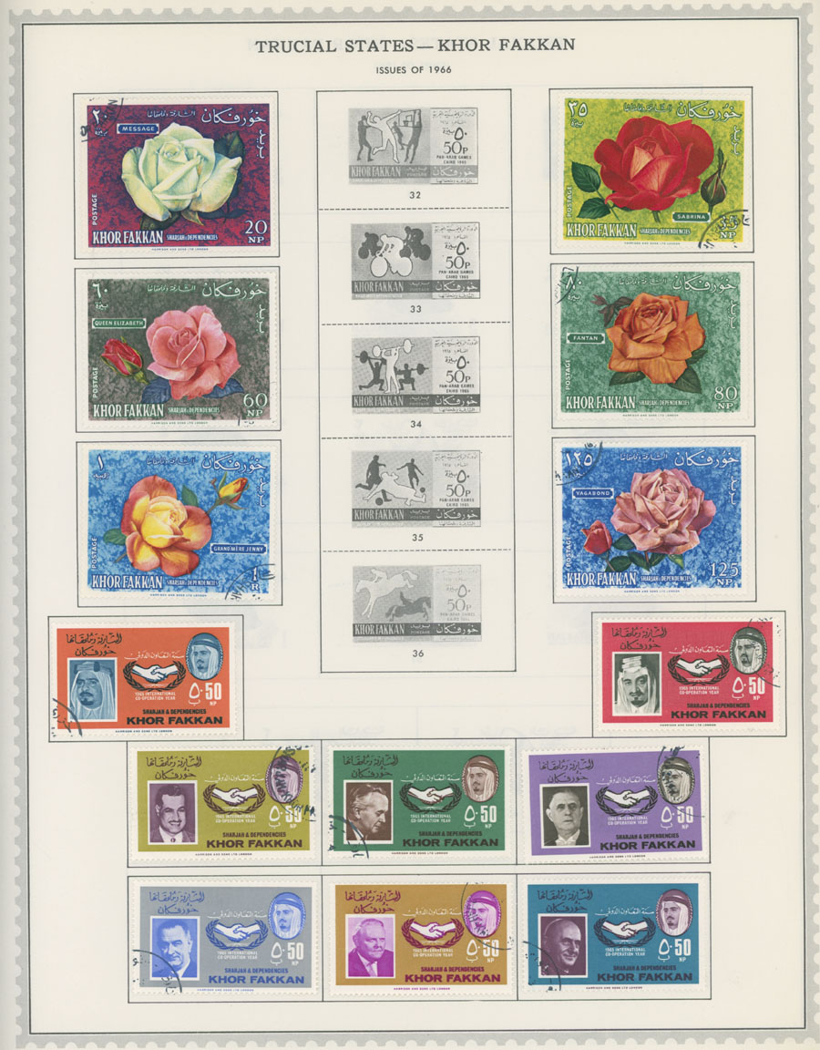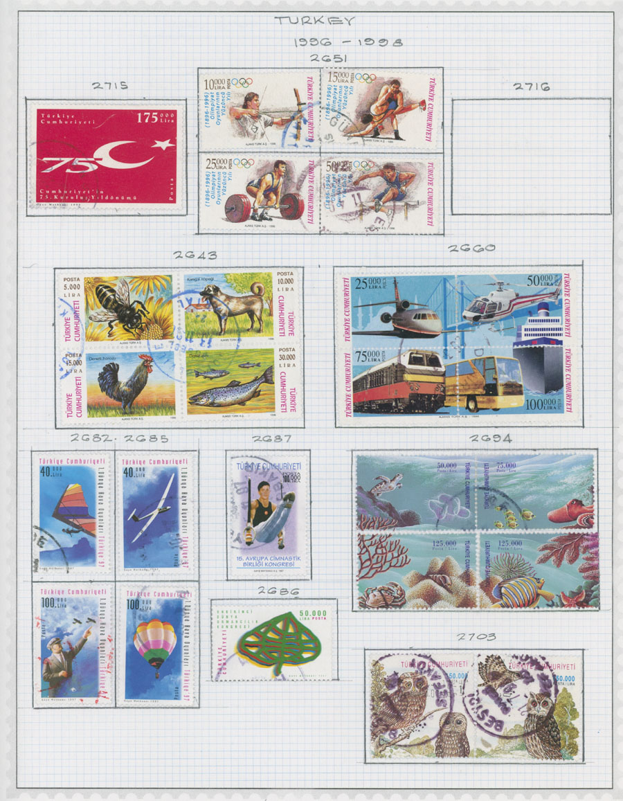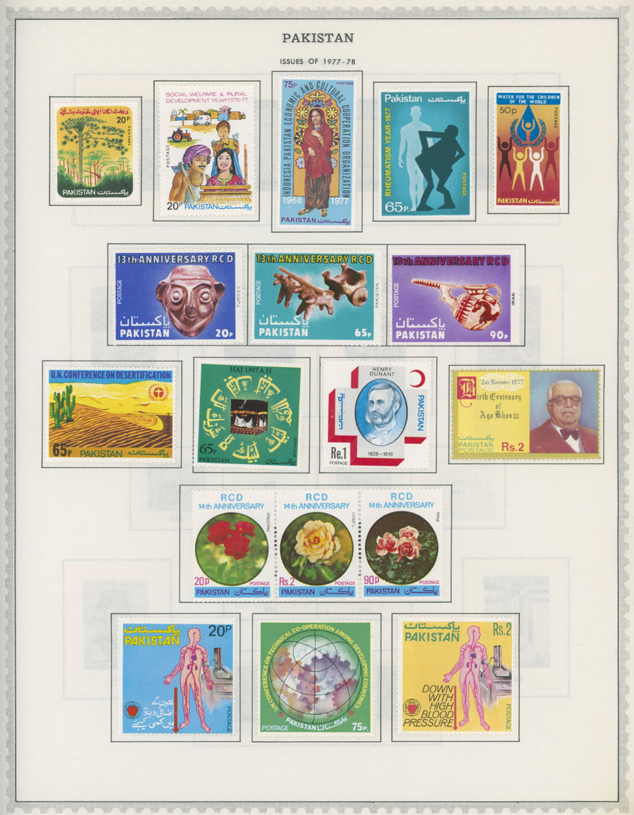 LARGE MIDDLE EAST COLLECTION ON ILLUSTRATED PAGES: 1865-2000, about 13,000 mint and used stamps and 180 souvenir sheets, representing issues of Aden and South Arabia (C.v. $550), Afghanistan (C.v. $900), Iran (C.v. $5,700), Iraq (C.v. $1,000), Palestine and Israel (C.v. $1,400), Jordan (C.v. $1,350), Pakistan (C.v. $1,000), Qatar (C.v. $3,000), Turkey (C.v. $4,000), United Arab Emirates with other Trucial States and Yemen (C.v. $1,000), many valuable items, occasional flaws possible, full/large part of OG or used (many CTO), F/VF, great lot for breaking up for individual country collections, total C.v. about $20,000, Est. $4,000-$5,000
