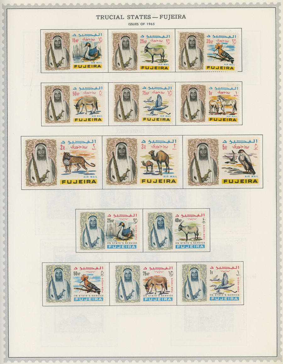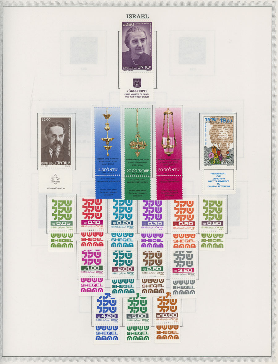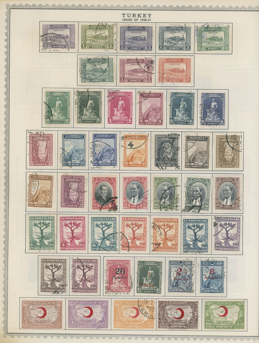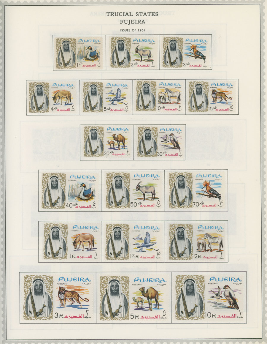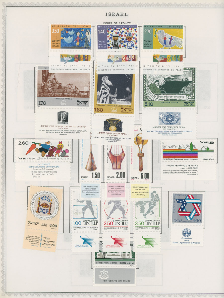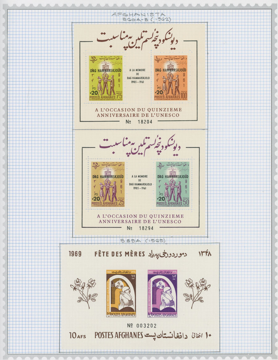LARGE MIDDLE EAST COLLECTION ON ILLUSTRATED PAGES: 1865-2000, about 13,000 mint and used stamps and 180 souvenir sheets, representing issues of Aden and South Arabia (C.v. $550), Afghanistan (C.v. $900), Iran (C.v. $5,700), Iraq (C.v. $1,000), Palestine and Israel (C.v. $1,400), Jordan (C.v. $1,350), Pakistan (C.v. $1,000), Qatar (C.v. $3,000), Turkey (C.v. $4,000), United Arab Emirates with other Trucial States and Yemen (C.v. $1,000), many valuable items, occasional flaws possible, full/large part of OG or used (many CTO), F/VF, great lot for breaking up for individual country collections, total C.v. about $20,000, Est. $4,000-$5,000