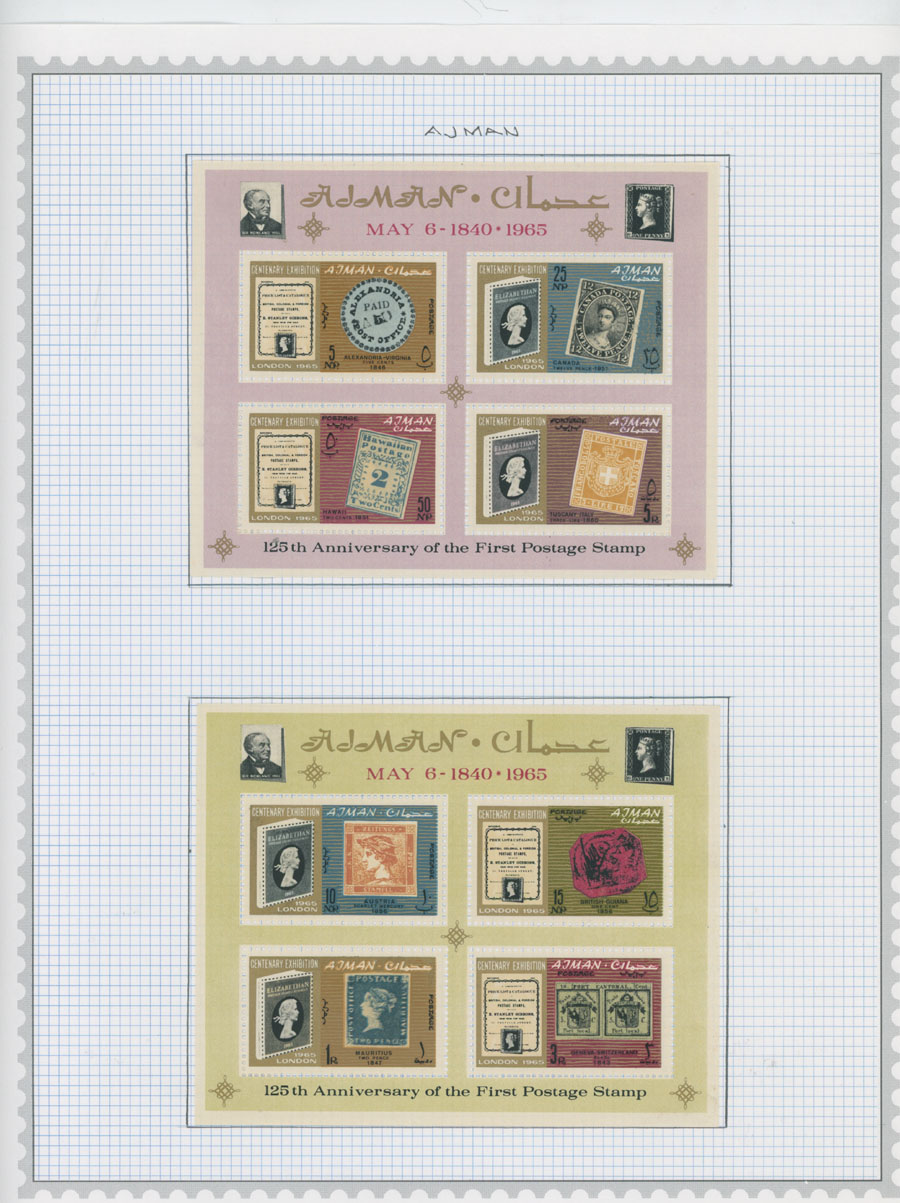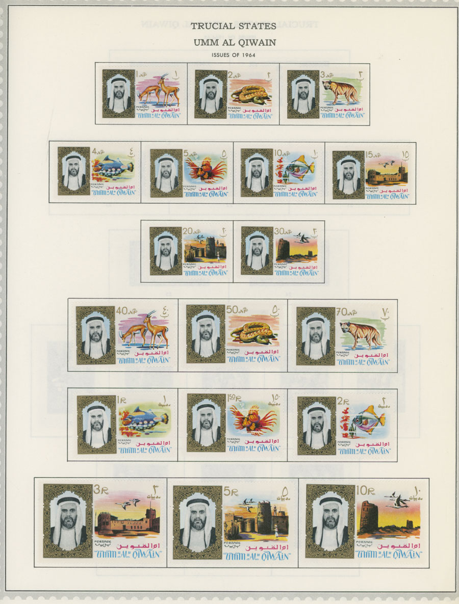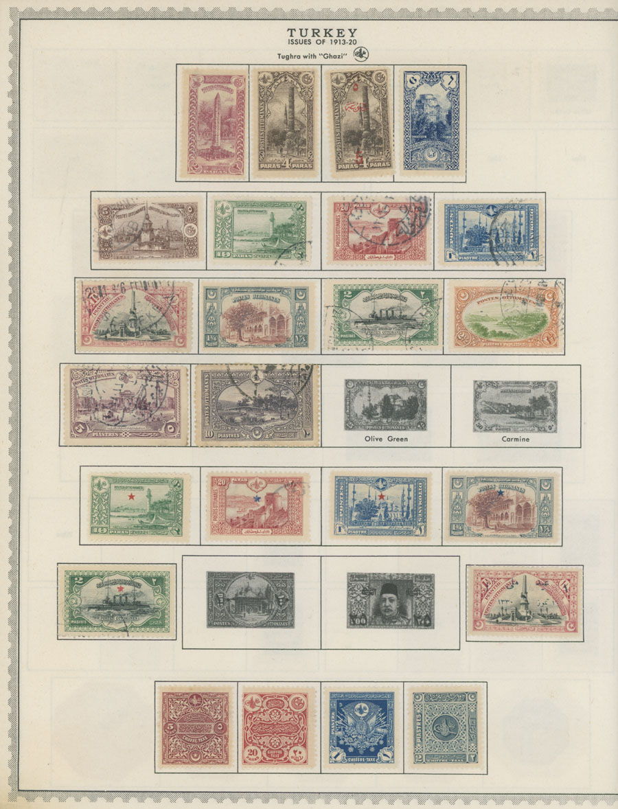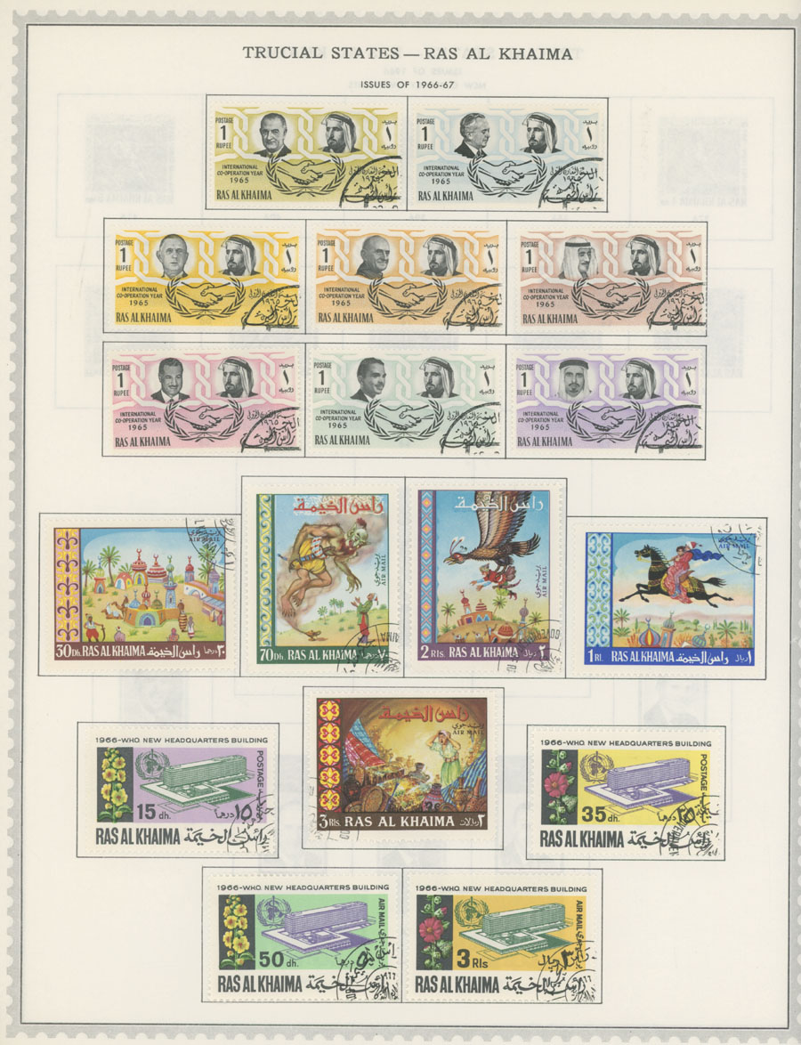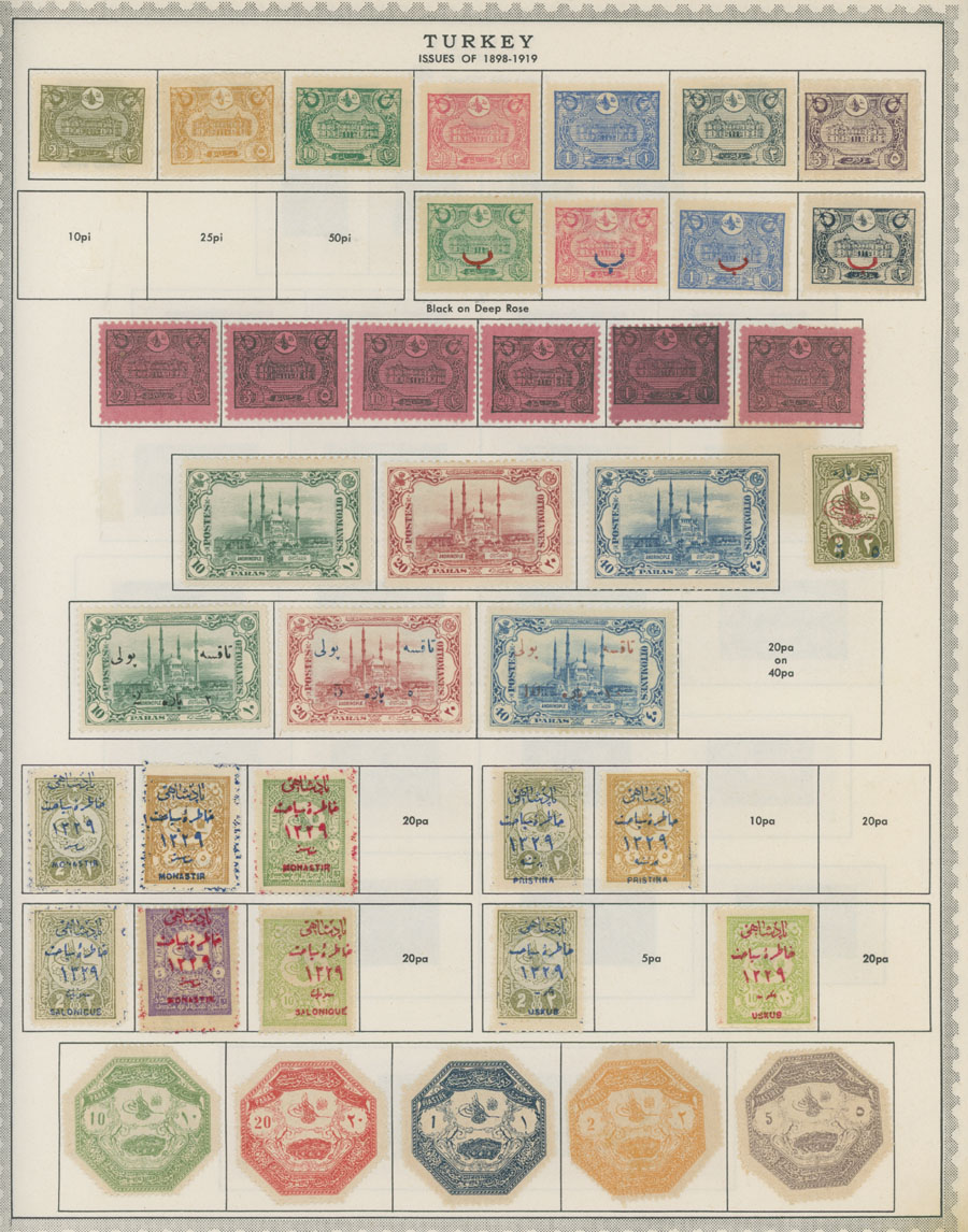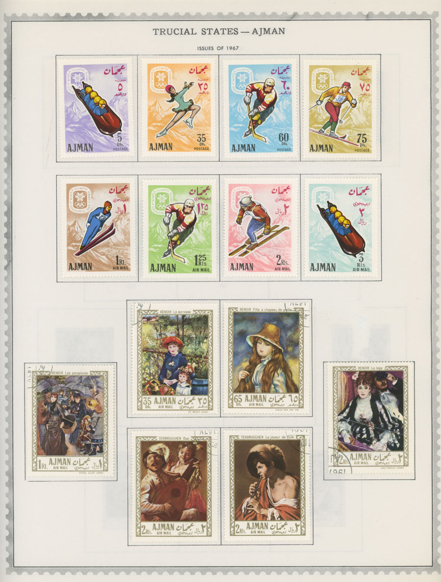 LARGE MIDDLE EAST COLLECTION ON ILLUSTRATED PAGES: 1865-2000, about 13,000 mint and used stamps and 180 souvenir sheets, representing issues of Aden and South Arabia (C.v. $550), Afghanistan (C.v. $900), Iran (C.v. $5,700), Iraq (C.v. $1,000), Palestine and Israel (C.v. $1,400), Jordan (C.v. $1,350), Pakistan (C.v. $1,000), Qatar (C.v. $3,000), Turkey (C.v. $4,000), United Arab Emirates with other Trucial States and Yemen (C.v. $1,000), many valuable items, occasional flaws possible, full/large part of OG or used (many CTO), F/VF, great lot for breaking up for individual country collections, total C.v. about $20,000, Est. $4,000-$5,000