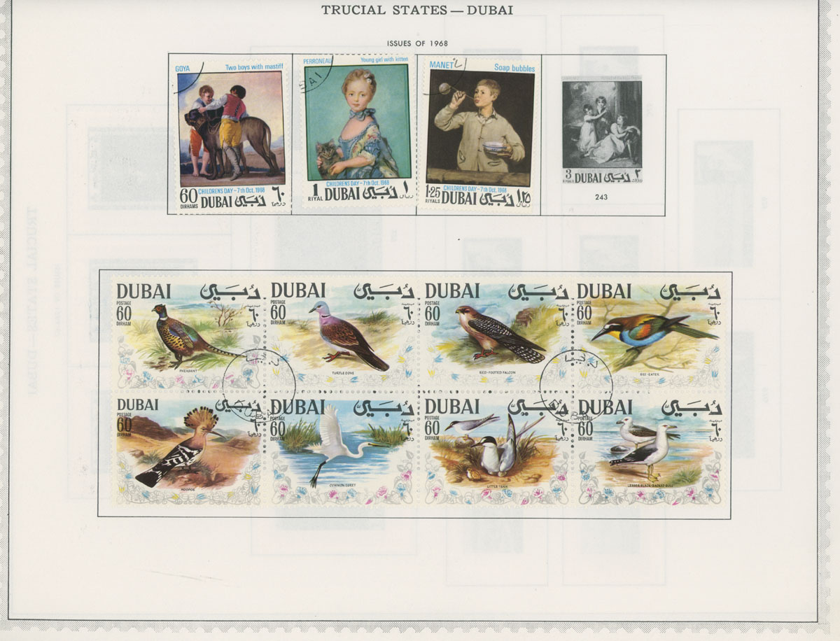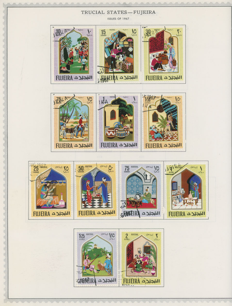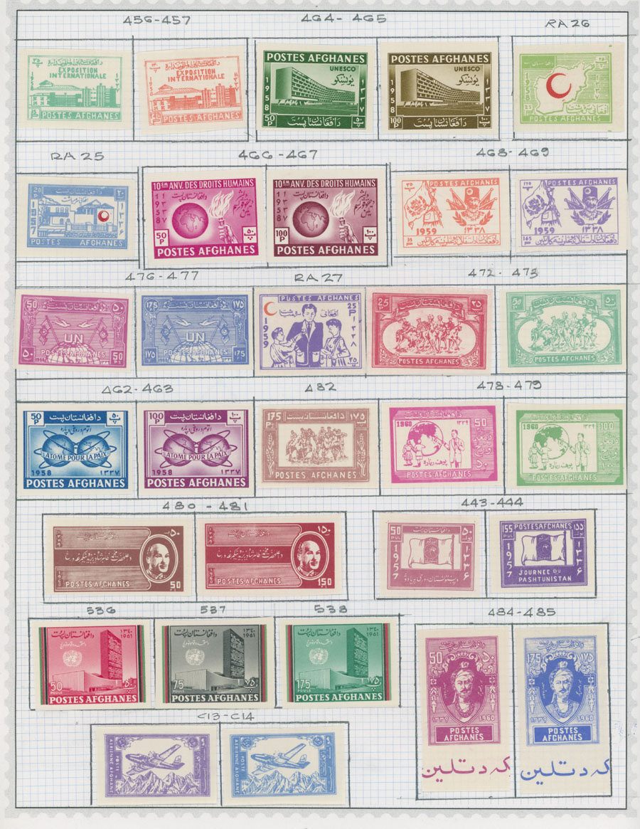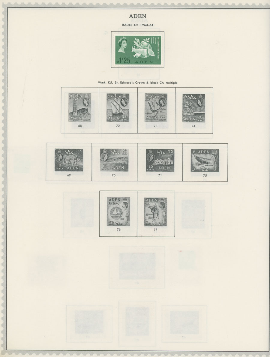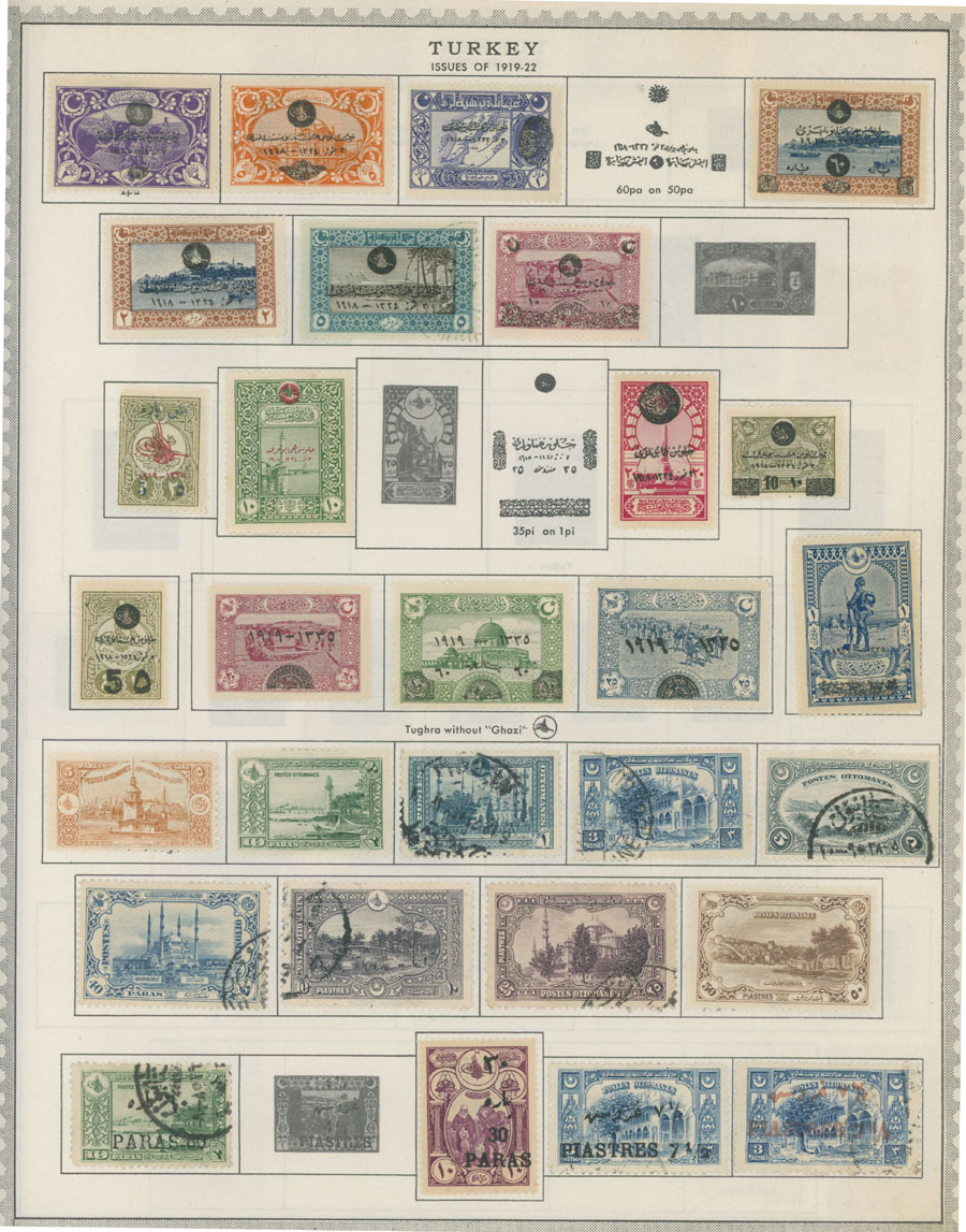 LARGE MIDDLE EAST COLLECTION ON ILLUSTRATED PAGES: 1865-2000, about 13,000 mint and used stamps and 180 souvenir sheets, representing issues of Aden and South Arabia (C.v. $550), Afghanistan (C.v. $900), Iran (C.v. $5,700), Iraq (C.v. $1,000), Palestine and Israel (C.v. $1,400), Jordan (C.v. $1,350), Pakistan (C.v. $1,000), Qatar (C.v. $3,000), Turkey (C.v. $4,000), United Arab Emirates with other Trucial States and Yemen (C.v. $1,000), many valuable items, occasional flaws possible, full/large part of OG or used (many CTO), F/VF, great lot for breaking up for individual country collections, total C.v. about $20,000, Est. $4,000-$5,000