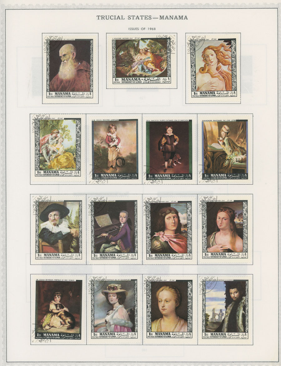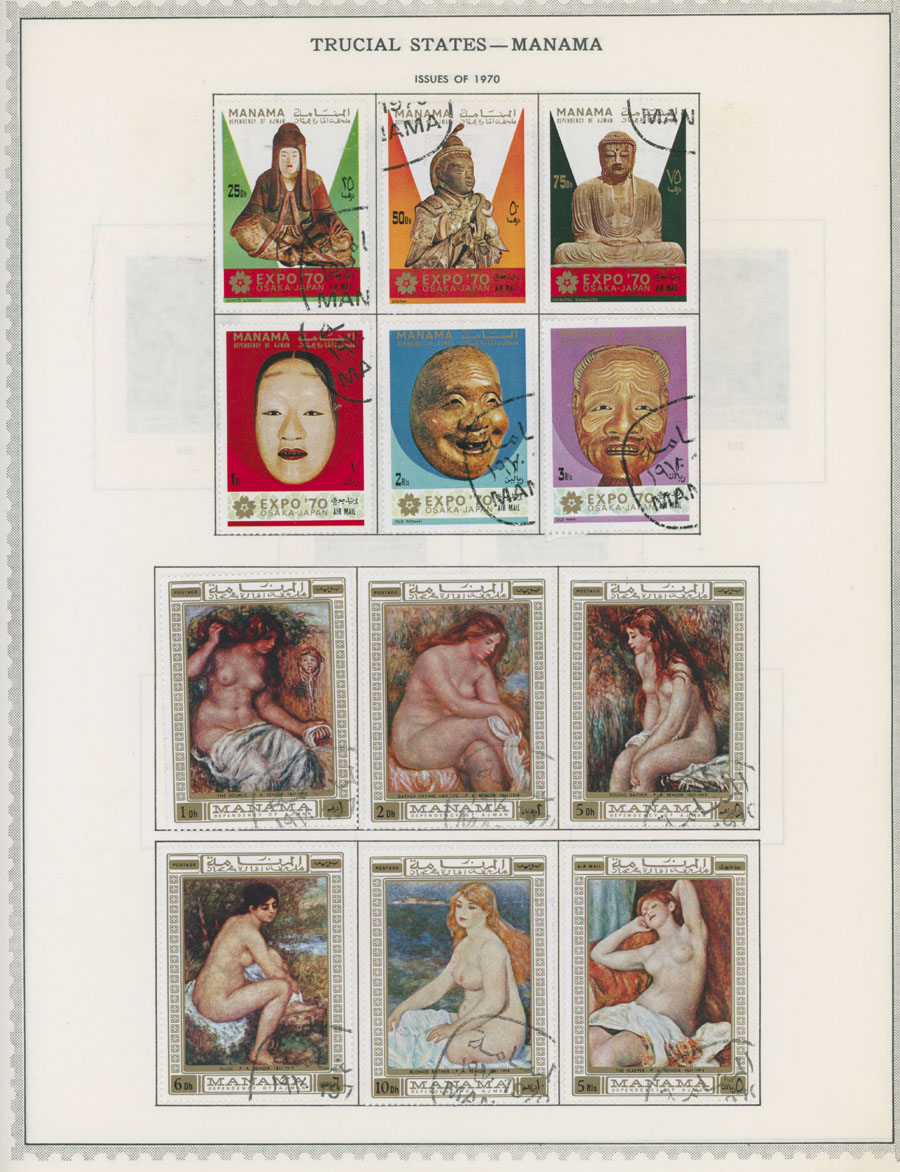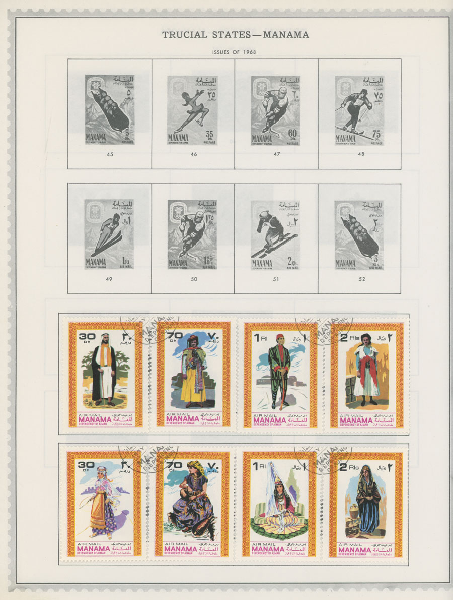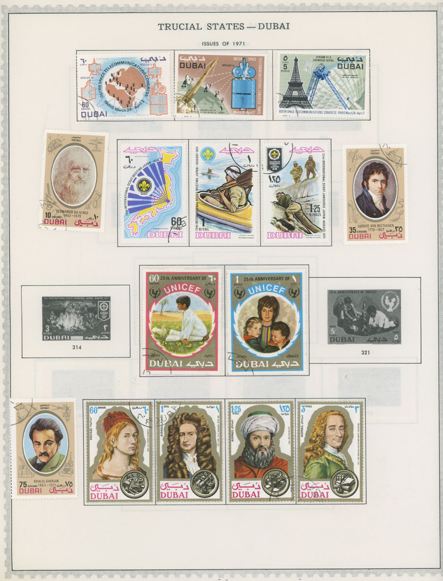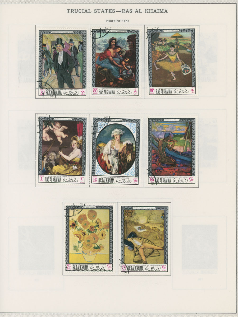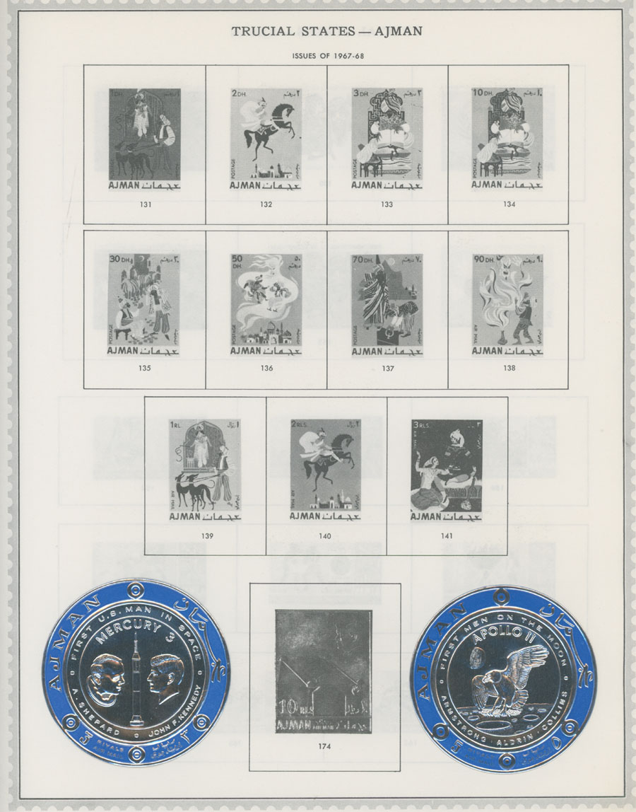LARGE MIDDLE EAST COLLECTION ON ILLUSTRATED PAGES: 1865-2000, about 13,000 mint and used stamps and 180 souvenir sheets, representing issues of Aden and South Arabia (C.v. $550), Afghanistan (C.v. $900), Iran (C.v. $5,700), Iraq (C.v. $1,000), Palestine and Israel (C.v. $1,400), Jordan (C.v. $1,350), Pakistan (C.v. $1,000), Qatar (C.v. $3,000), Turkey (C.v. $4,000), United Arab Emirates with other Trucial States and Yemen (C.v. $1,000), many valuable items, occasional flaws possible, full/large part of OG or used (many CTO), F/VF, great lot for breaking up for individual country collections, total C.v. about $20,000, Est. $4,000-$5,000