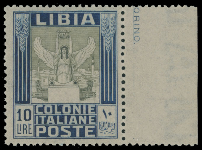 1921, Victory, 10L dark blue and olive green, right sheet margin single with comb perforation 14×13¼, nice centering and post office fresh, full OG, NH, VF and scarce in premium quality, C.v. $1,600, Sassone #32a, C.v. €2,250, Est. $400-$450 , Scott #31d