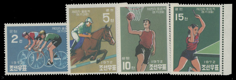 1972, Summer Olympic Games, 2ch, 5ch, 10ch and 15ch, unissued complete set of four, each one has right sheet margin, full OG, NH, VF, C.v. $3,000, Est. $600-$750 , Scott #1045 fn