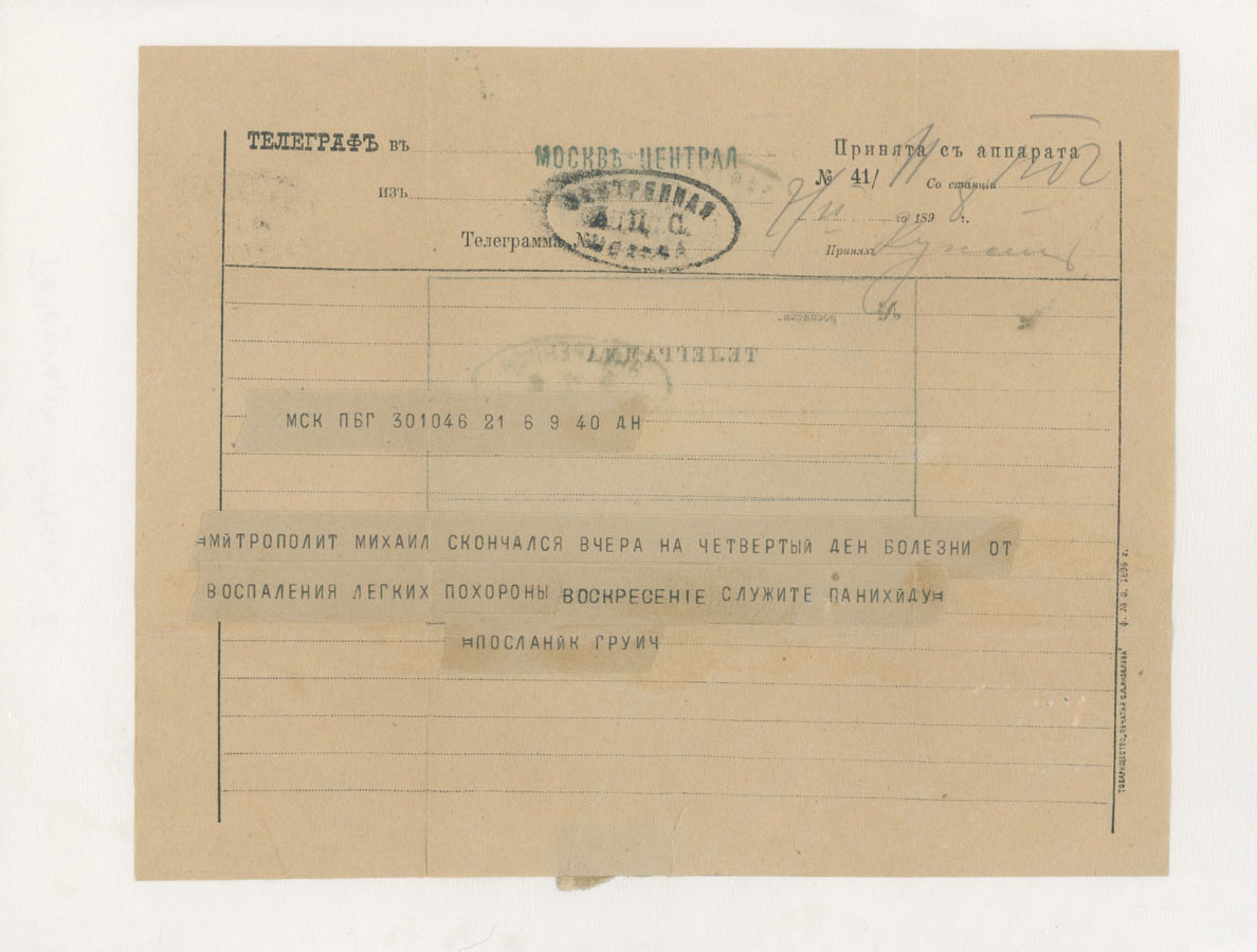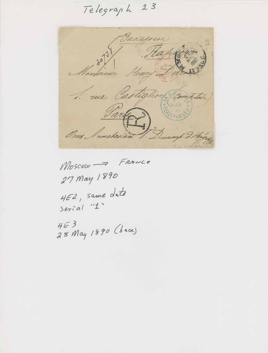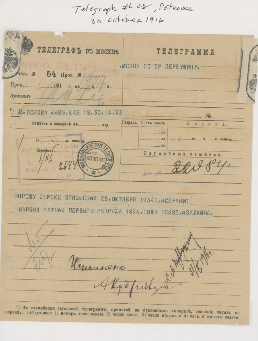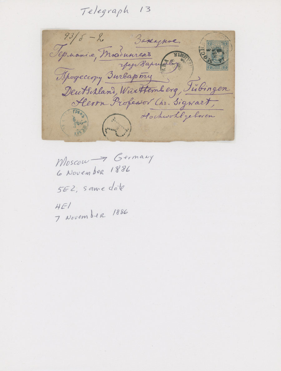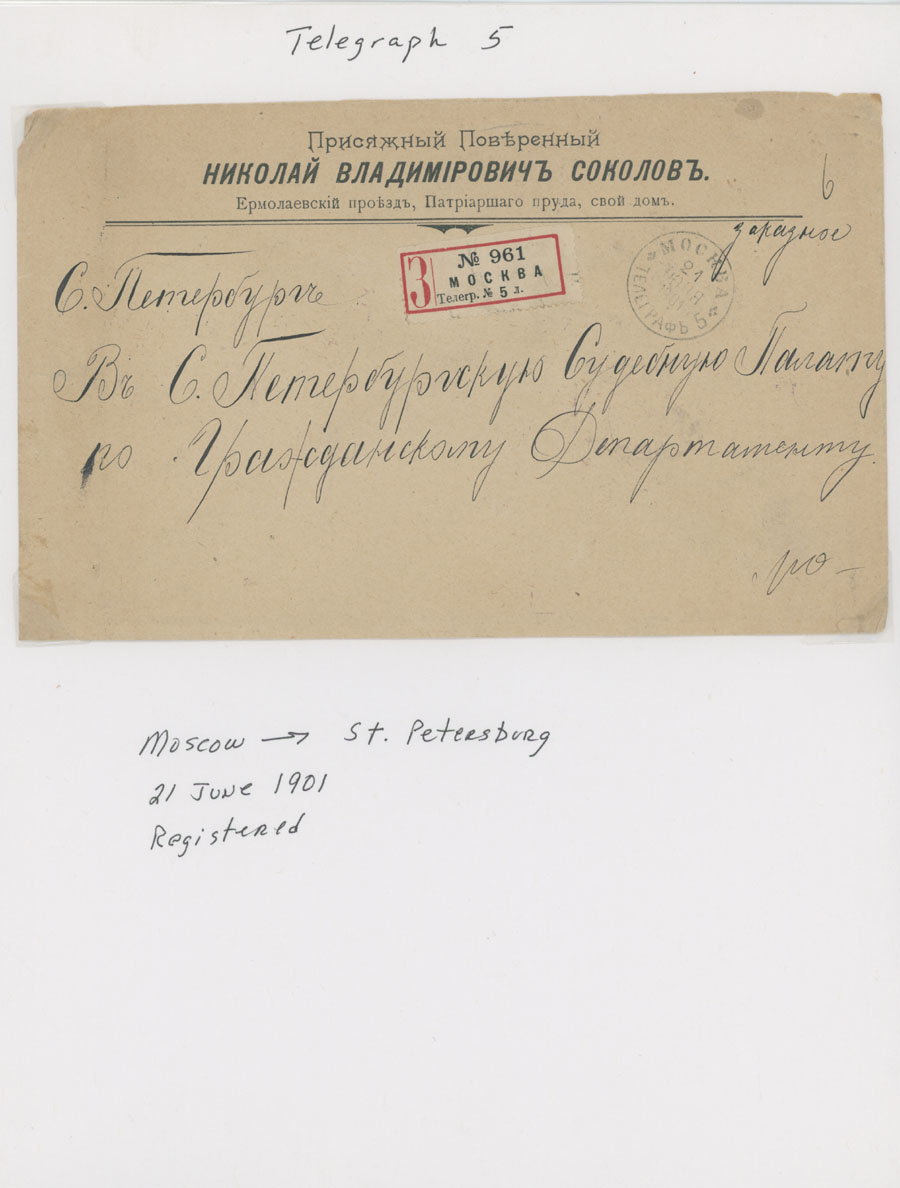 COLLECTION OF MOSCOW CITY TELEGRAPH OFFICES: 1886-1917, 54 postal history items representing 24 different telegraph offices from No.2 to No.64, including 9 stationery envelopes, letter cards and wrappers, 8 receipts and 10 telegrams, minor conveyance flaws possible, still nice looking unit, F/VF and rarely offered material, Est. $1,000-$1,200