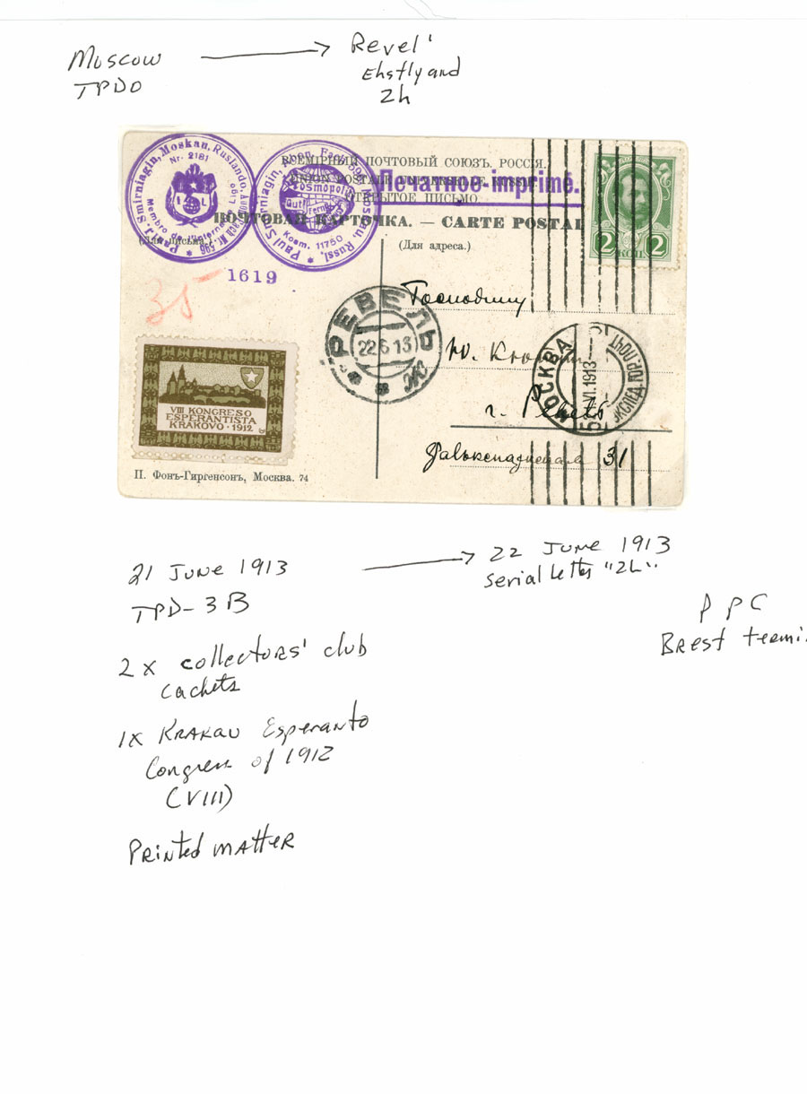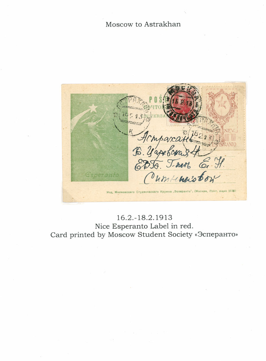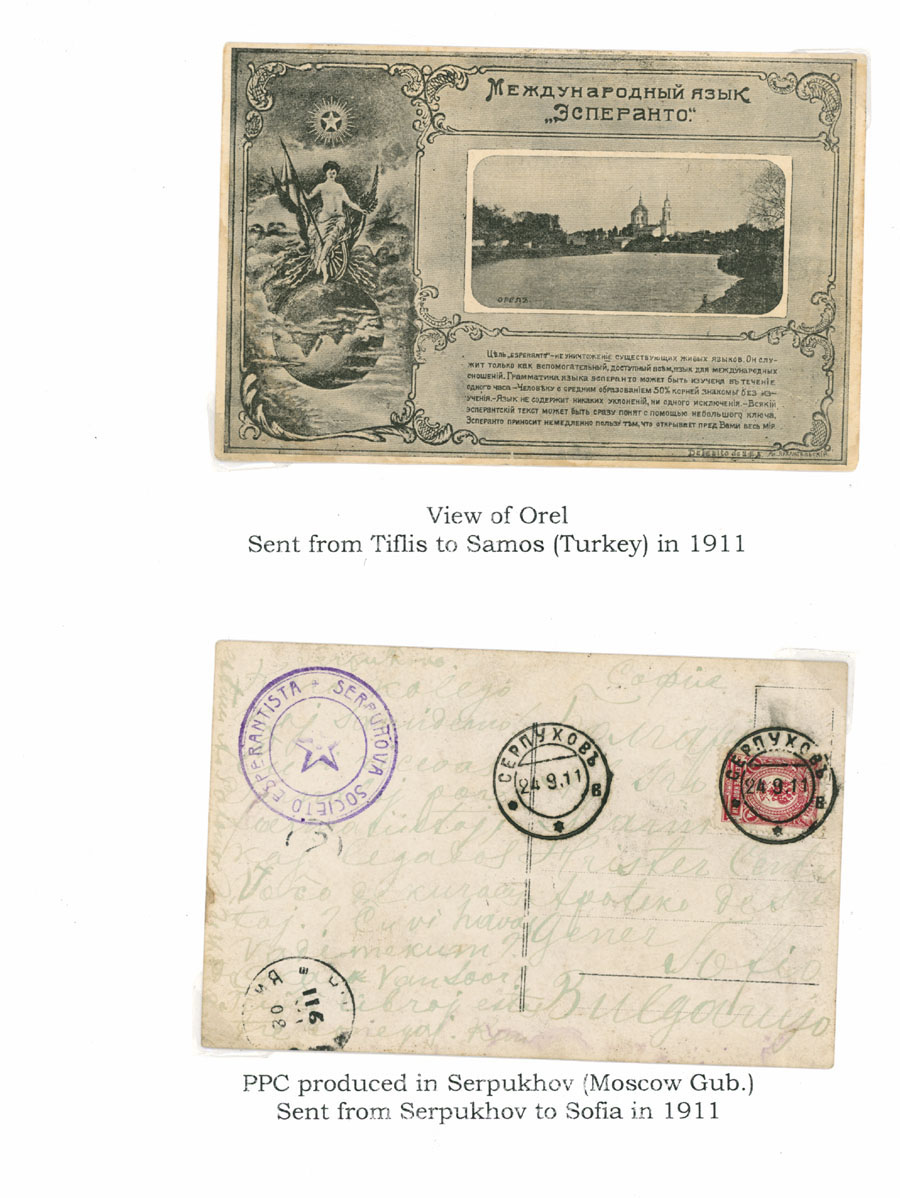 COLLECTION OF ESPERANTO MAILINGS: 1908-14, ten postcards or covers, arranged on well-described pages, a half is addressed to foreign destinations, including USA (2), Uruguay, Switzerland and Turkey, all bearing labels or Esperanto handstamps, nice and fresh condition, all appropriate markings, mostly VF, Est.$300-$400