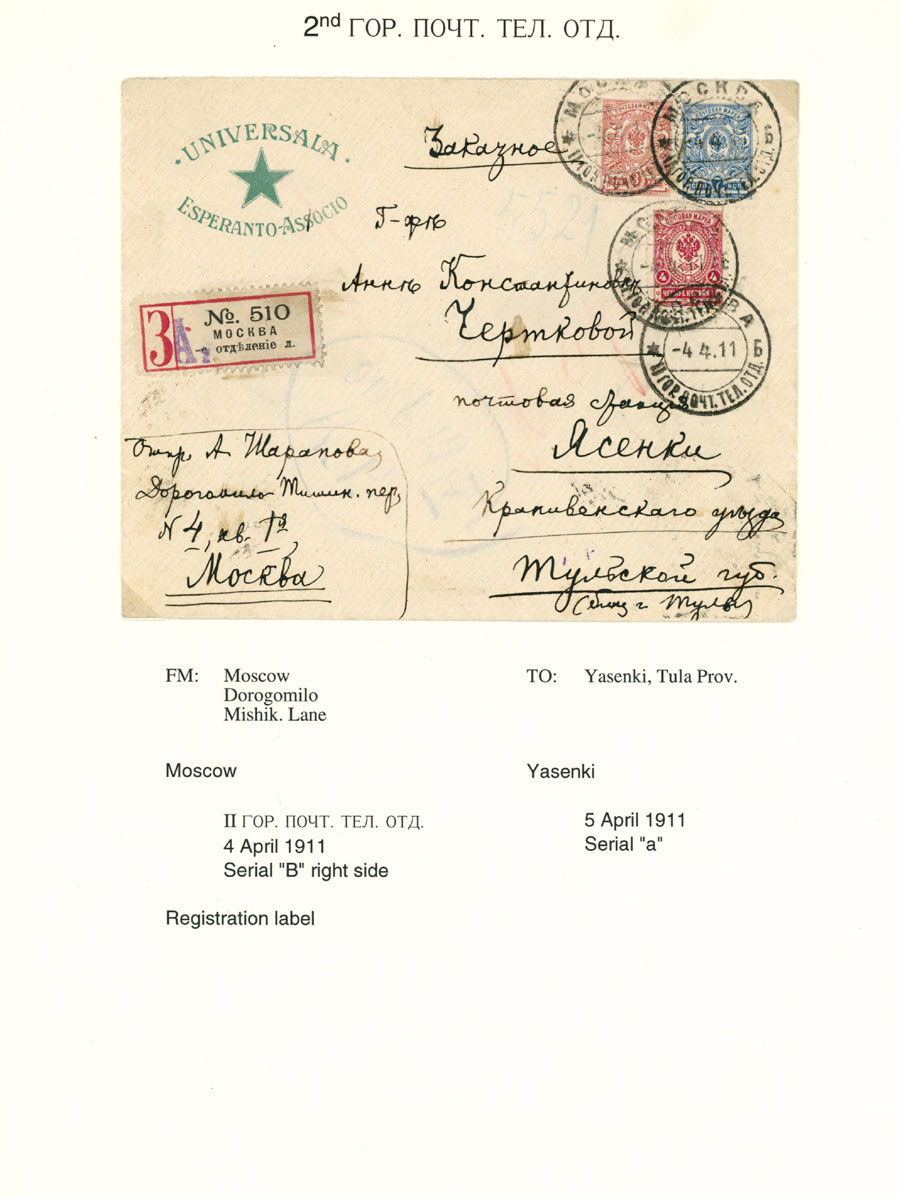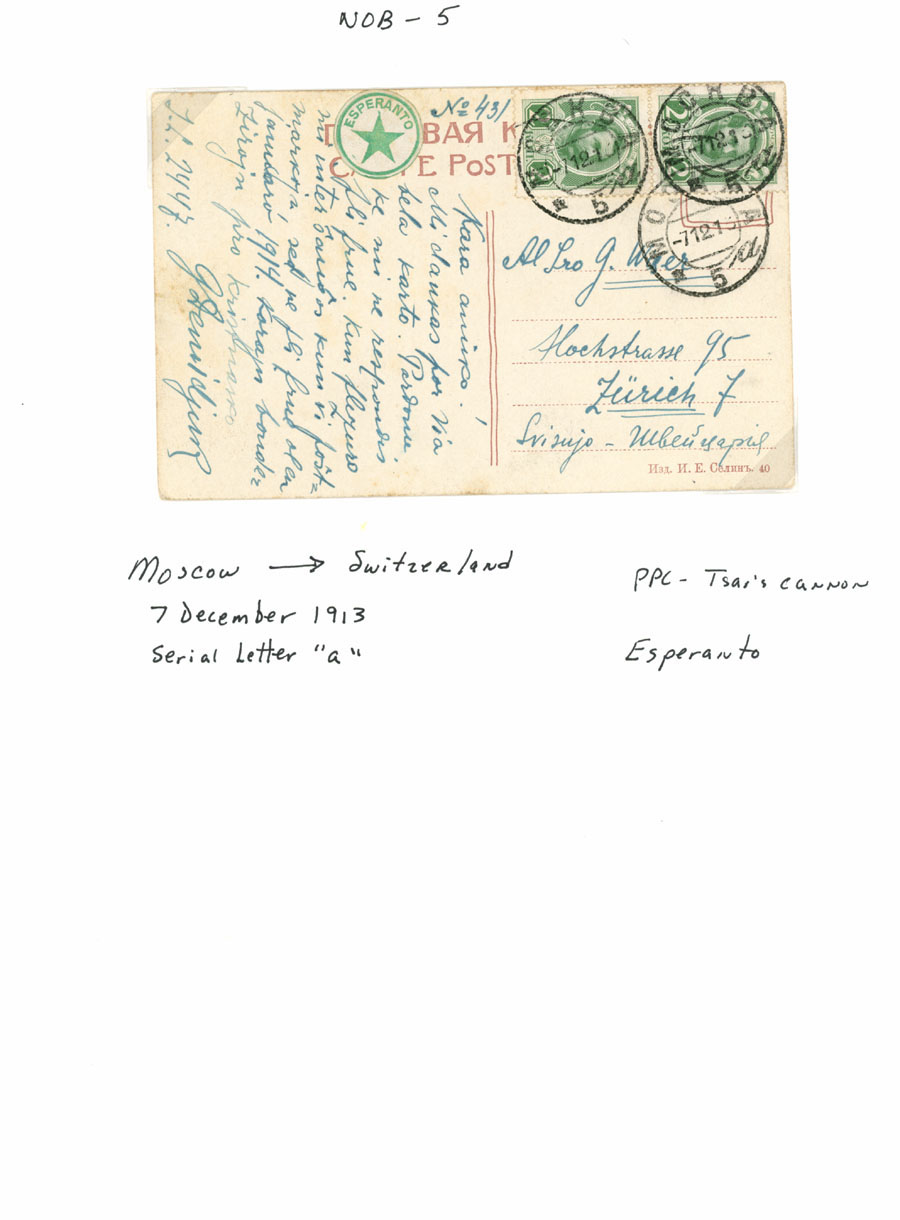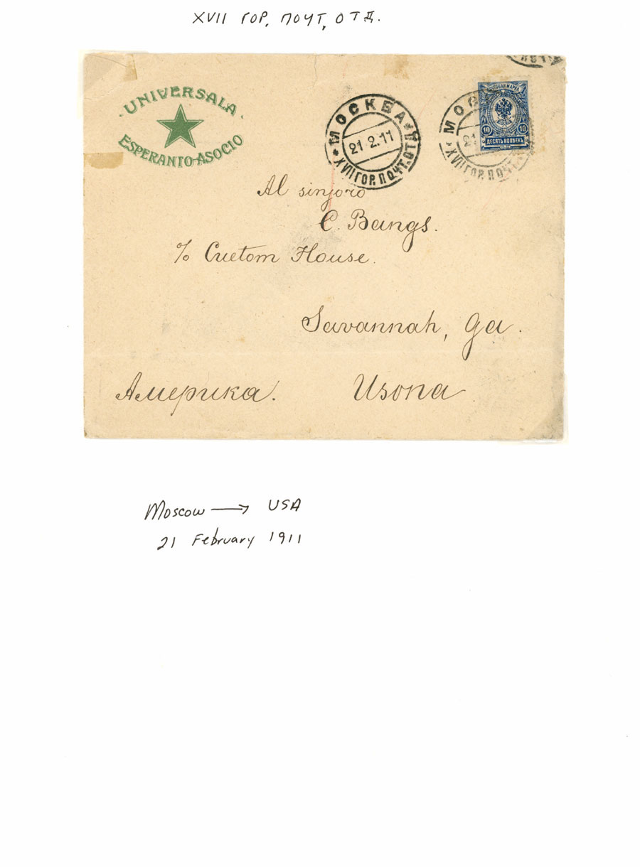 COLLECTION OF ESPERANTO MAILINGS: 1908-14, ten postcards or covers, arranged on well-described pages, a half is addressed to foreign destinations, including USA (2), Uruguay, Switzerland and Turkey, all bearing labels or Esperanto handstamps, nice and fresh condition, all appropriate markings, mostly VF, Est.$300-$400